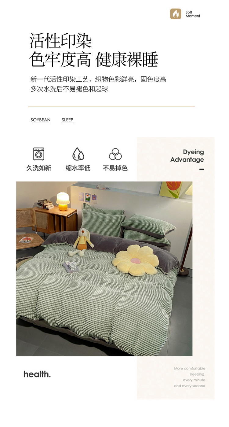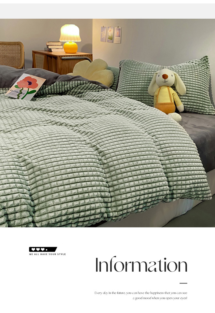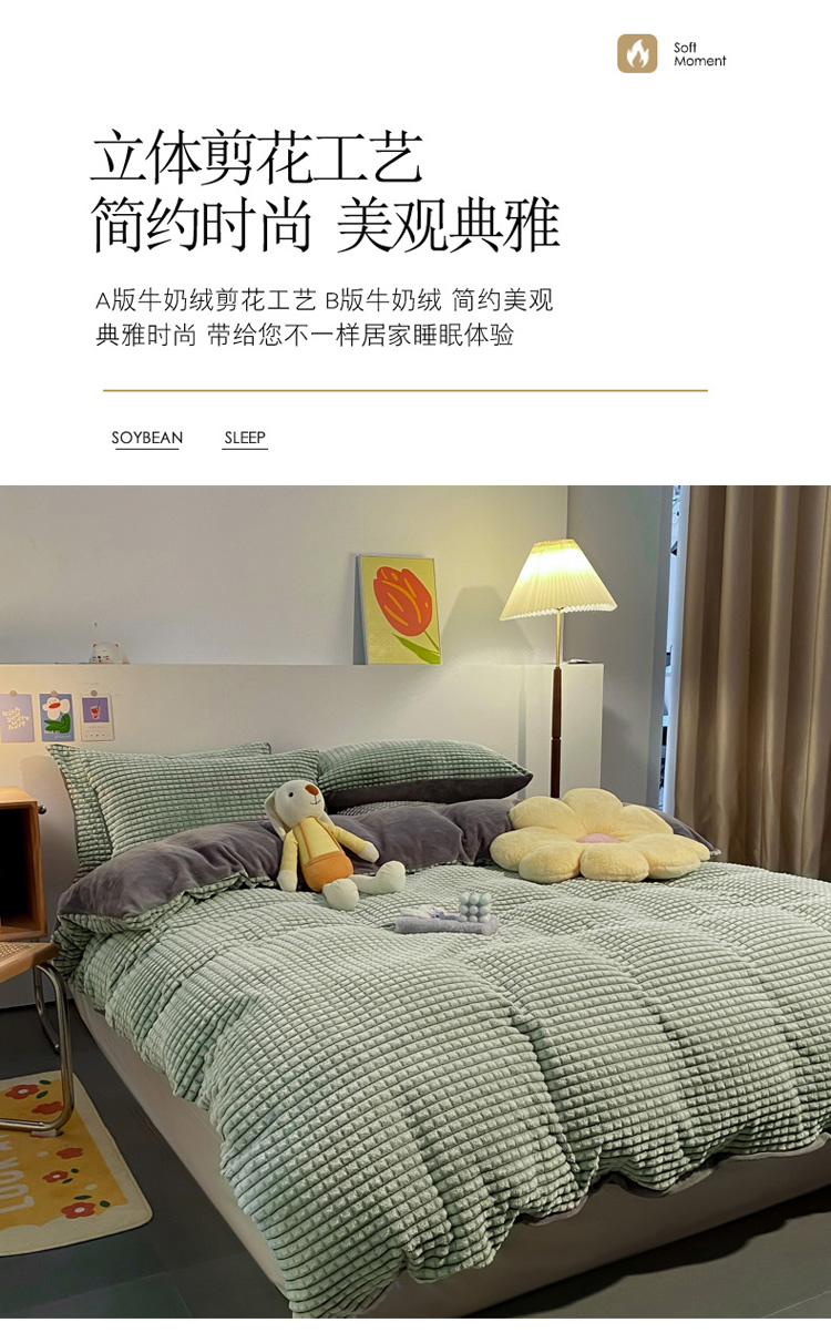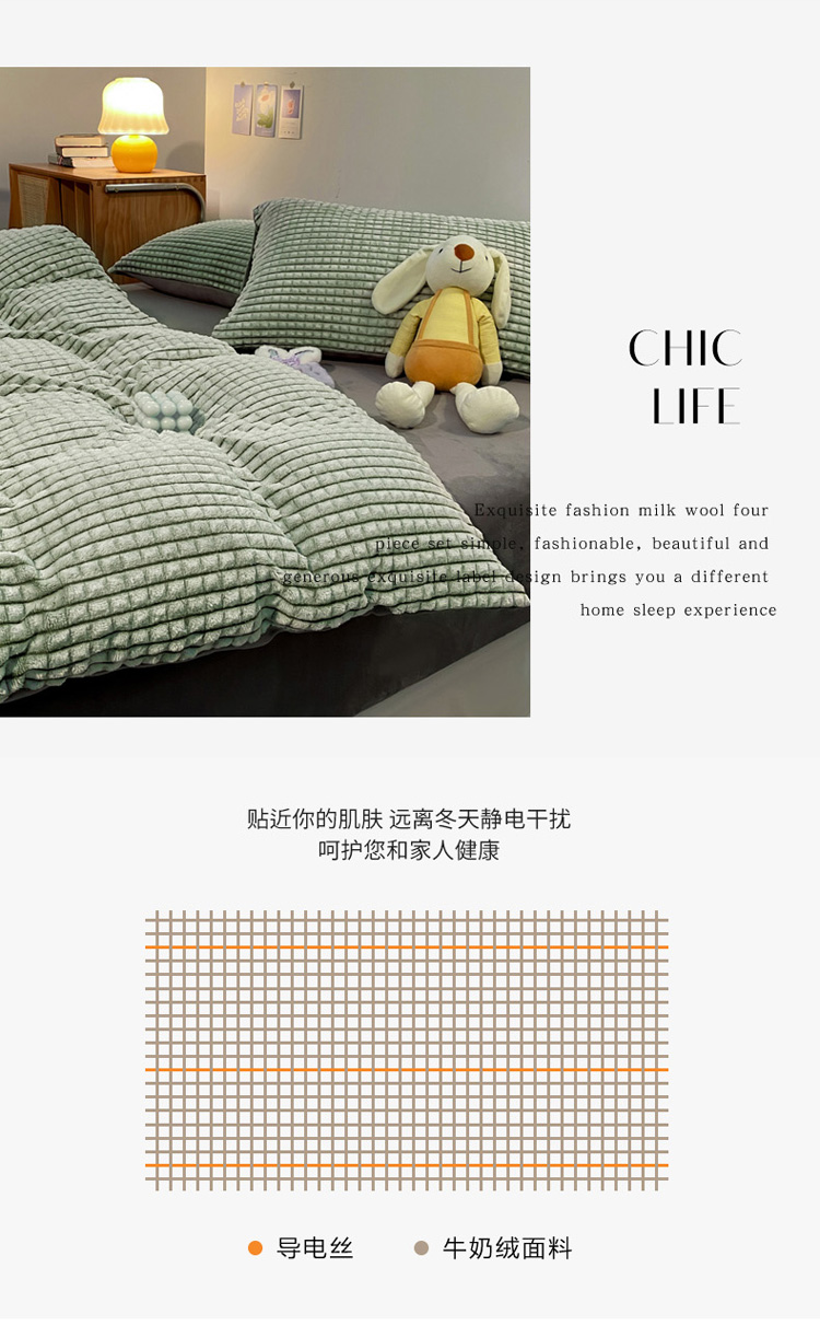 当前位置: 91家纺网 > 商品网购 > 床品套件 > 四件套 > 牛奶绒四件套 > 慕澄 2024新款牛奶绒剪花简约款四件套 简约-绿