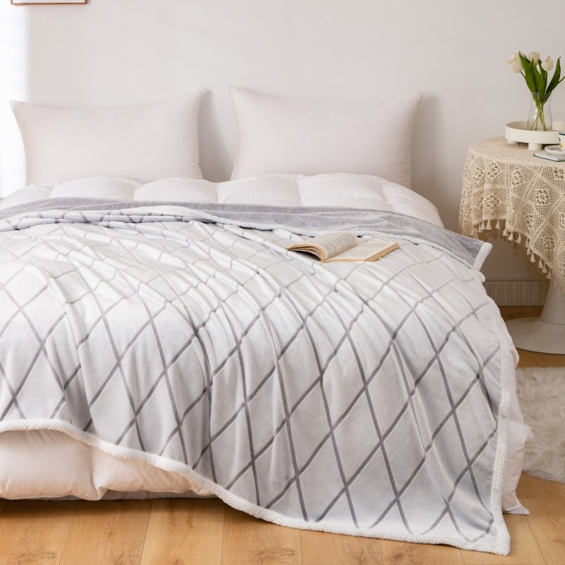 当前位置: 91家纺网 > 商品网购 > 毛毯休闲毯绒毯 > 毛毯 > 来菲毛毯 2025新款背印剪花牛奶绒毛毯加厚毯子不掉毛高端毯子菱形格