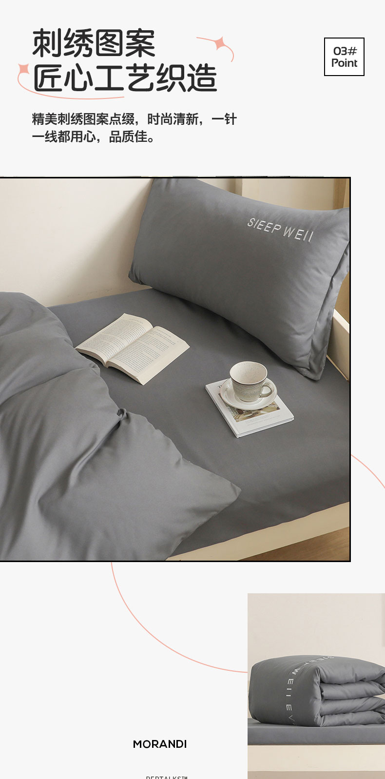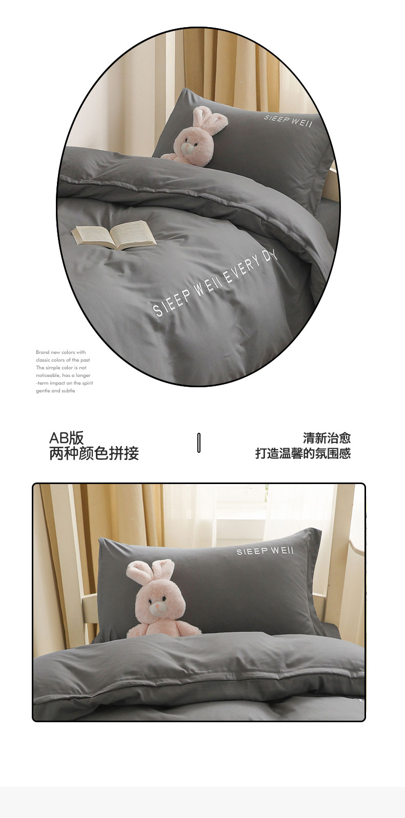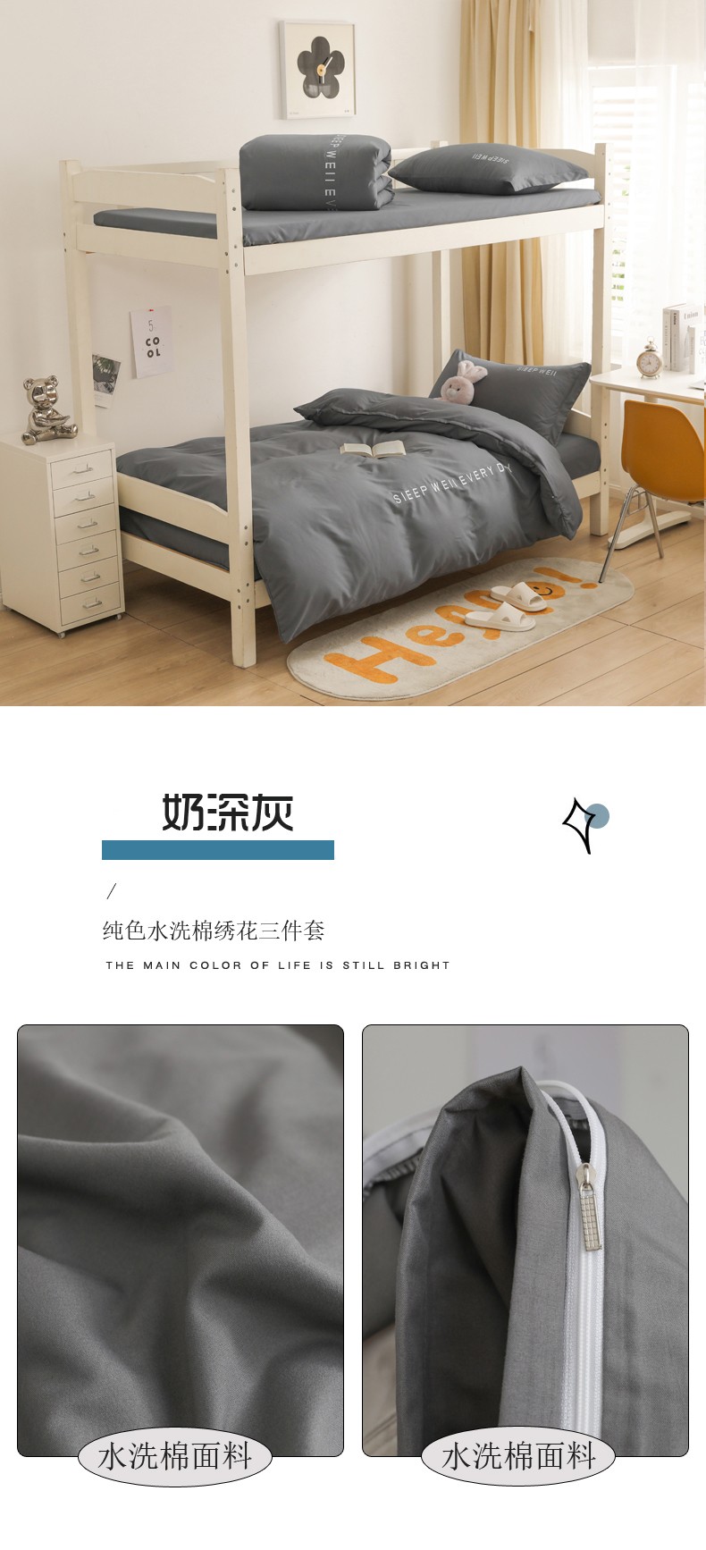 商品名称:啊雅家居纯色水洗磨毛亲肤绣花床单款床笠款学生三套件 奶深灰