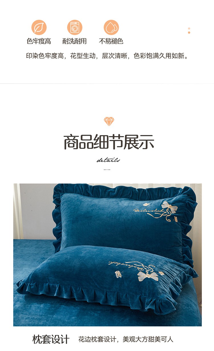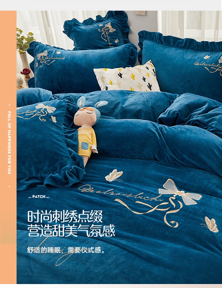 商品名称:恒爱 2022秋冬新款A类宝宝绒蝴蝶结刺绣床单款四件套 宝蓝