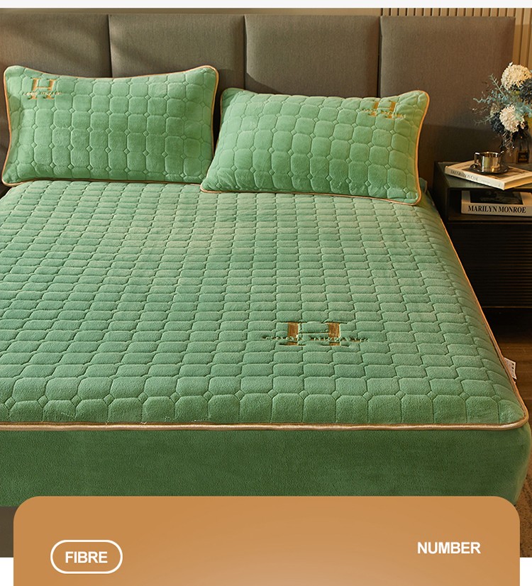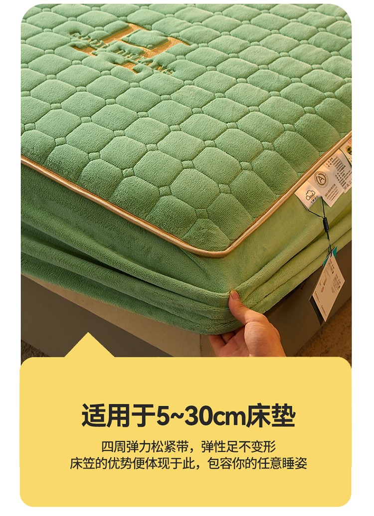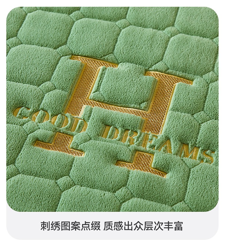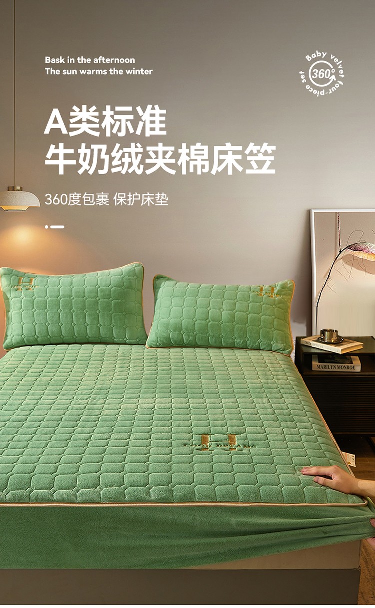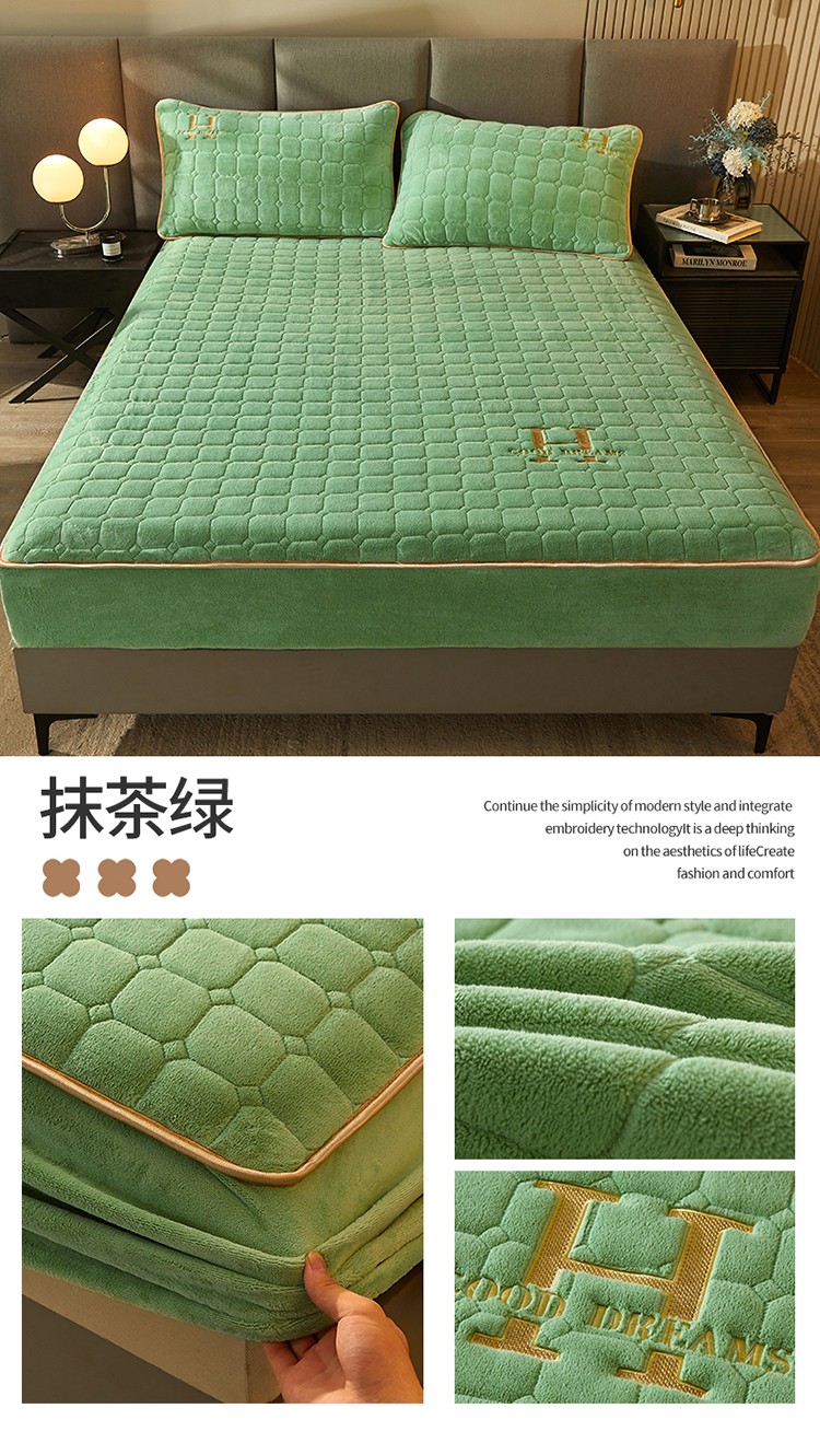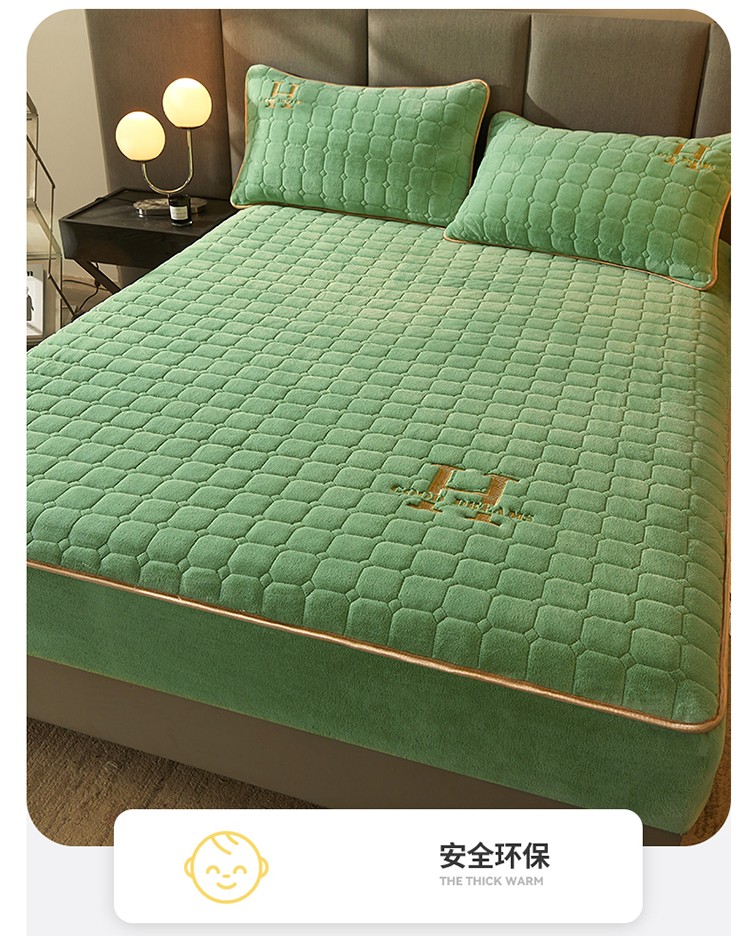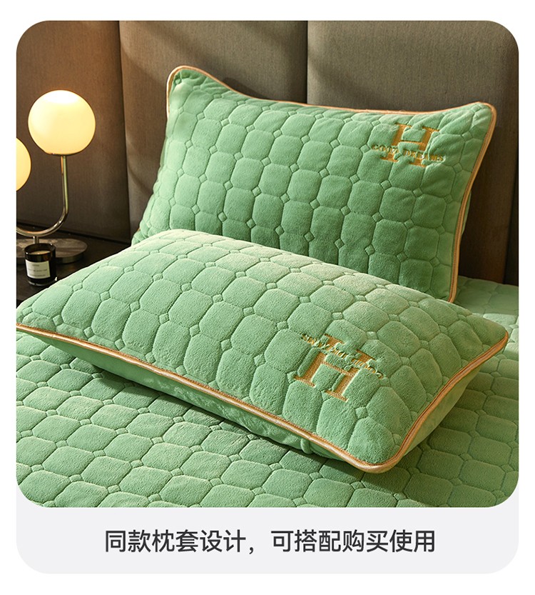 商品名称:恒爱2022秋冬新款A类牛奶绒刺绣夹棉单床笠--H系列抹茶绿