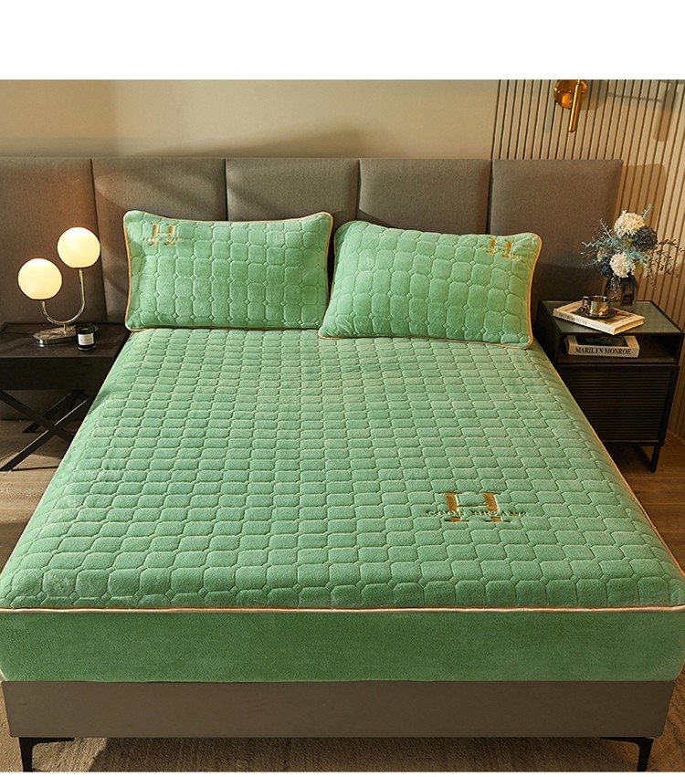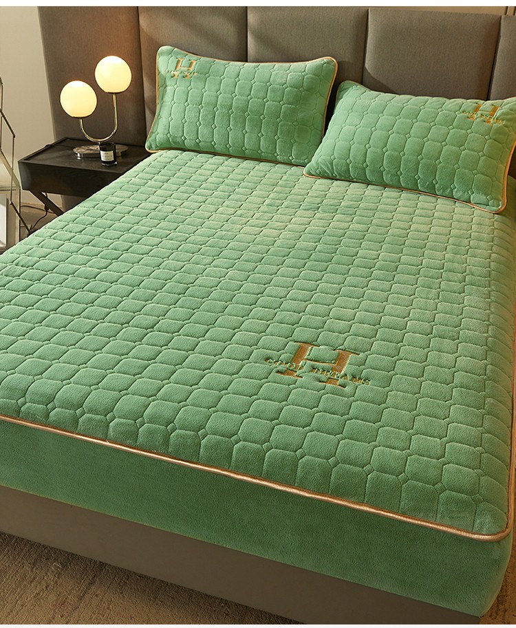 恒爱2022秋冬新款A类牛奶绒刺绣夹棉单床笠--H系列抹茶绿