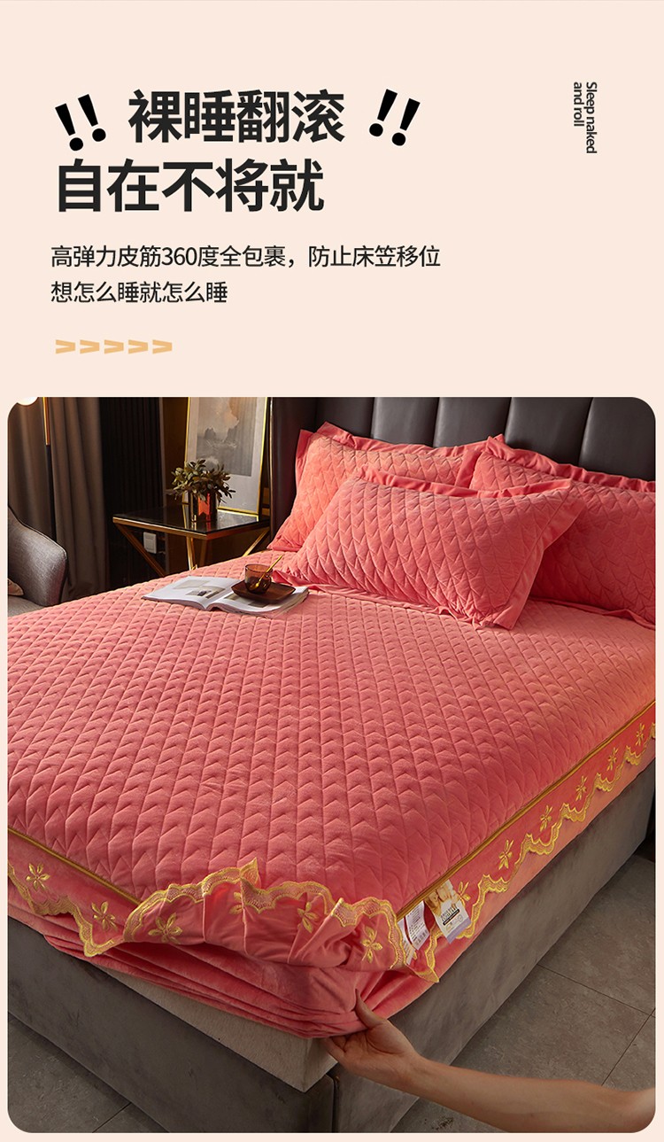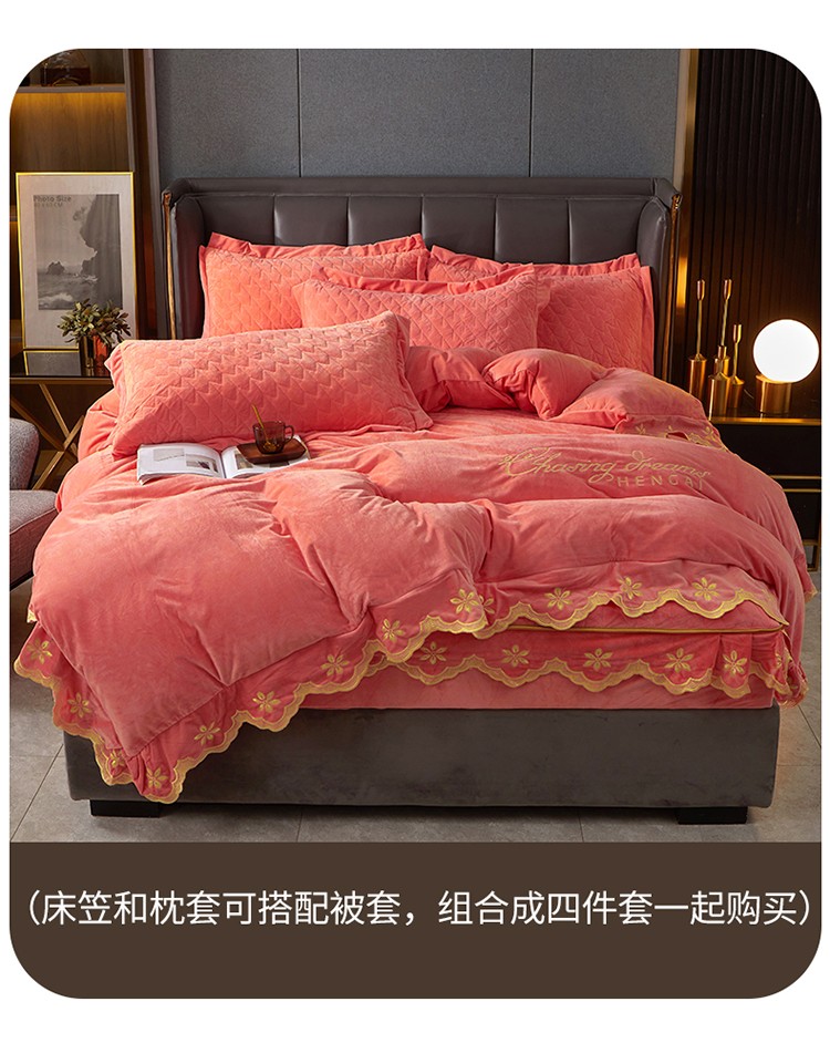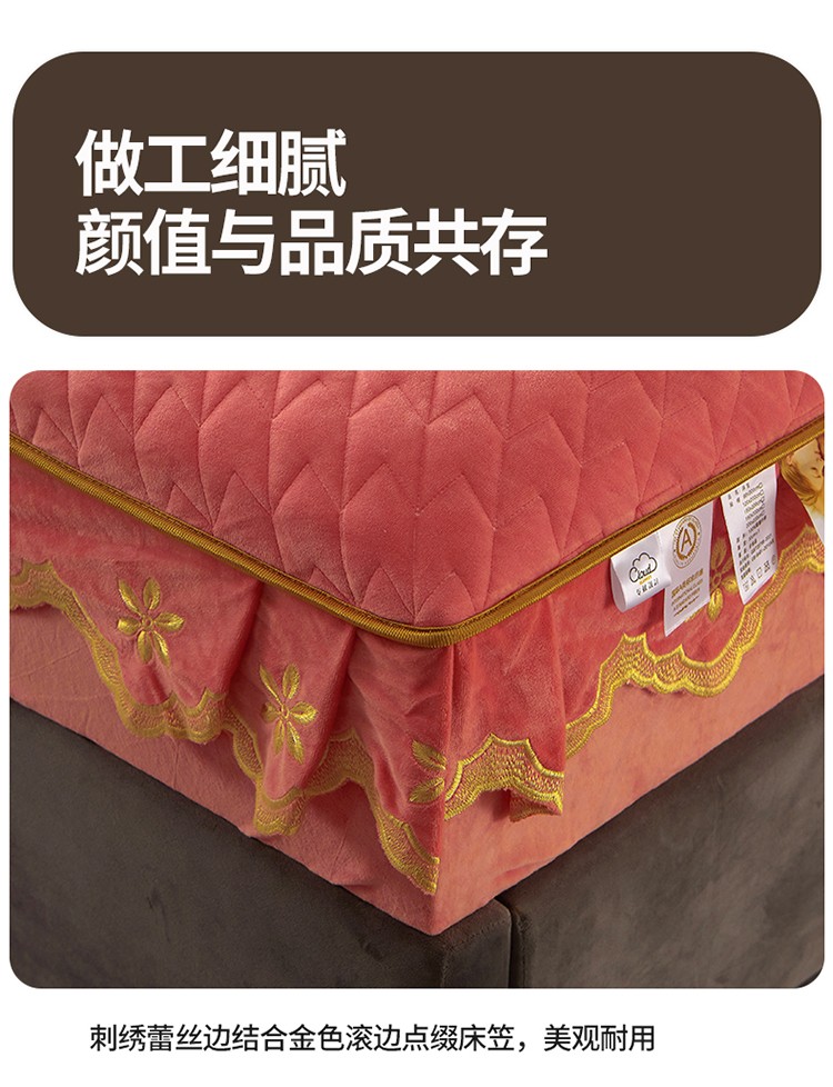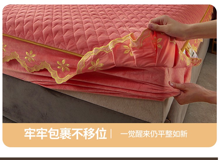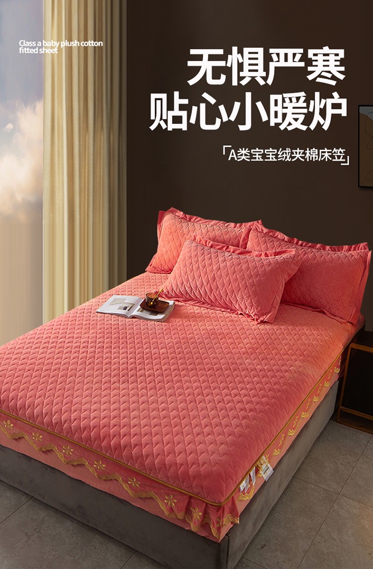 • 91家纺网 家纺一手货源 找家纺 恒爱 2022秋冬新款A类宝宝绒轻奢刺绣床笠 轻奢床笠梦想粉
