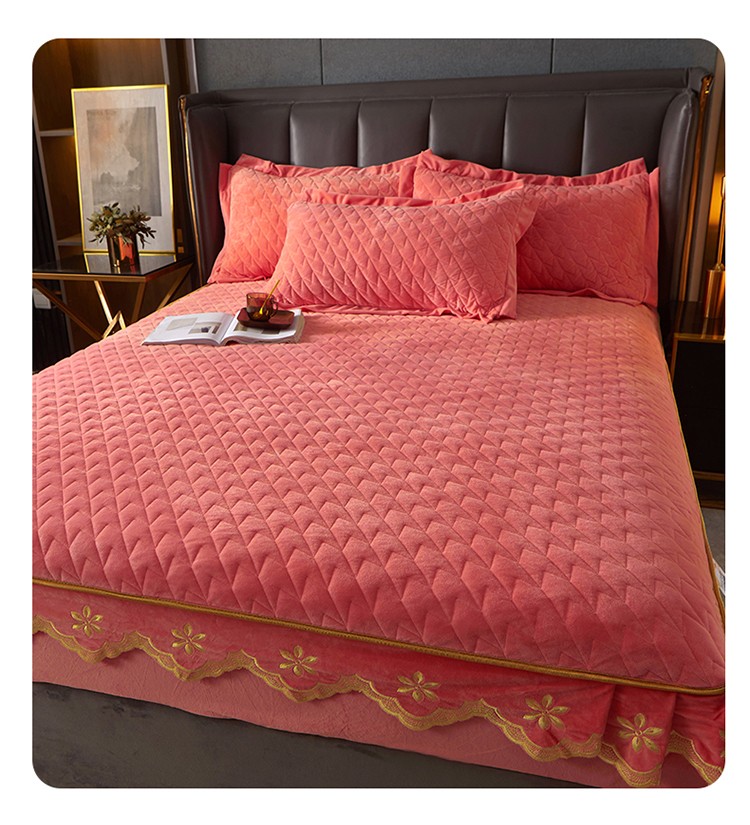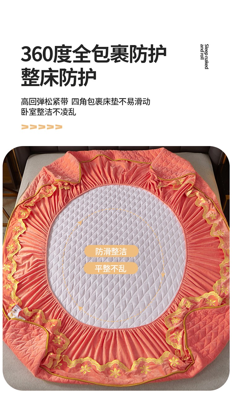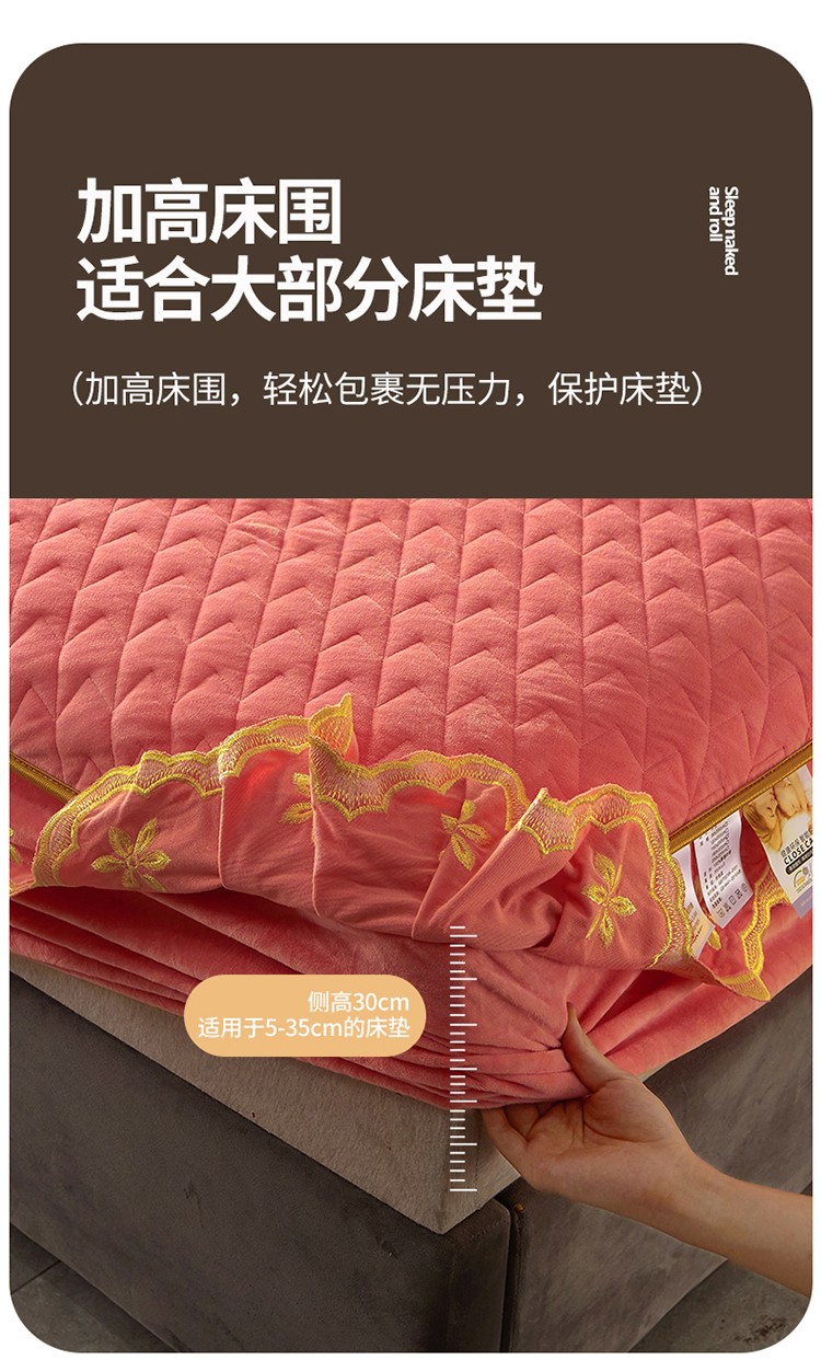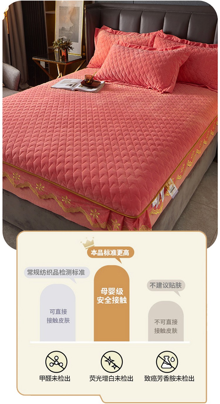 • 91家纺网 家纺一手货源 找家纺 恒爱 2022秋冬新款A类宝宝绒轻奢刺绣床笠 轻奢床笠梦想粉