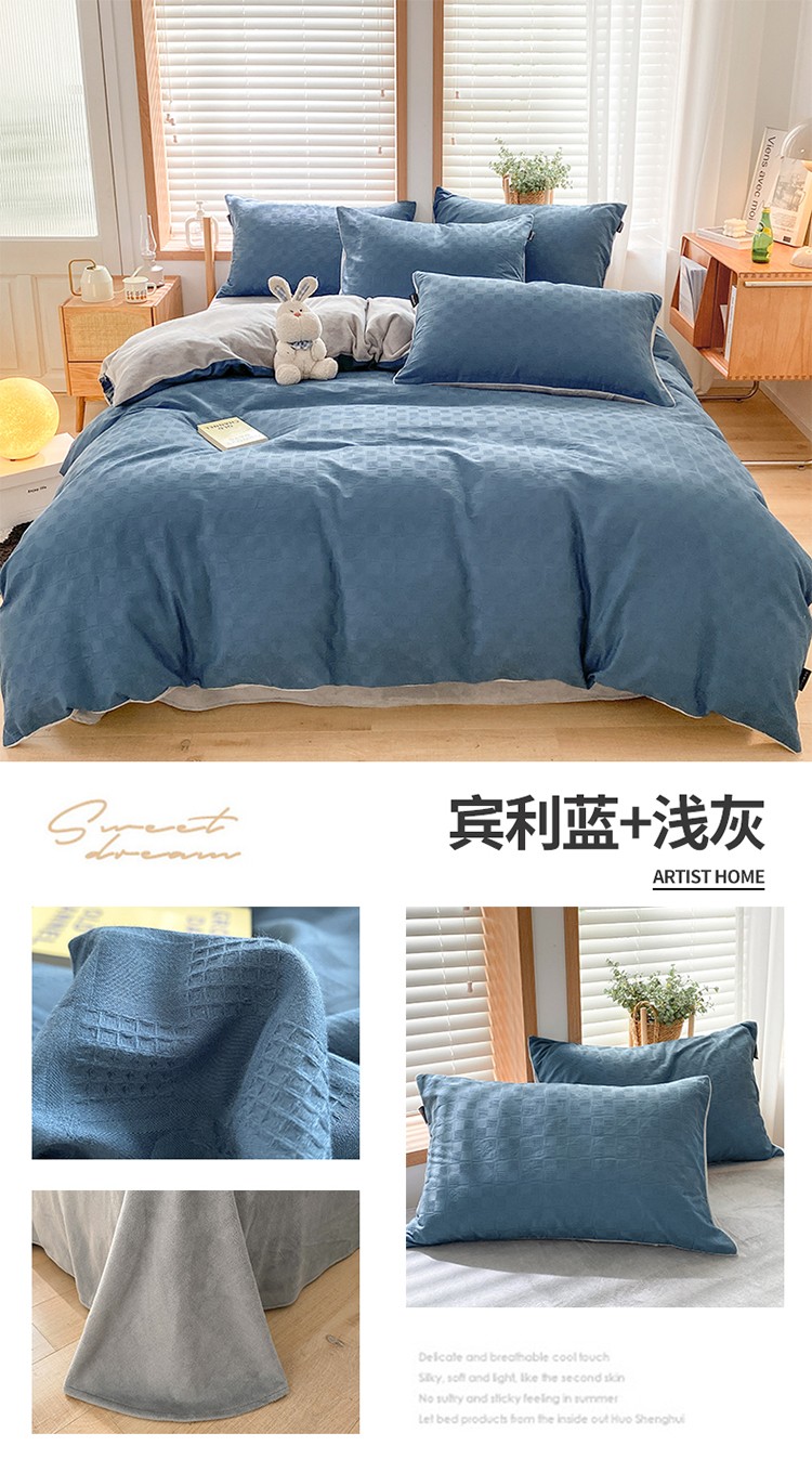 (总)蓝米卡夫 2024冬季A类60s华夫格棉绒四件套