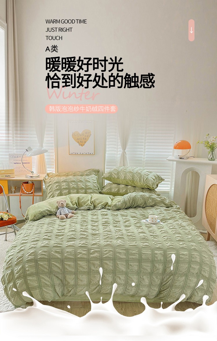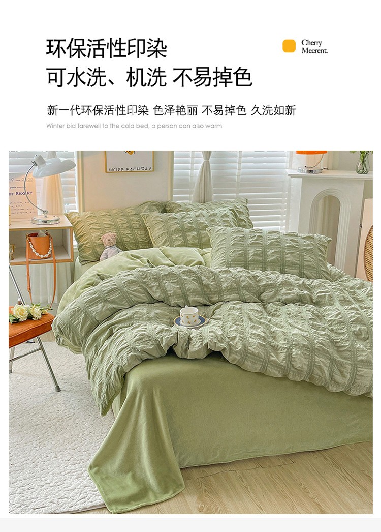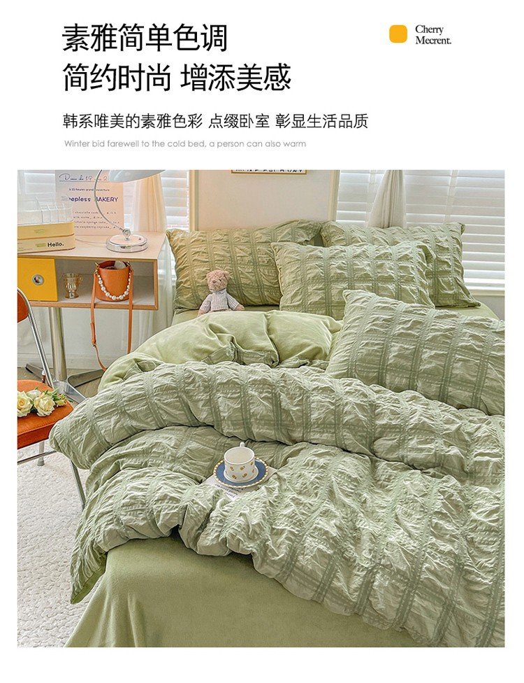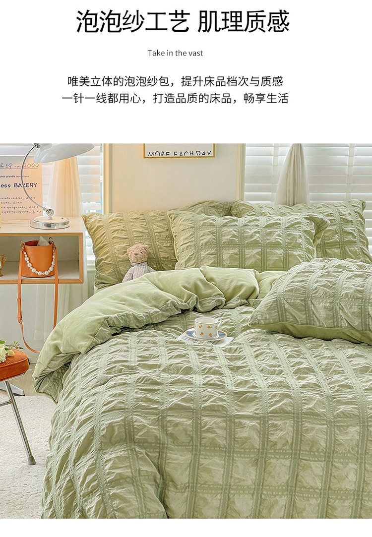 商品名称:寐居 2022新款泡泡纱牛奶绒四件套 泡泡-翡翠绿
