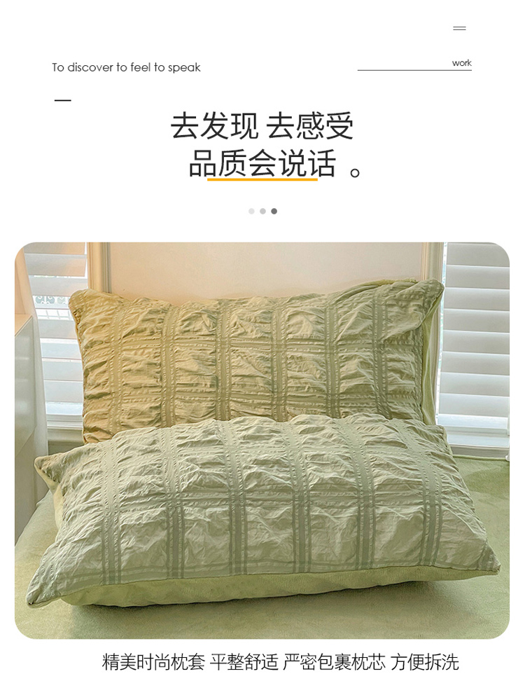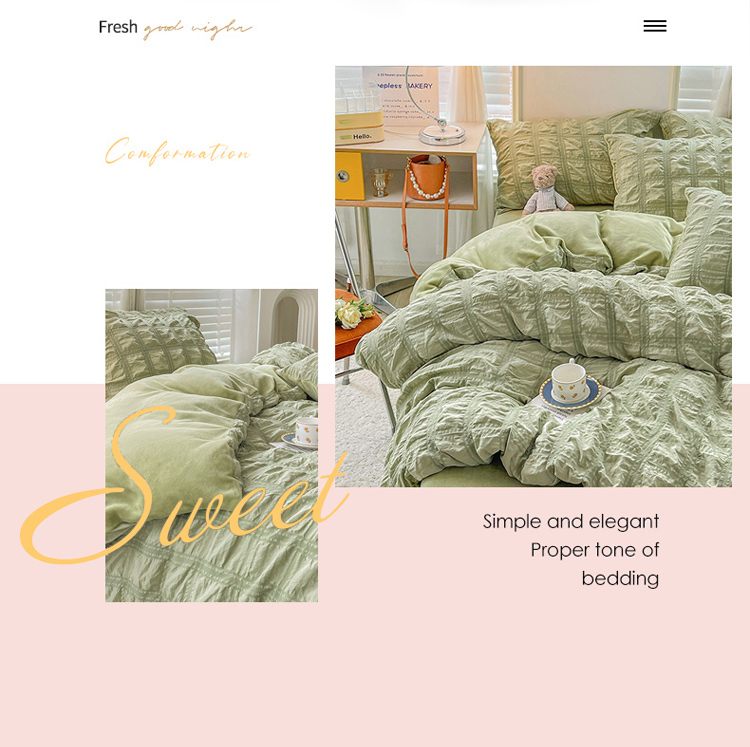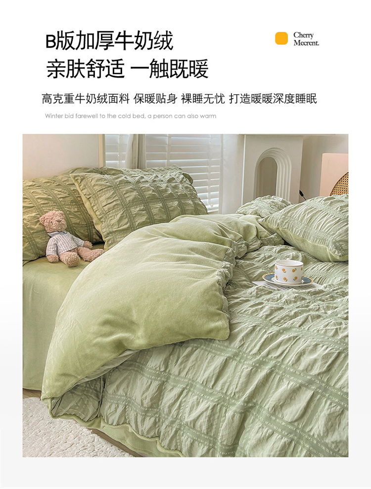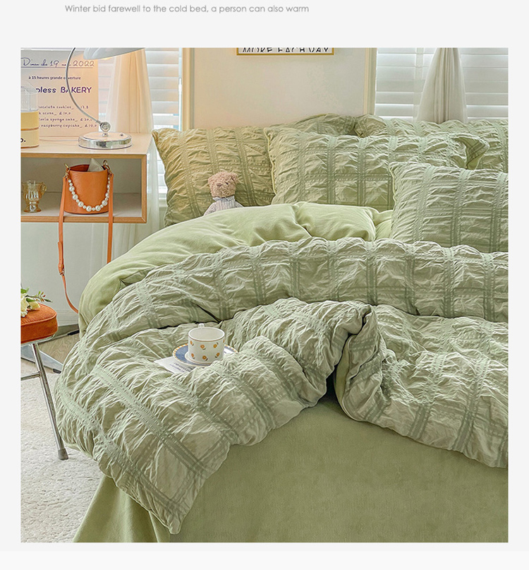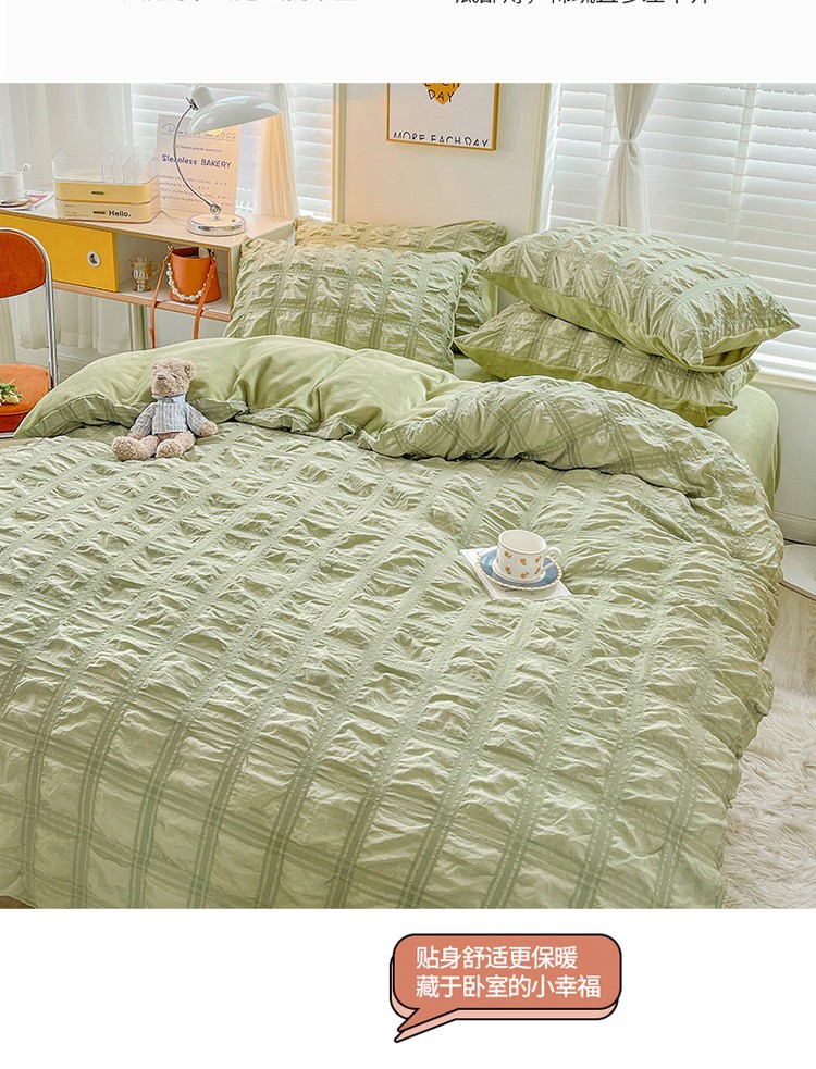 商品名称:寐居 2022新款泡泡纱牛奶绒四件套 泡泡-翡翠绿