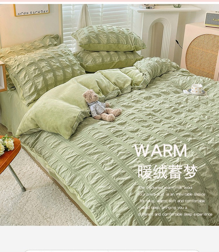 寐居 2022新款泡泡纱牛奶绒四件套 泡泡-翡翠绿