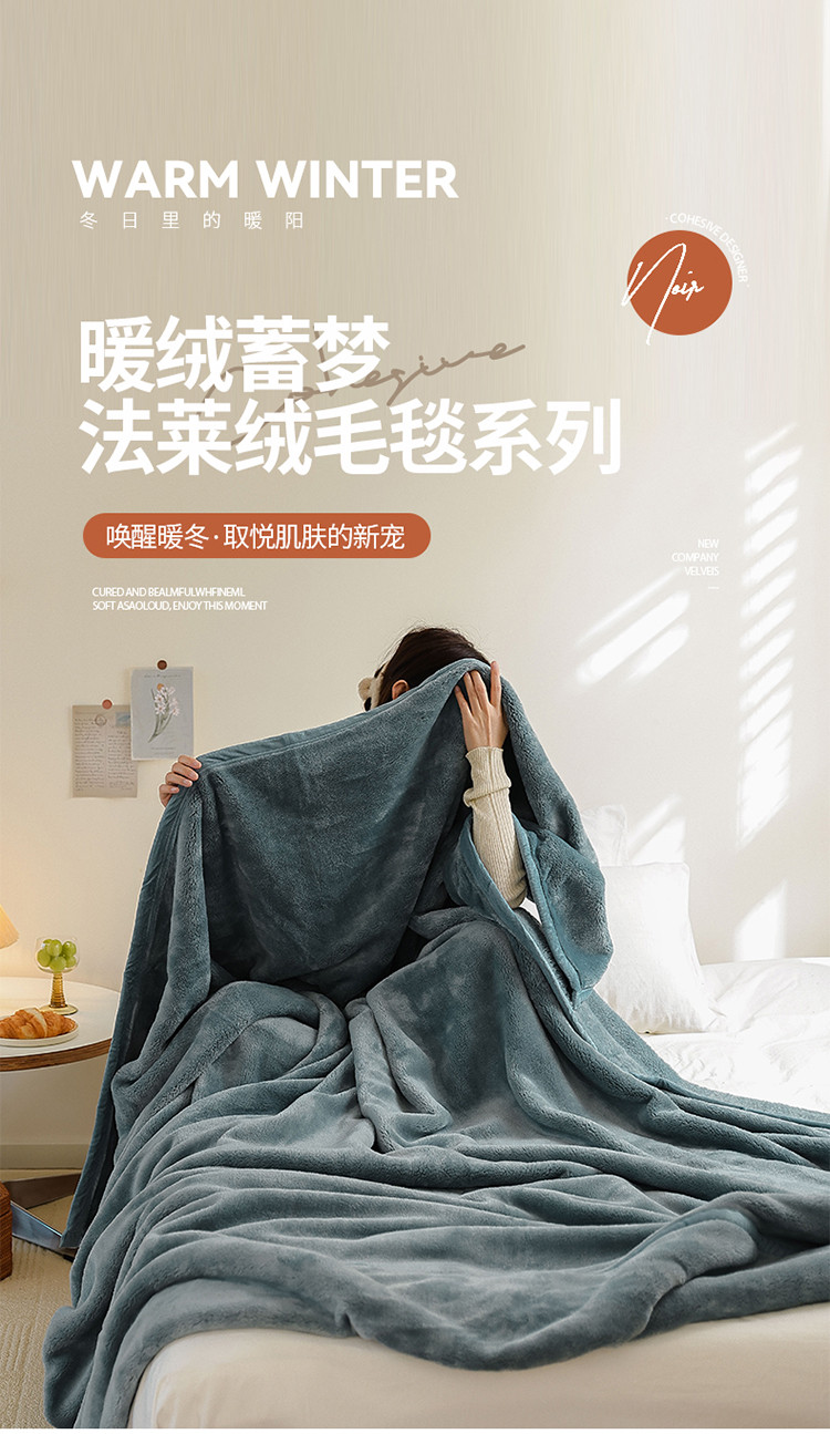 寐眠 2022新款法莱绒毛毯 雾蓝