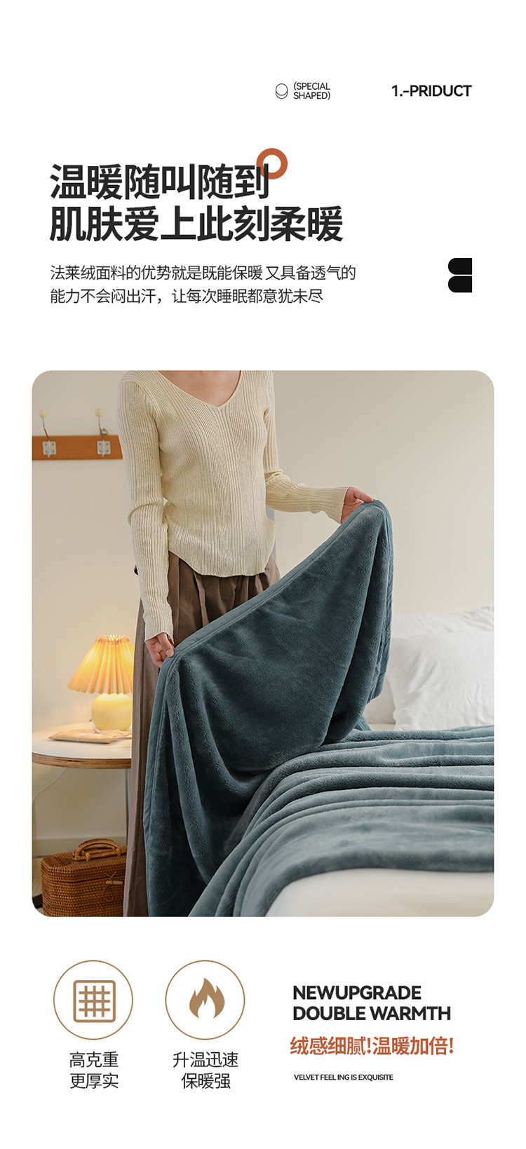 商品名称:寐眠 2022新款法莱绒毛毯 雾蓝
