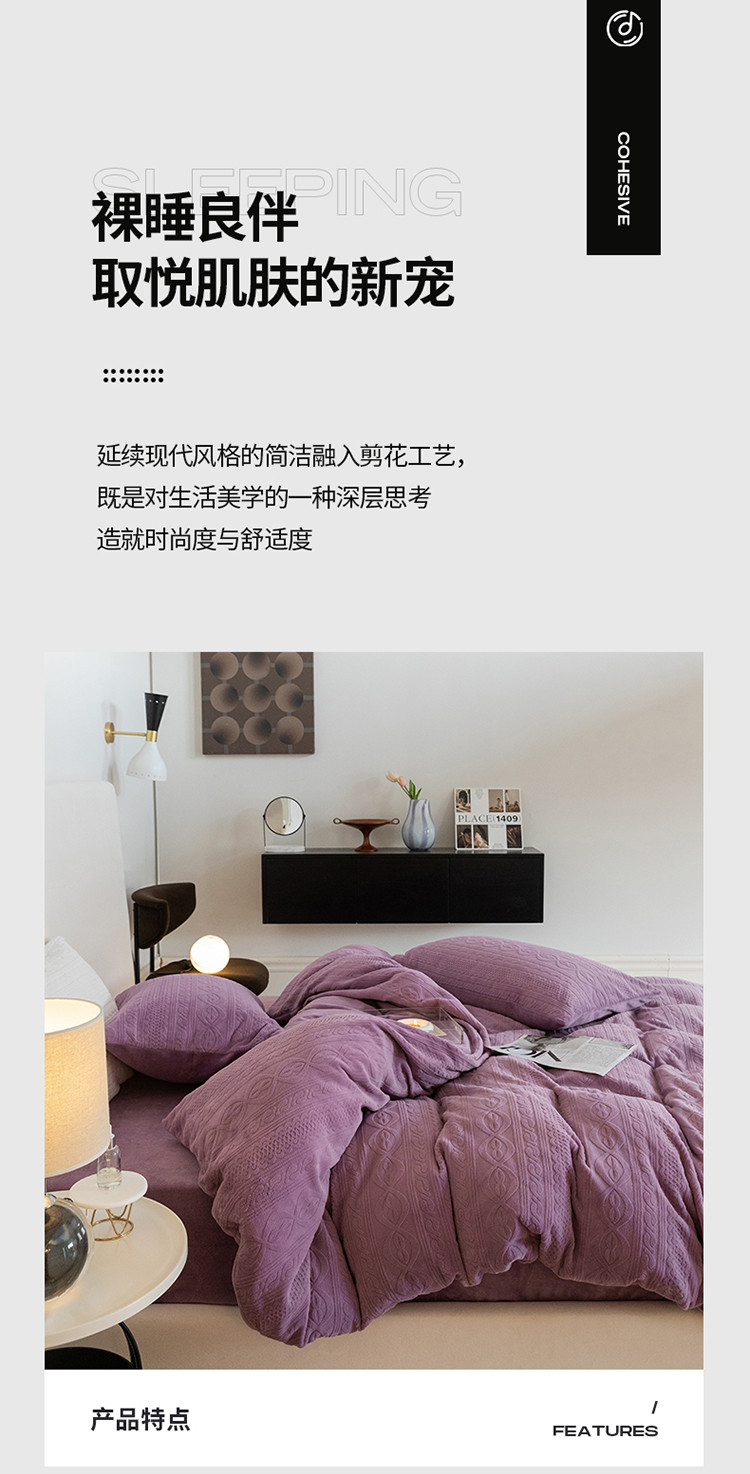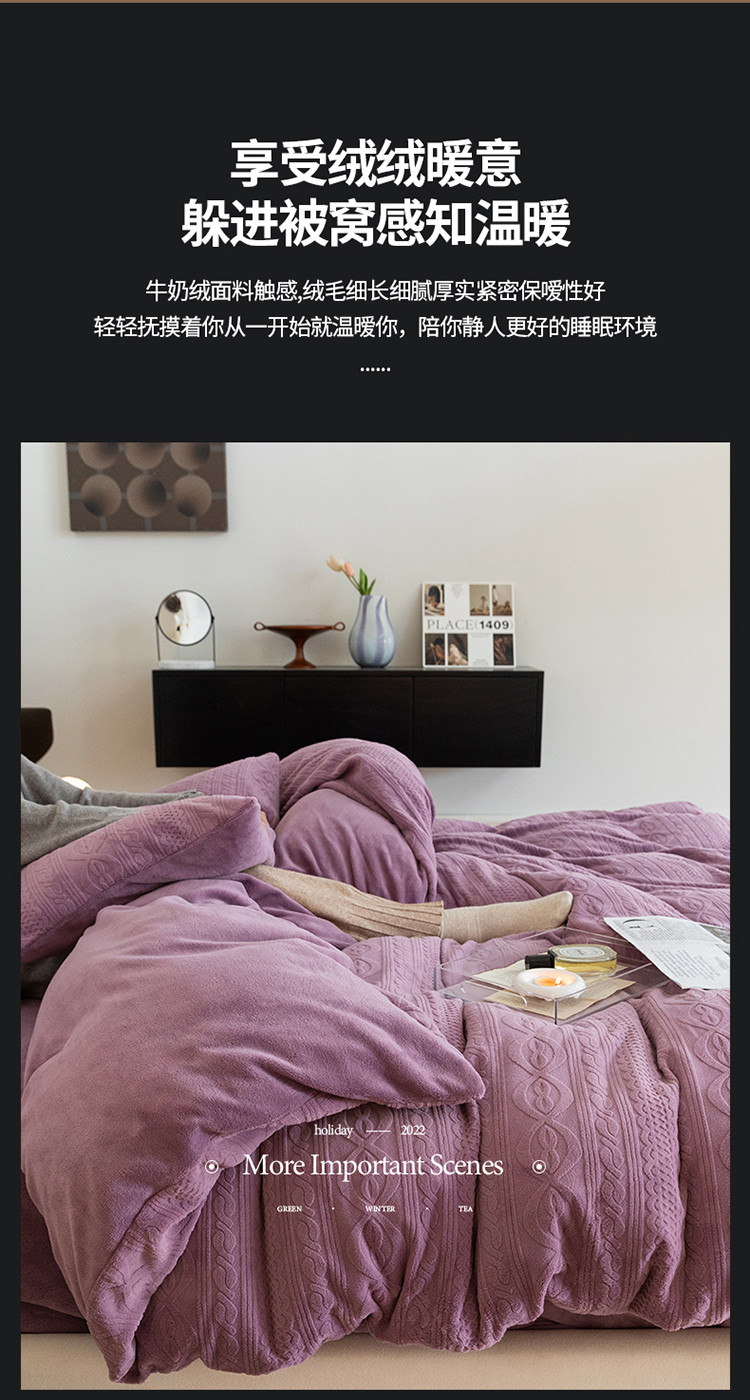 当前位置: 91家纺网 > 商品网购 > 床品套件 > 四件套 > 牛奶绒四件套 > 寐眠 2022新款牛奶绒剪花四件套 贵族紫