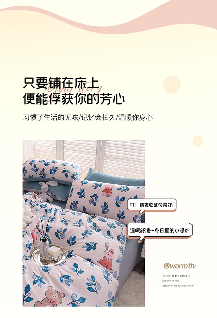 芃成 2022新款加厚双面牛奶绒印花床品系列-四件套 菲菲兔