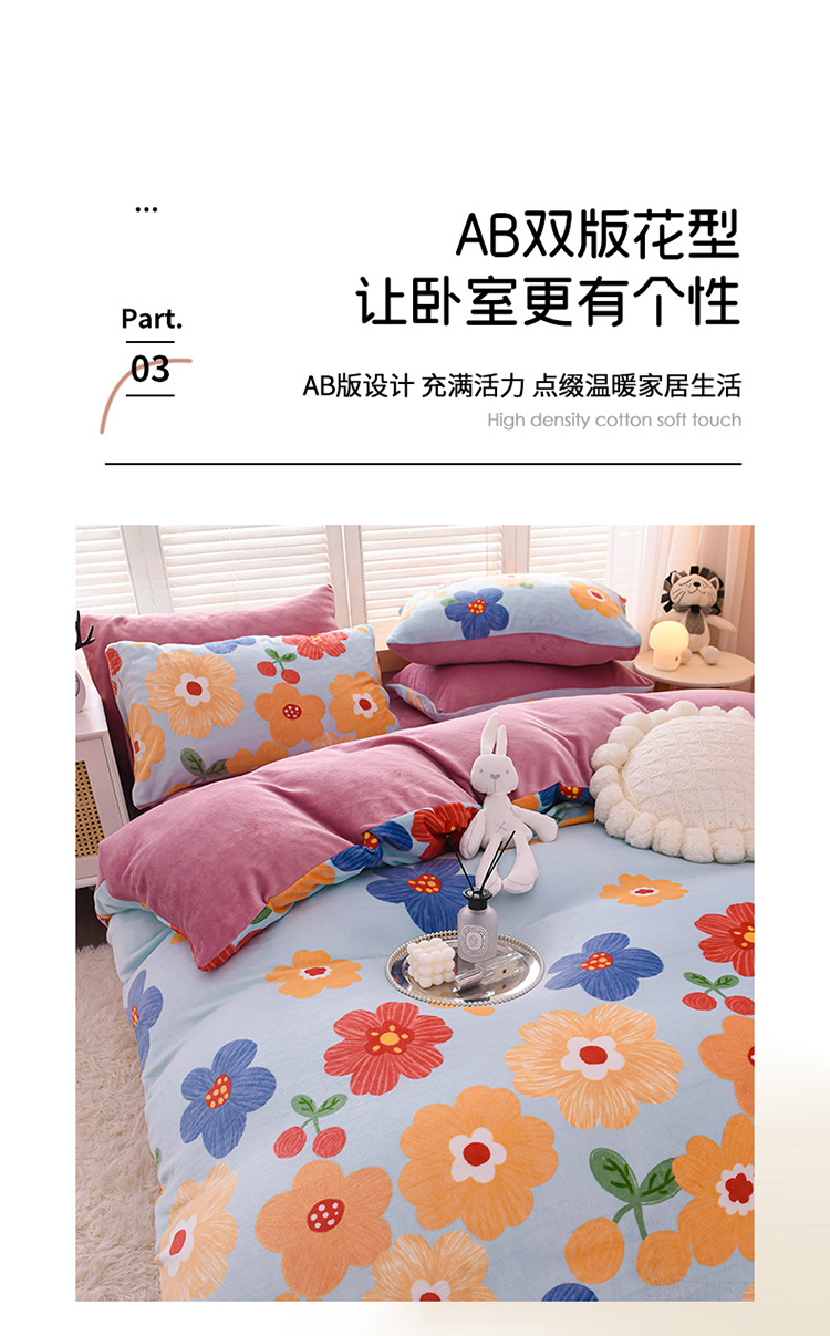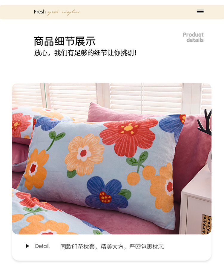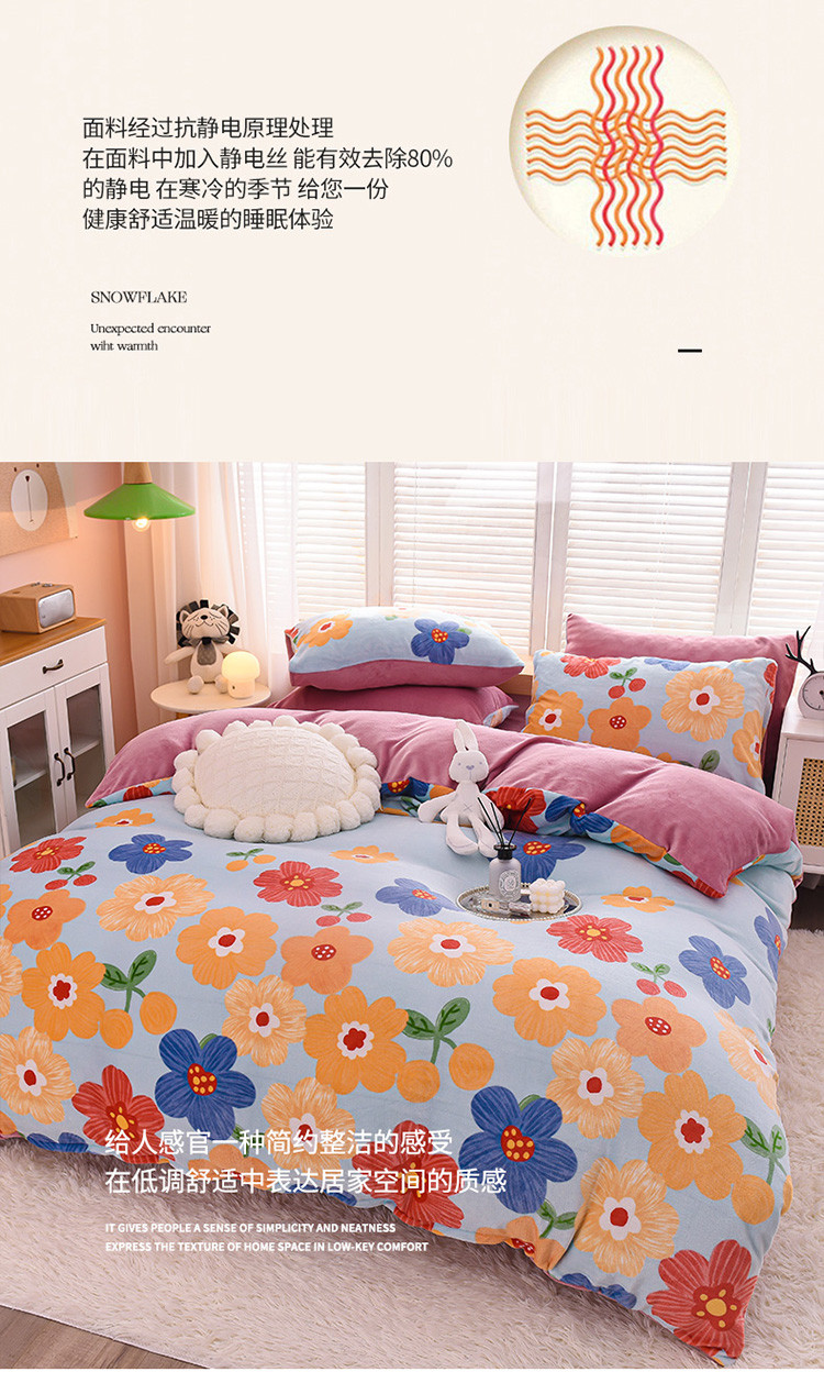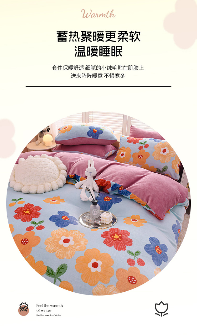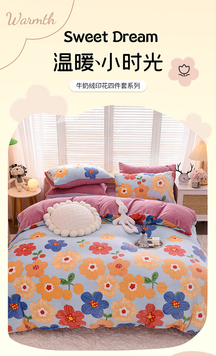商品名称:芃成 2022新款加厚双面牛奶绒印花床品系列-四件套 潘朵拉