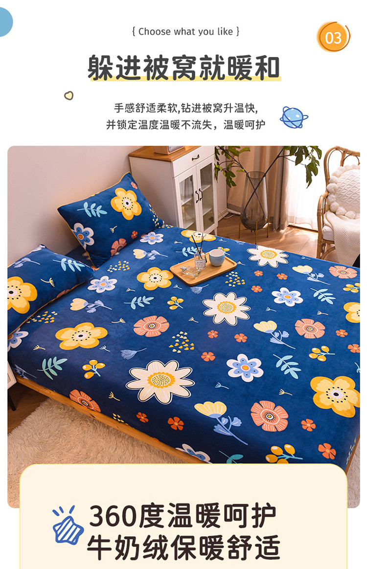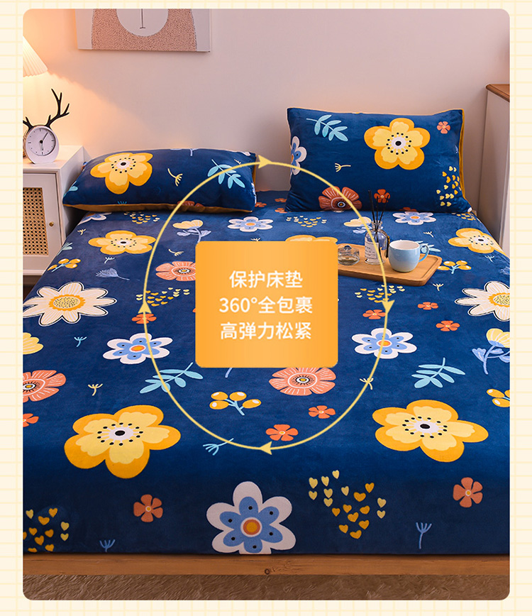 芃成 2022新款加厚双面牛奶绒印花床品系列-单床笠 陌上花