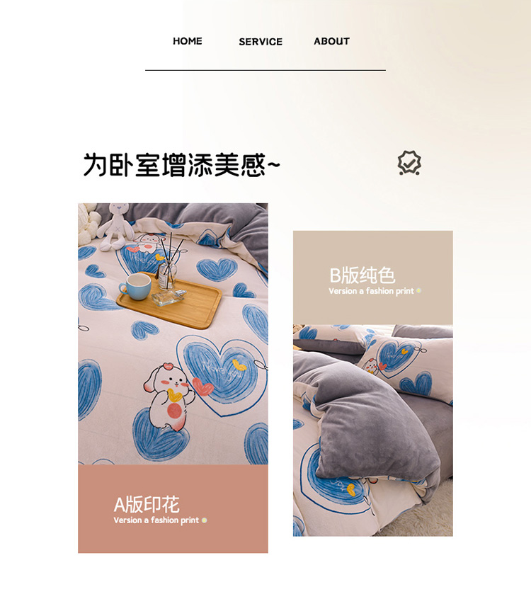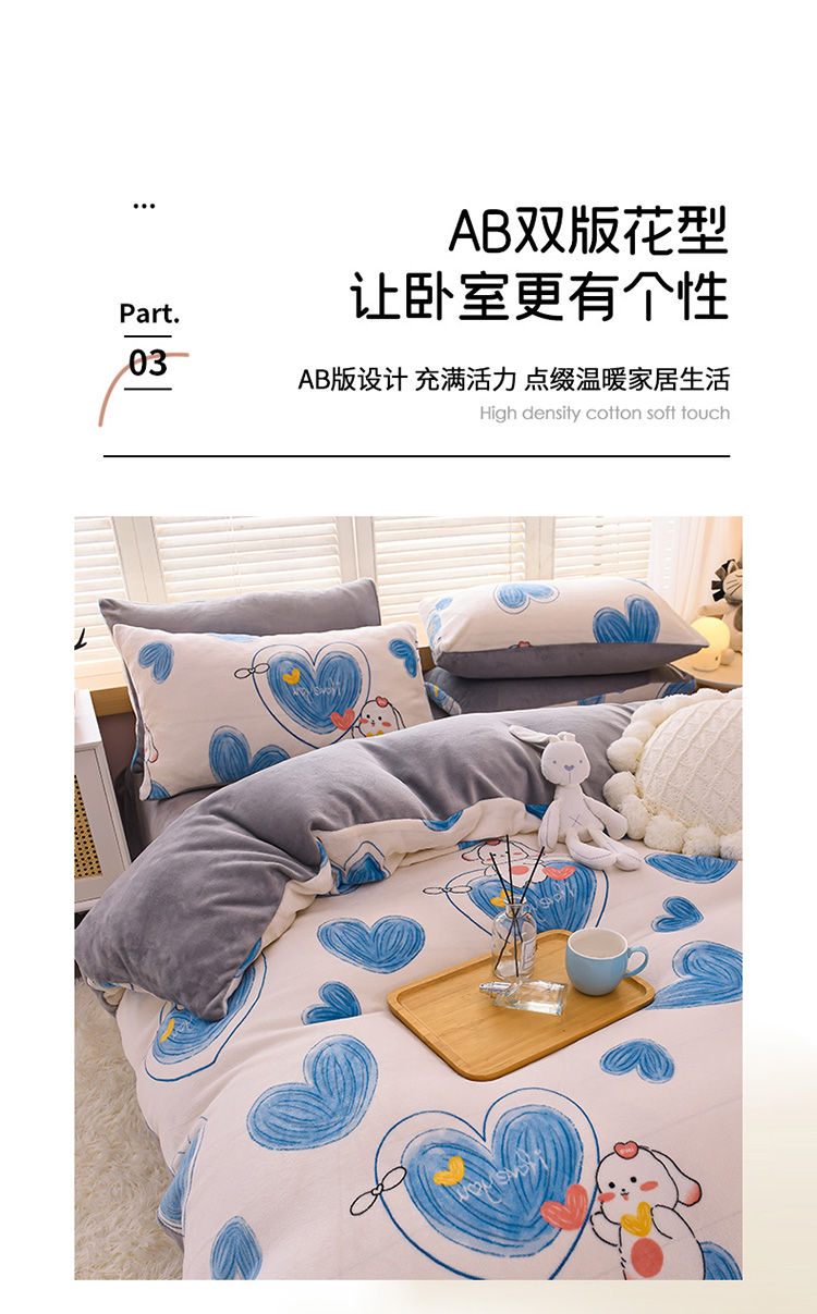 • 91家纺网 家纺一手货源 找家纺 芃成 2022新款加厚双面牛奶绒印花床品系列-单被套 爱心兔