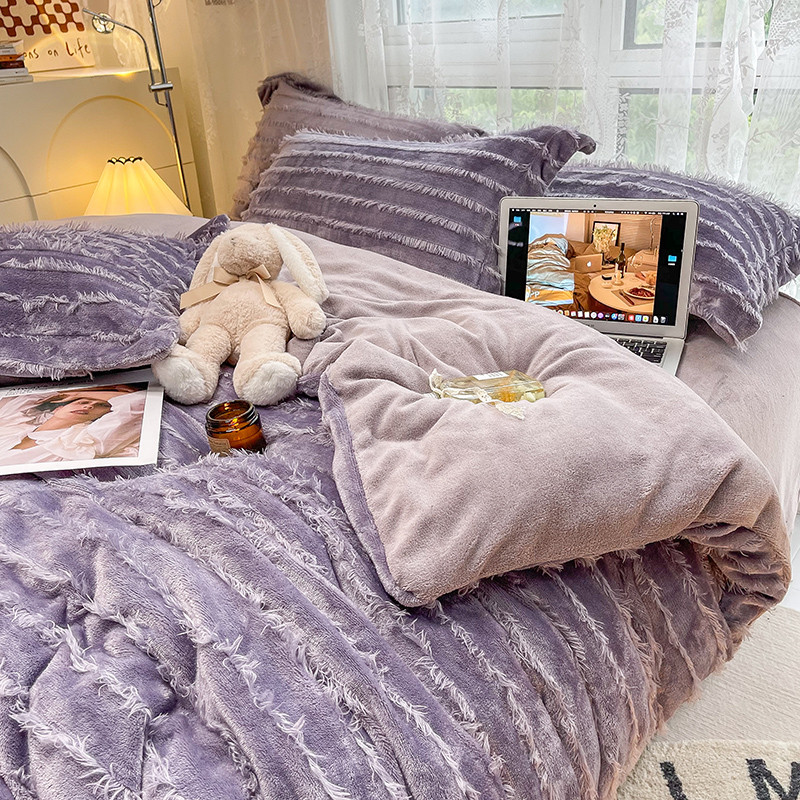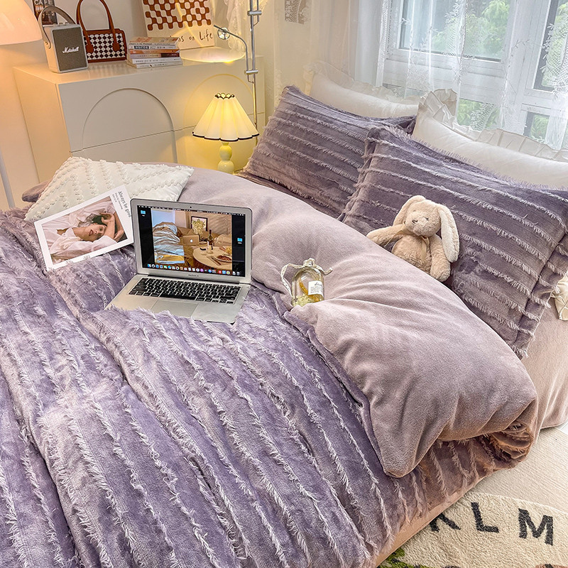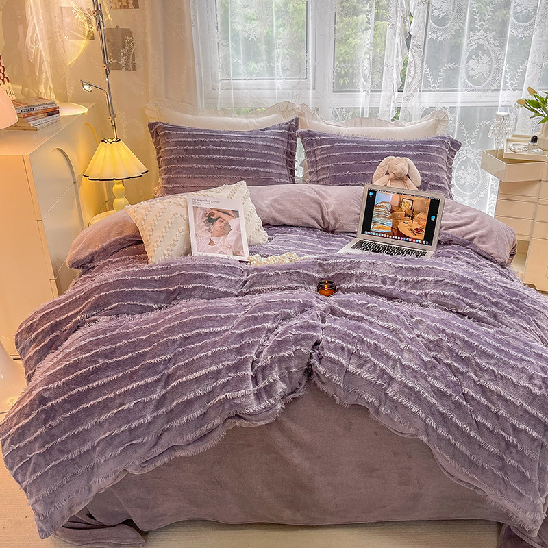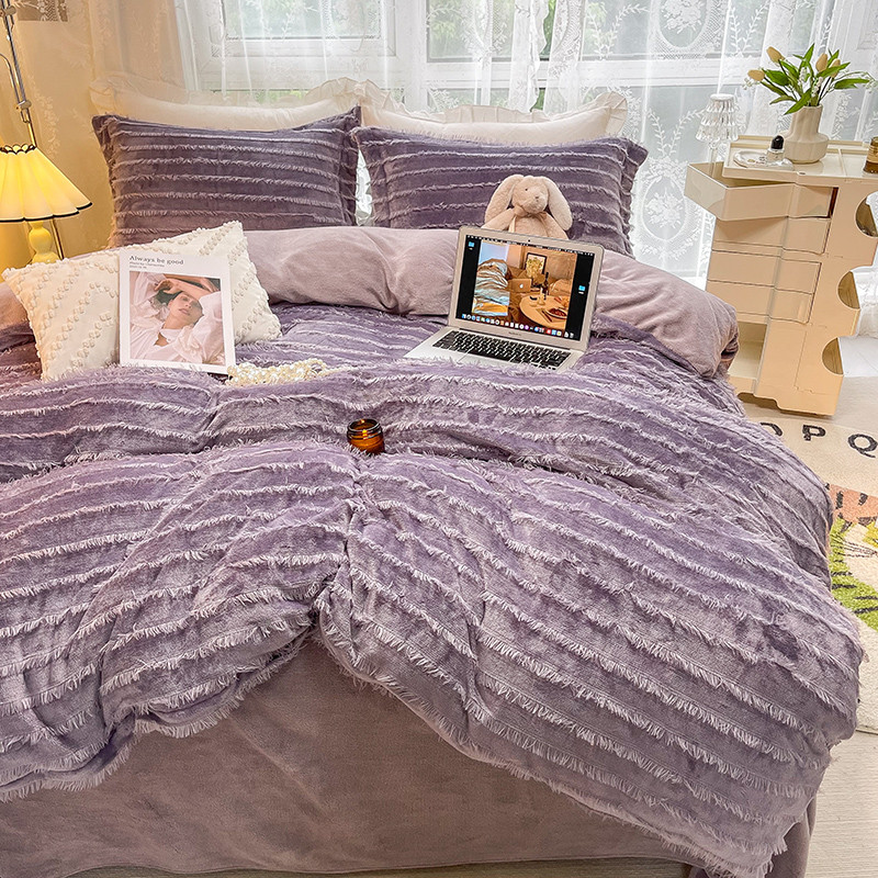 HL原创 2022新款流苏牛奶绒四件套 紫