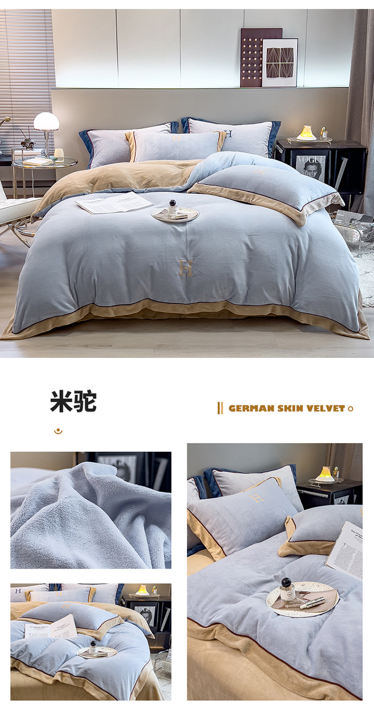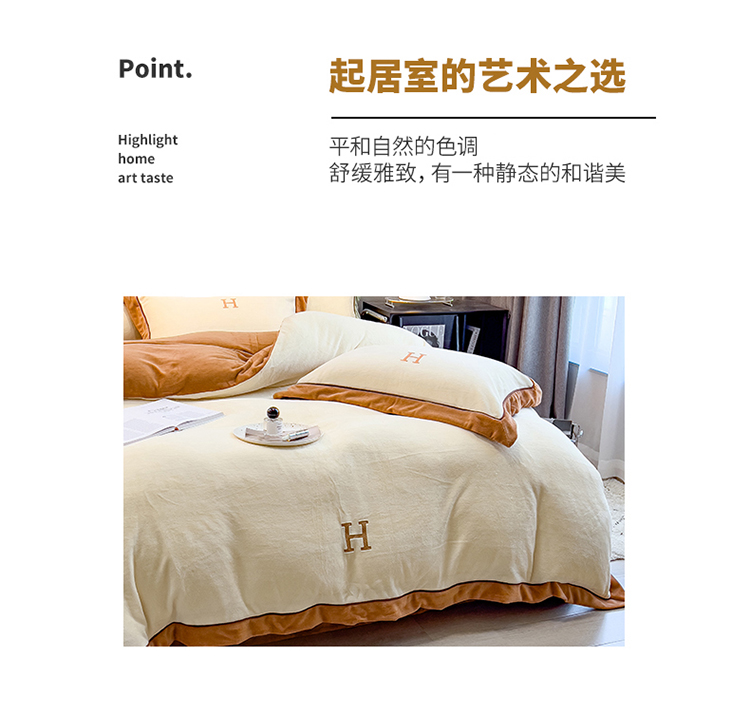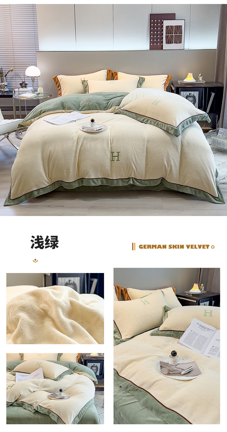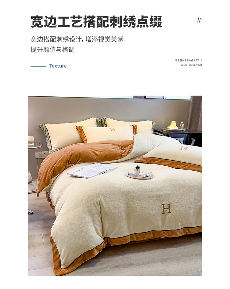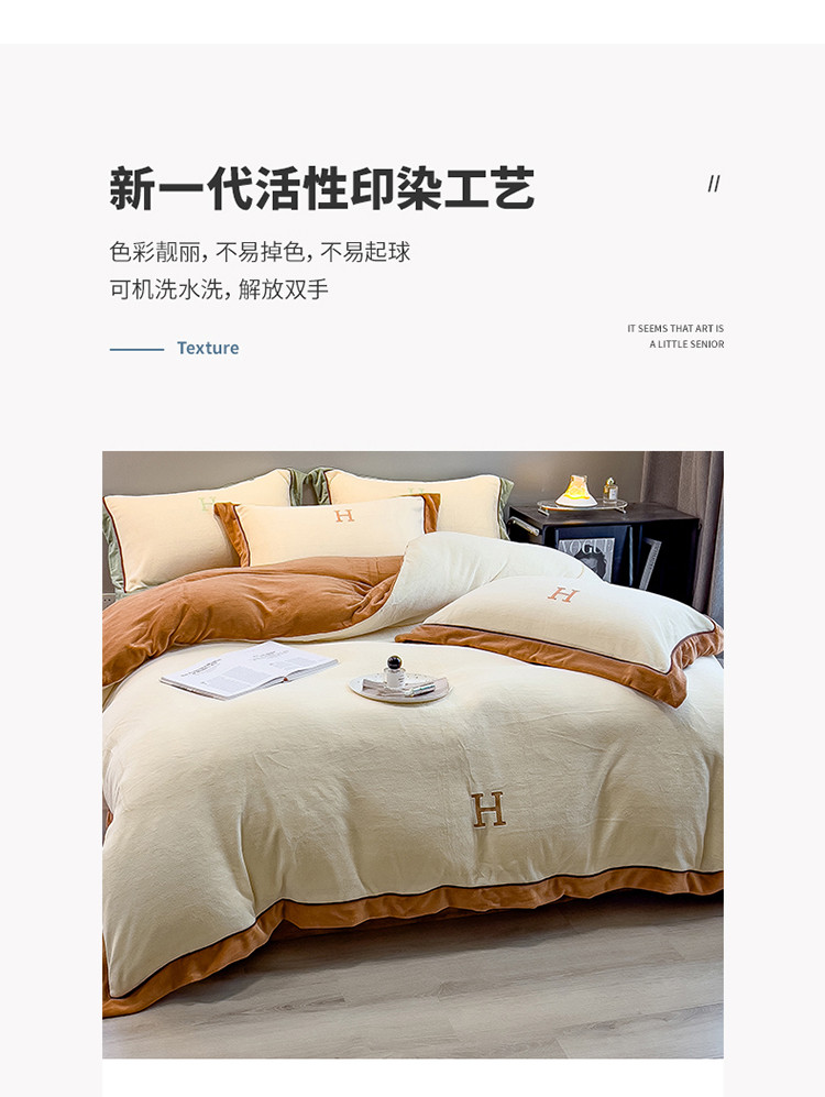(总)眠屿 2022新款H款拼色牛奶绒四件套