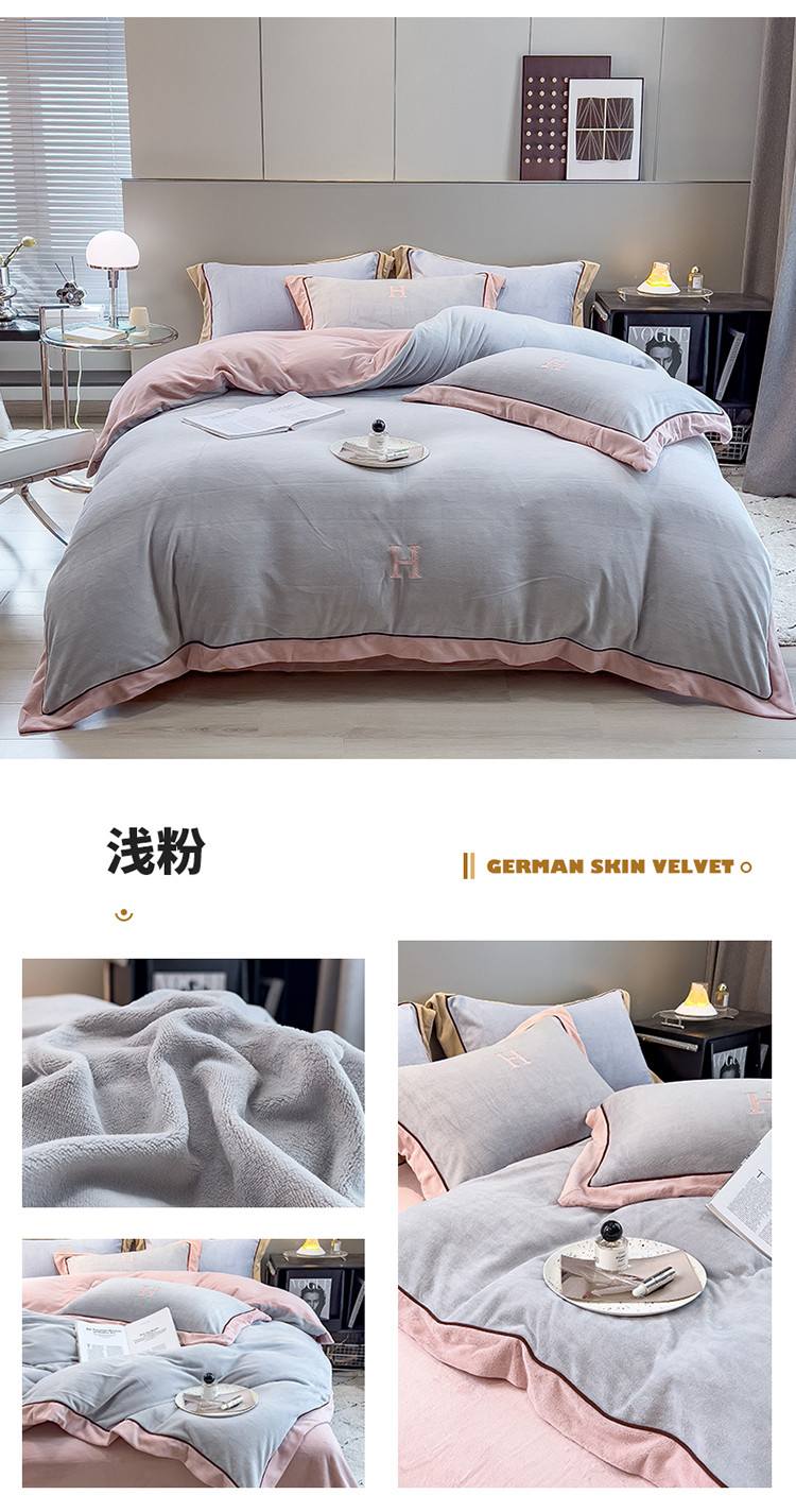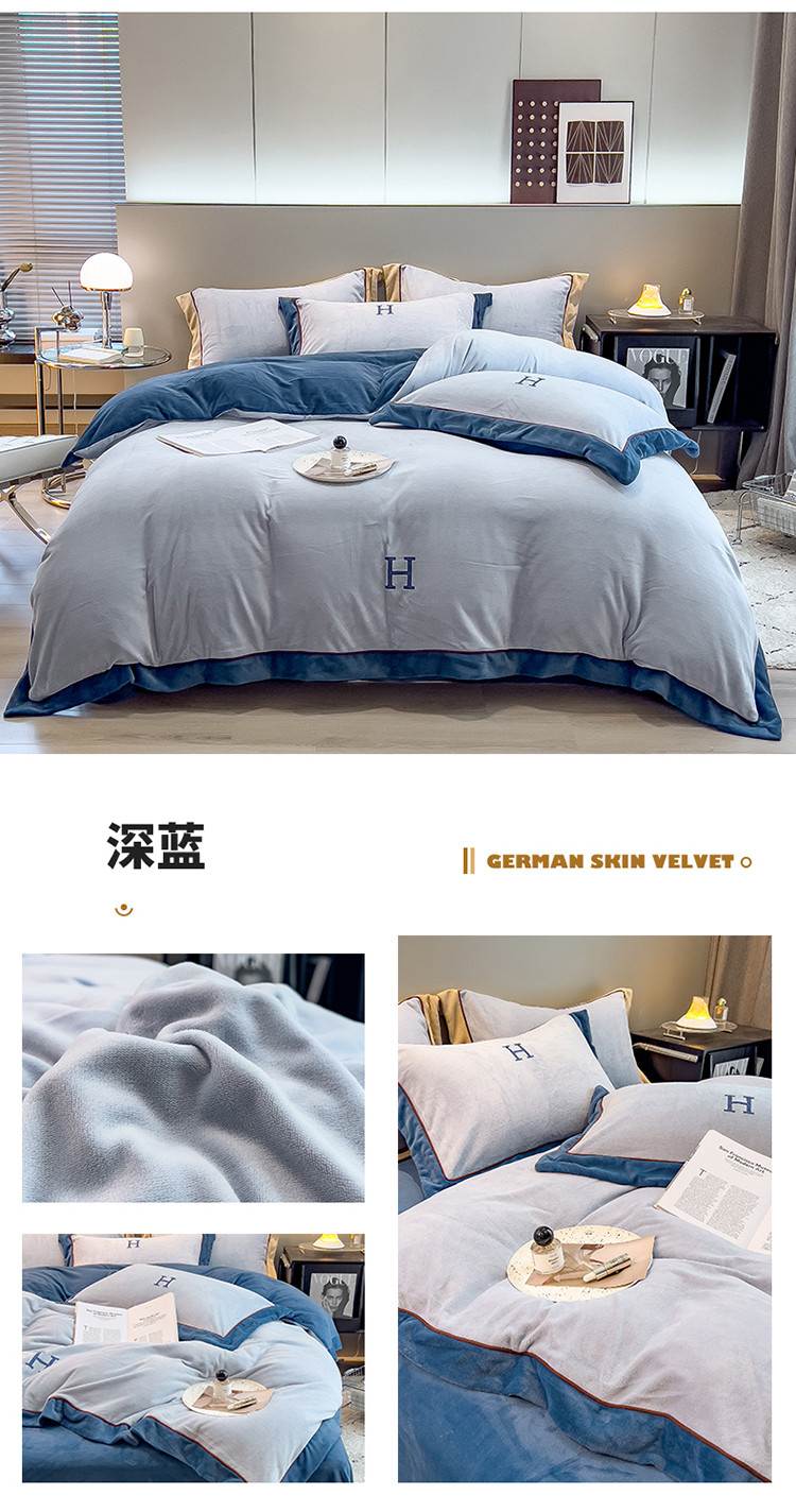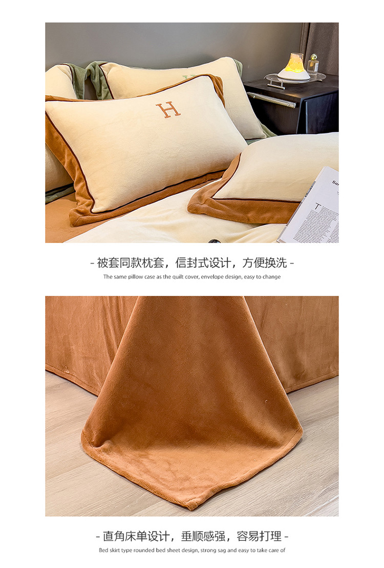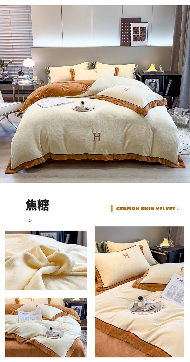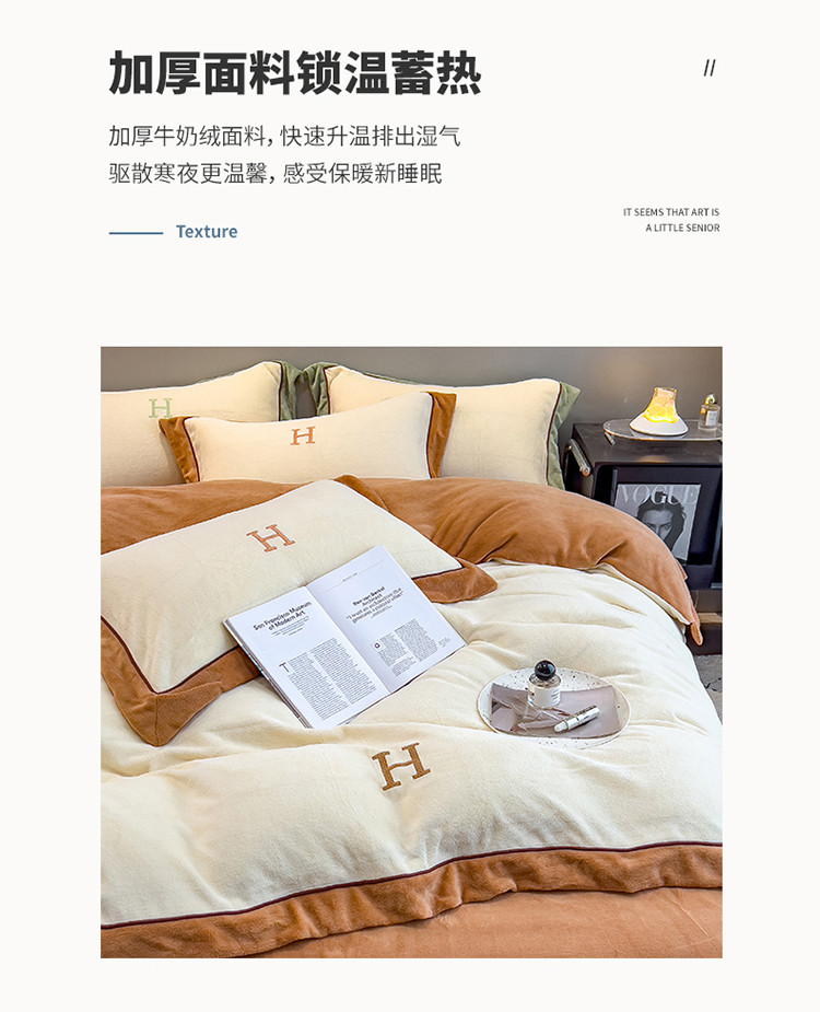 (总)眠屿 2022新款H款拼色牛奶绒四件套