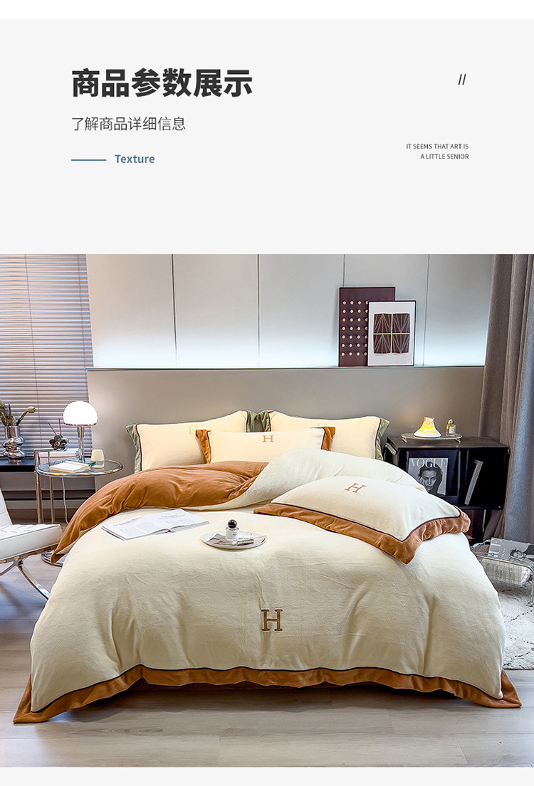 商品名称:(总)眠屿 2022新款H款拼色牛奶绒四件套