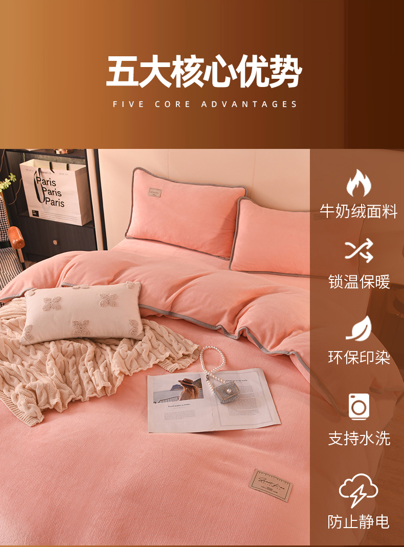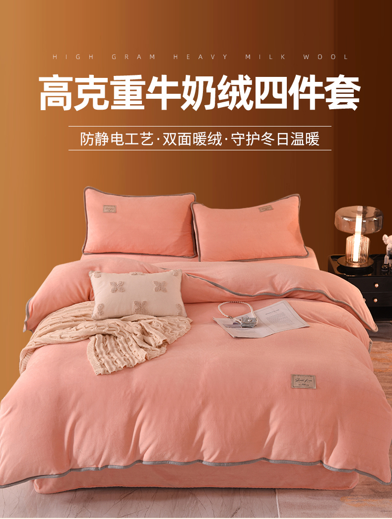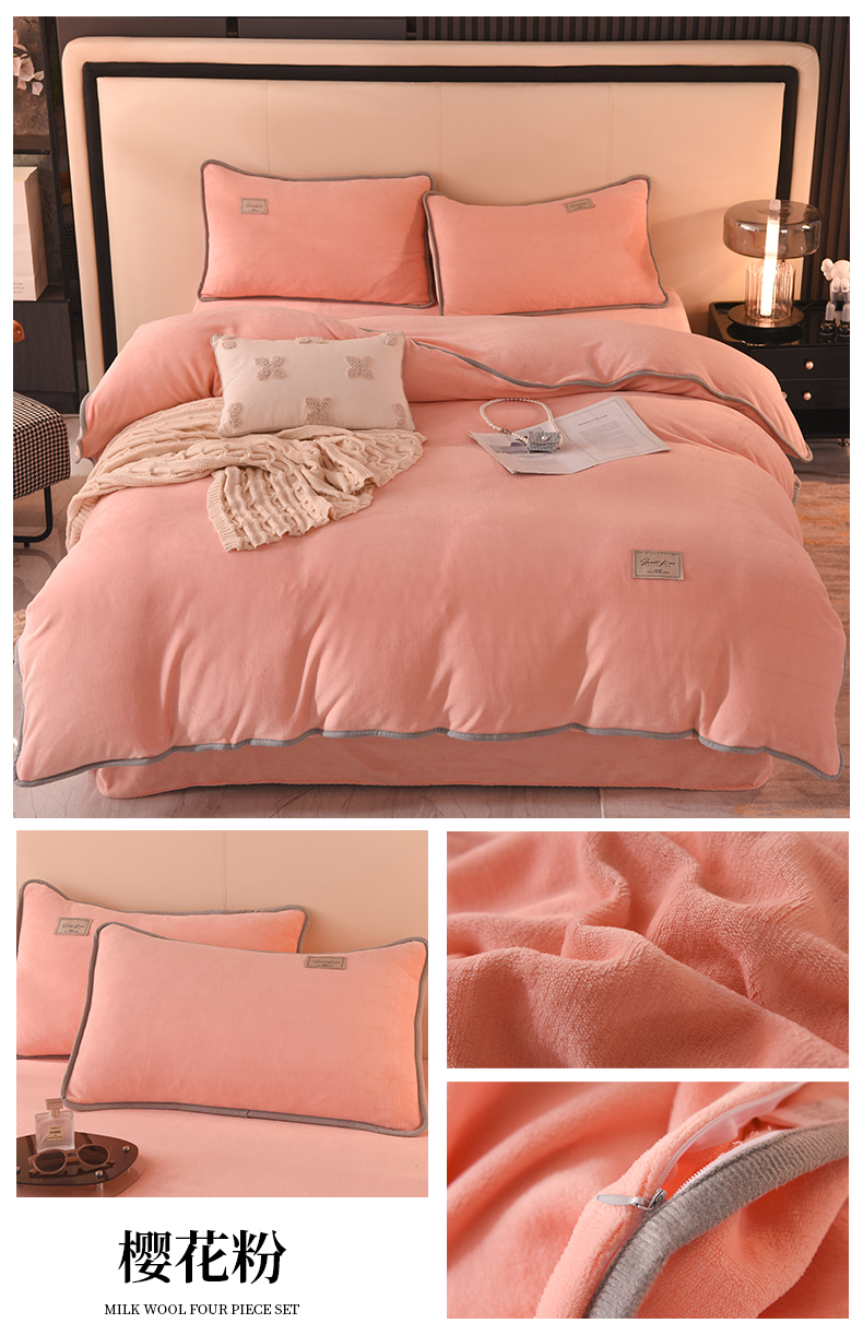 当前位置: 91家纺网 > 商品网购 > 床品套件 > 四件套 > 牛奶绒四件套 > 518家纺 新款220克牛奶绒纯色四件套支持定制 樱花粉