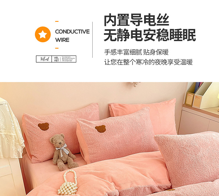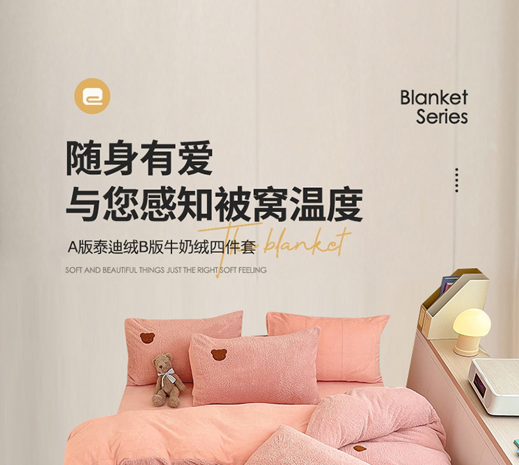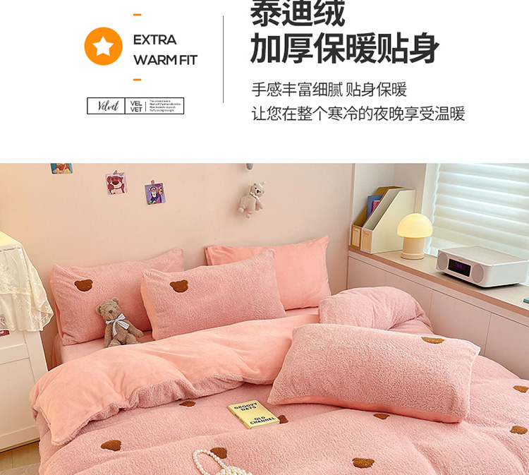 当前位置: 91家纺网 > 商品网购 > 床品套件 > 四件套 > 磨绒四件套 > 琪格格 2022新款泰迪绒毛巾绣四件套 泰迪绒-樱花粉