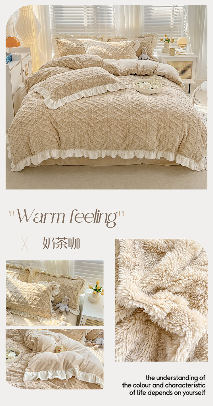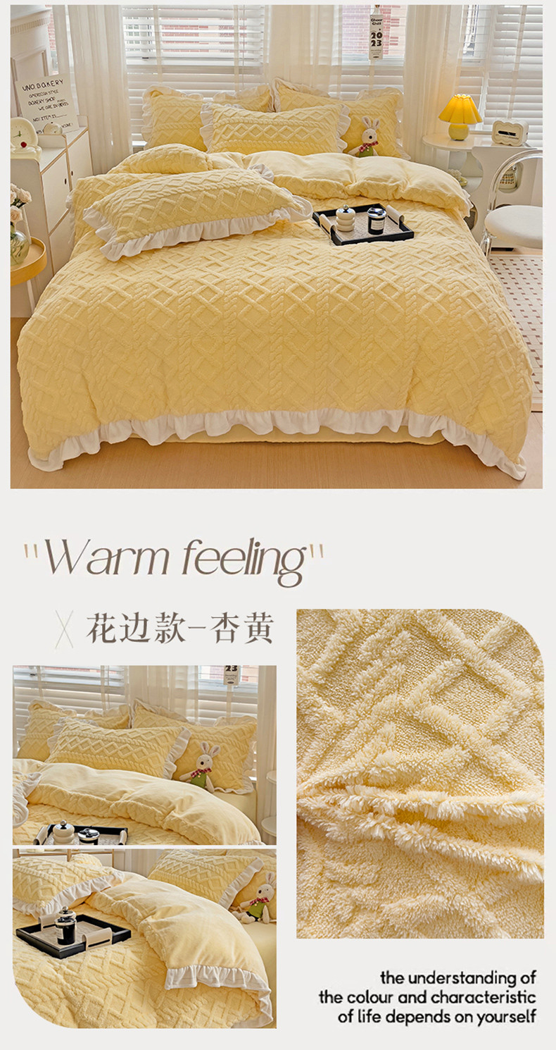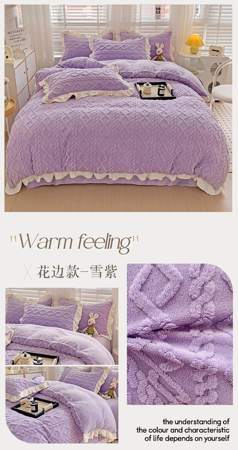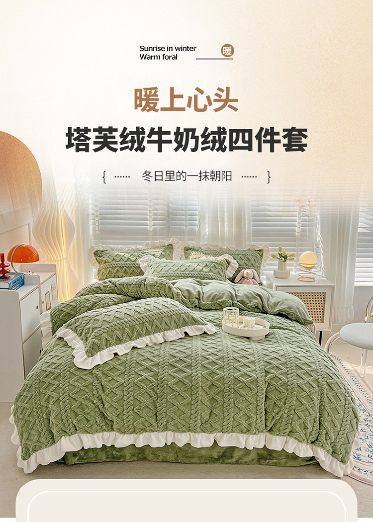 (总)艾咪 新款高克重加厚塔芙绒牛奶绒四件套三件套-花边款