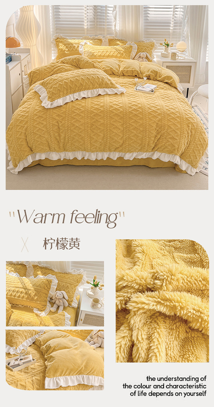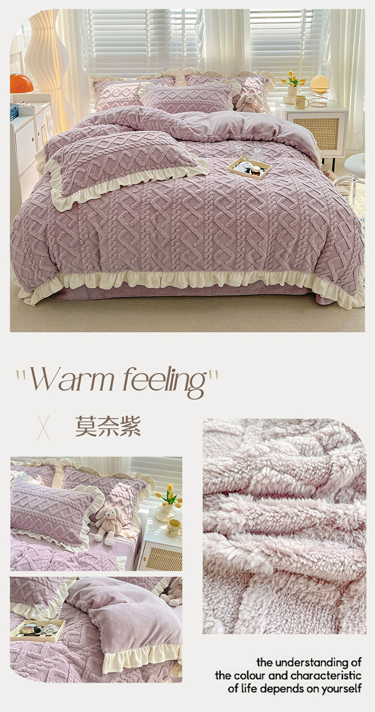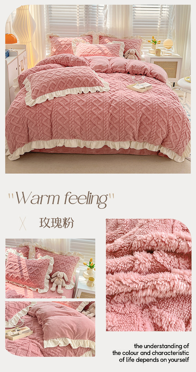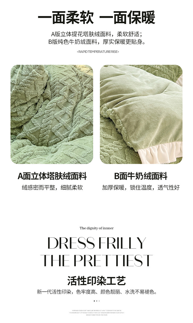 (总)艾咪 新款高克重加厚塔芙绒牛奶绒四件套三件套-花边款