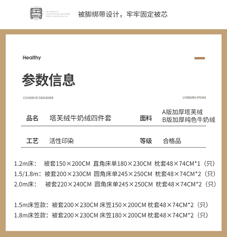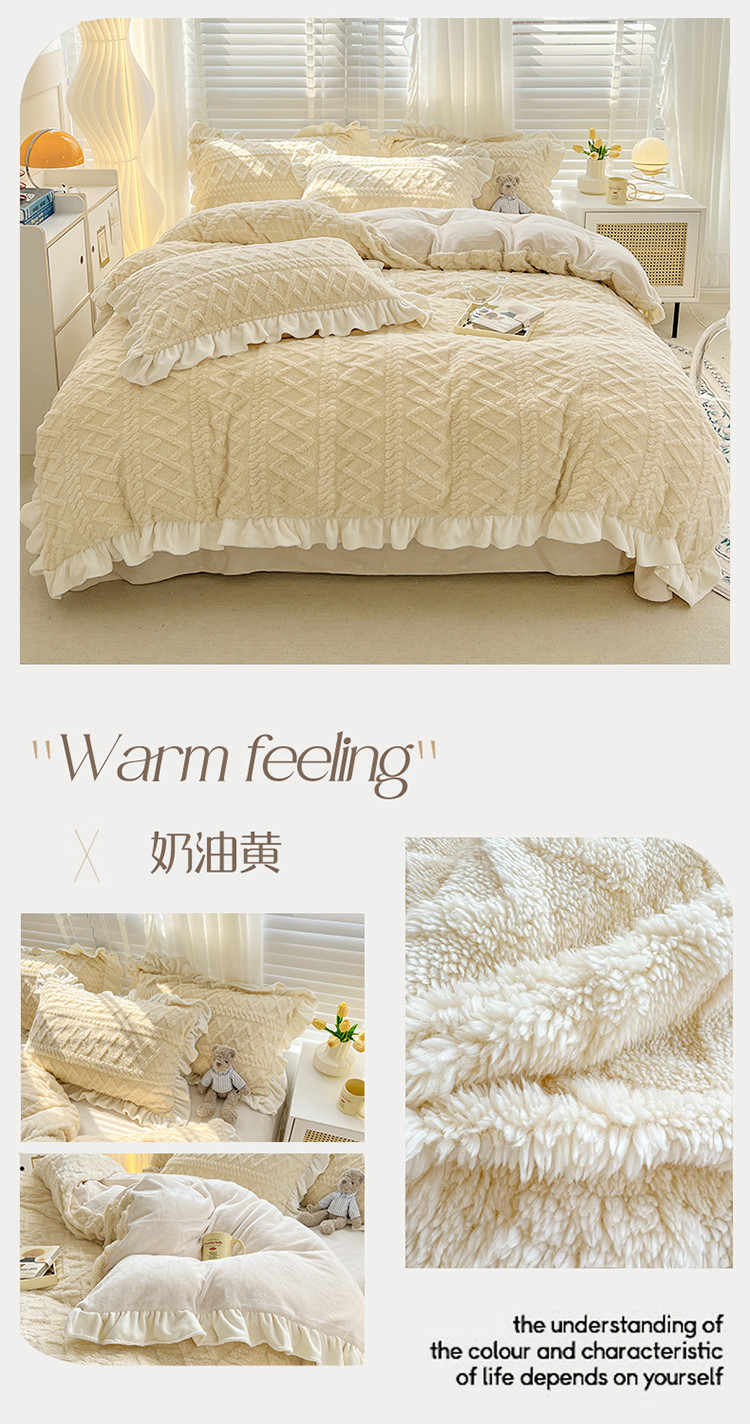 商品名称:(总)艾咪 新款高克重加厚塔芙绒牛奶绒四件套三件套-花边款