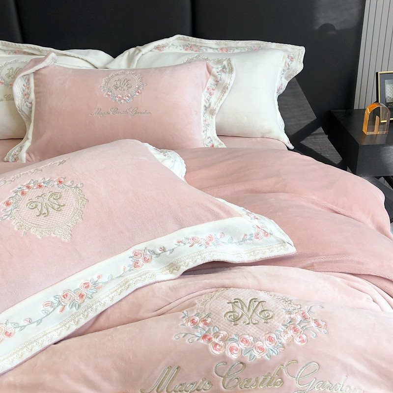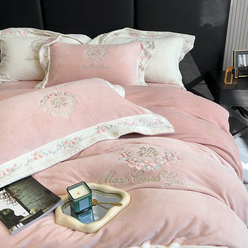 商品名称:馨蕊家居 2022新款轻奢煦暖绒梦露系列四件套 梦露-豆蔻粉