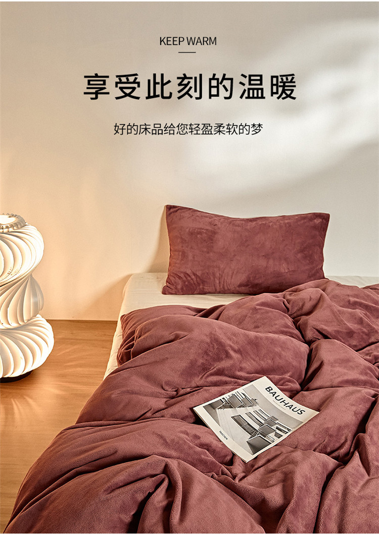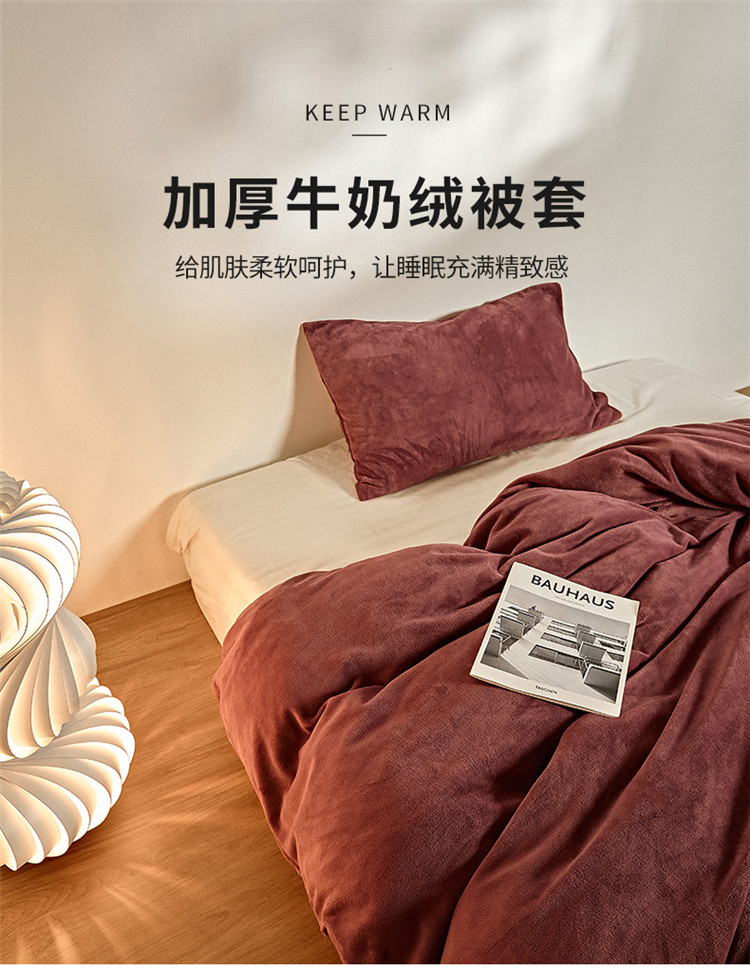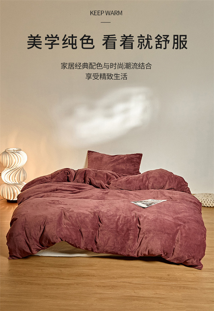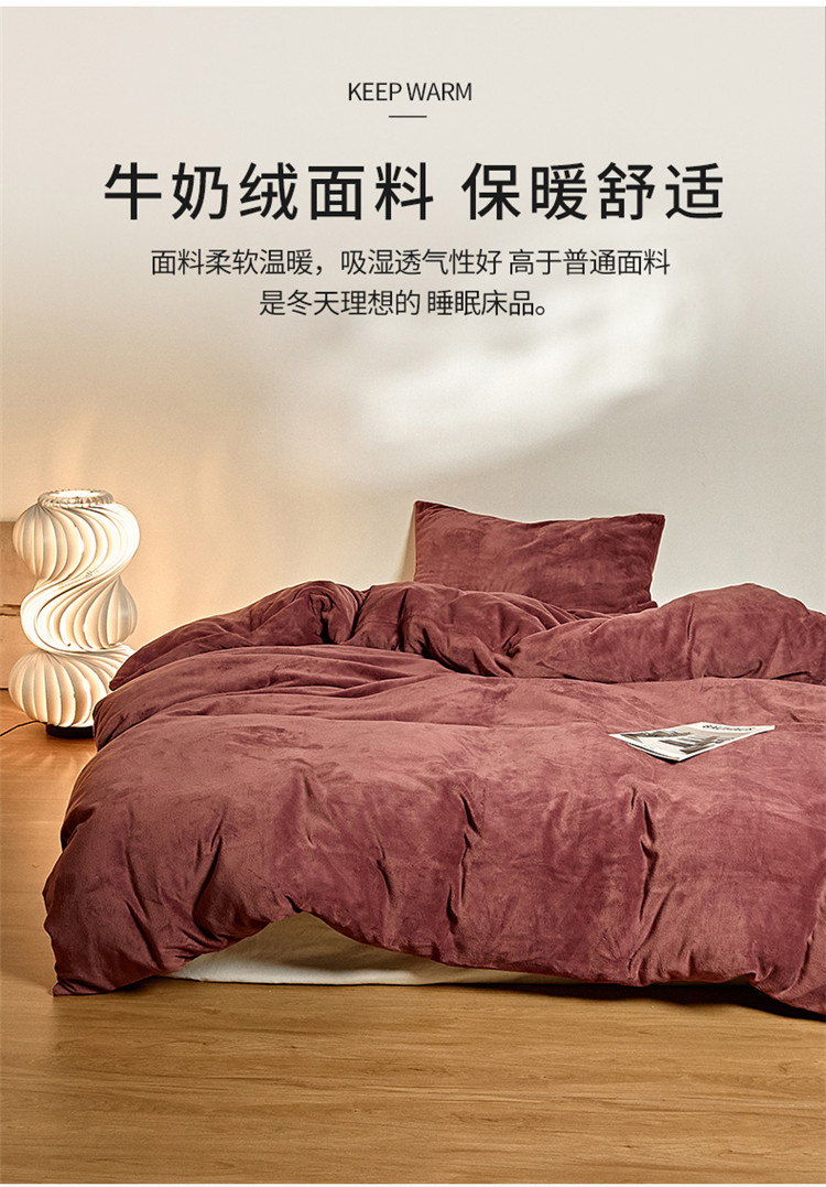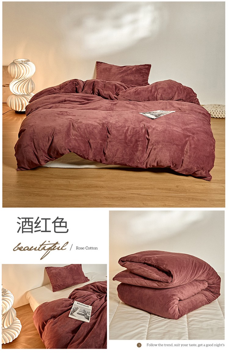 商品名称:新款纯色牛奶绒被套 酒红色