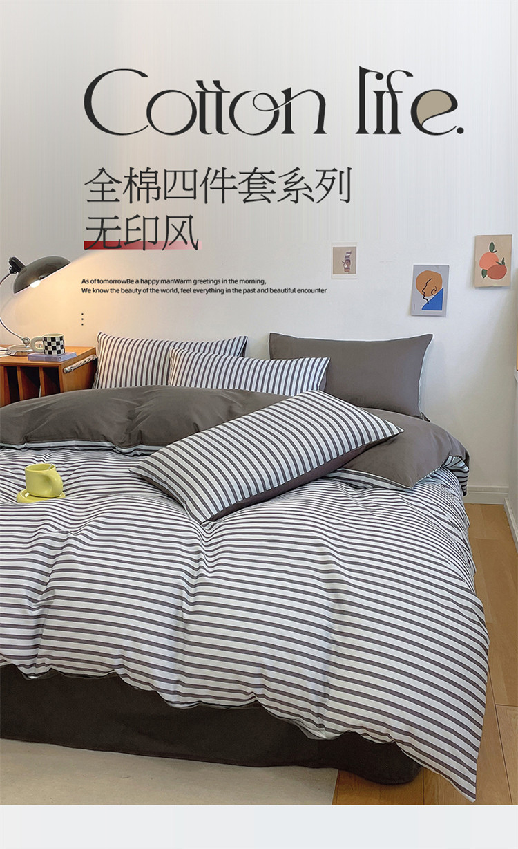当前位置: 91家纺网 > 商品网购 > 床品套件 > 四件套 > 全棉普通四件套 > 798 2023新款全棉无印风系列四件套 深灰条