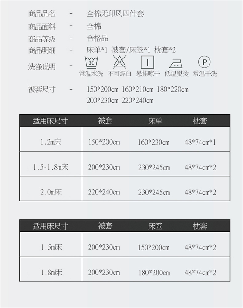 1.5m床笠款四件套 | ¥105.00 |