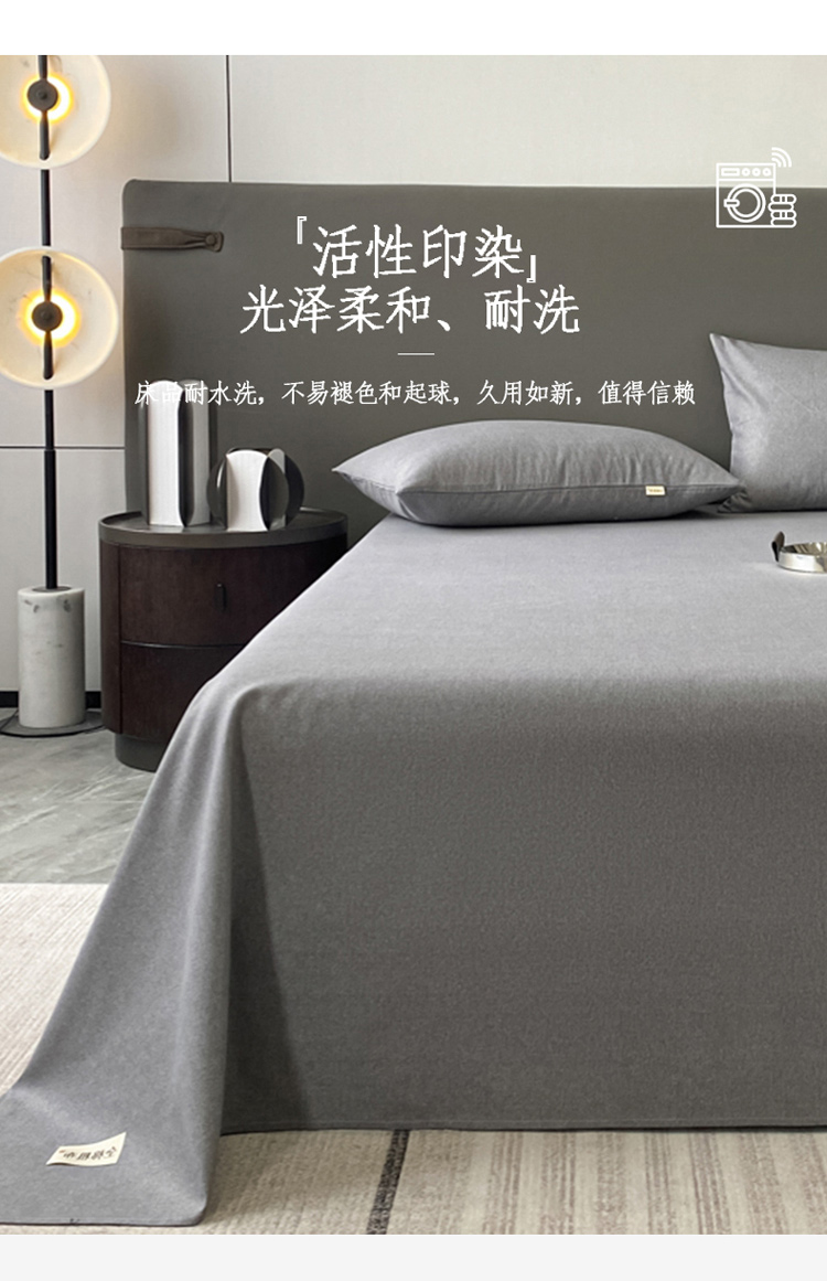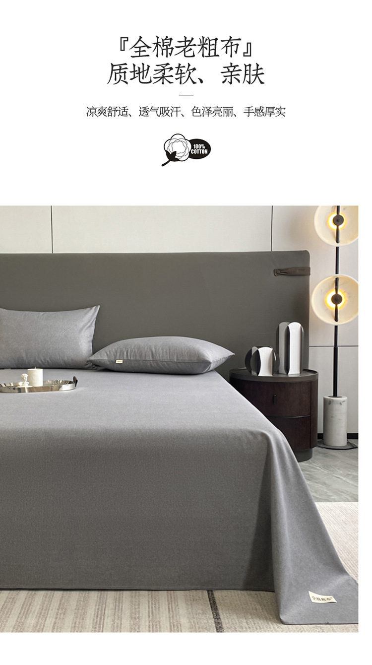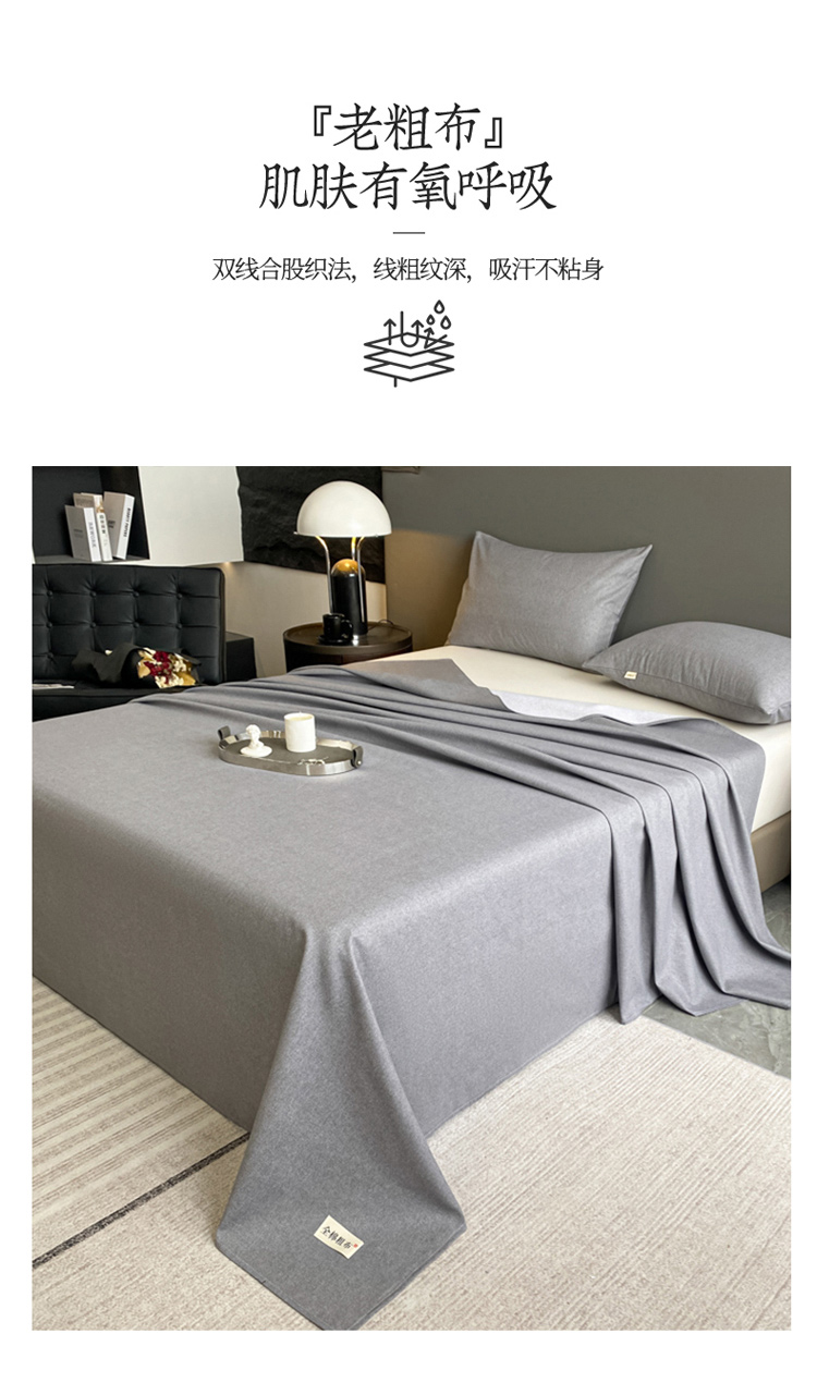 卧趣家纺 2023新款全棉老粗布单品系列单床单 月白-灰
