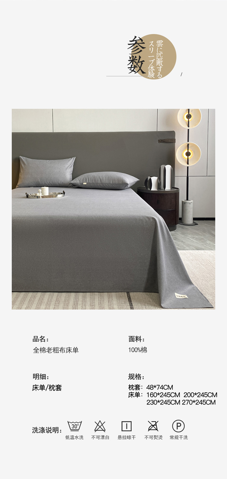 商品名称:卧趣家纺 2023新款全棉老粗布单品系列单床单 月白-灰