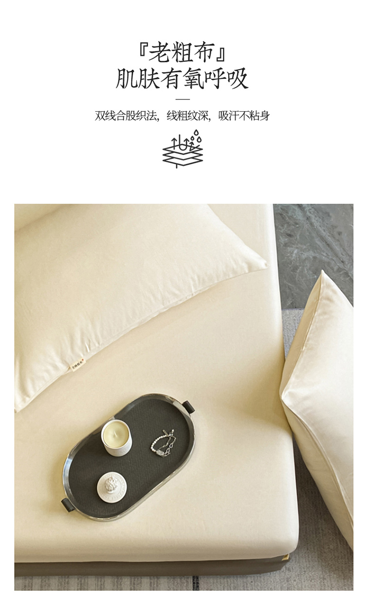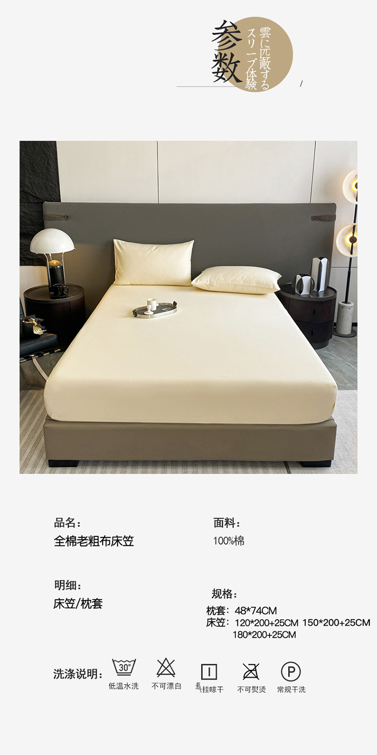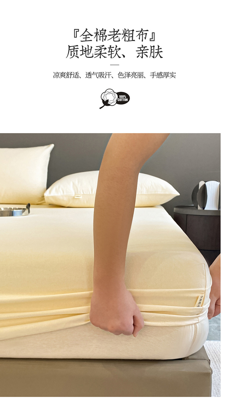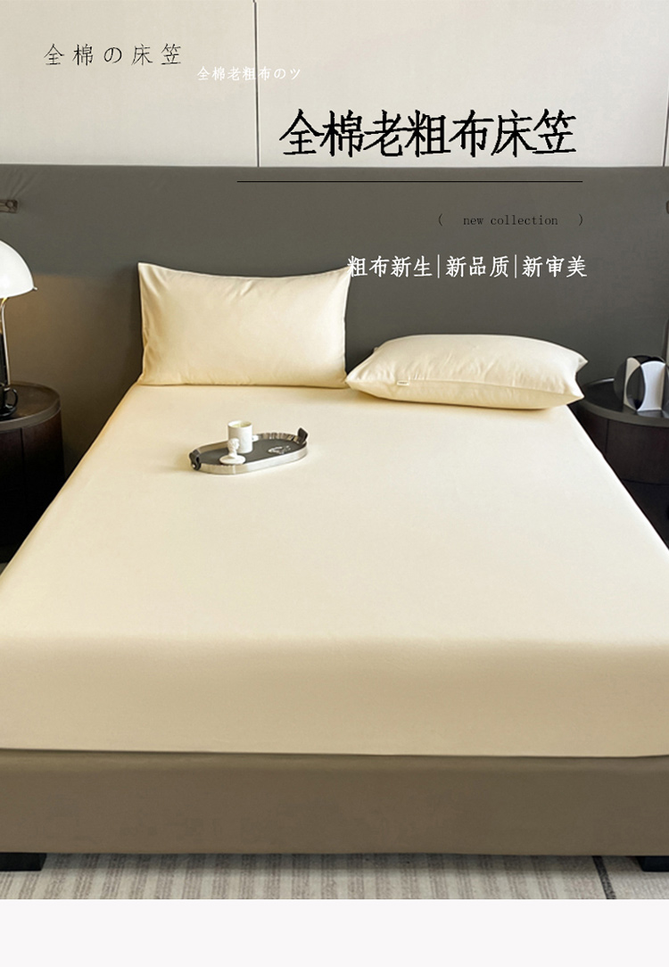 卧趣家纺 2023新款全棉老粗布单品系列单床笠 月白-白
