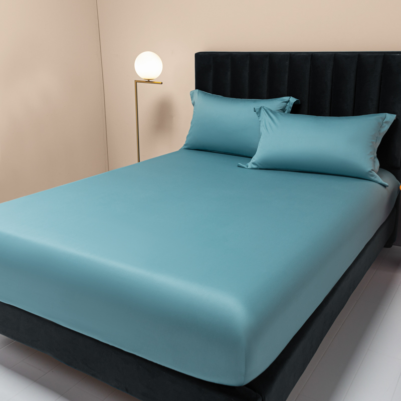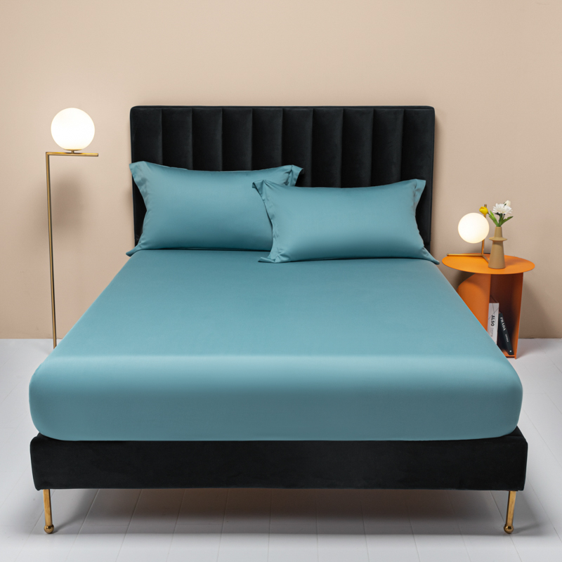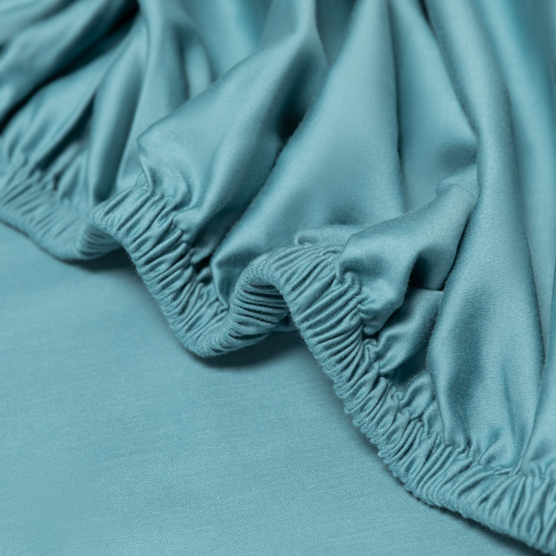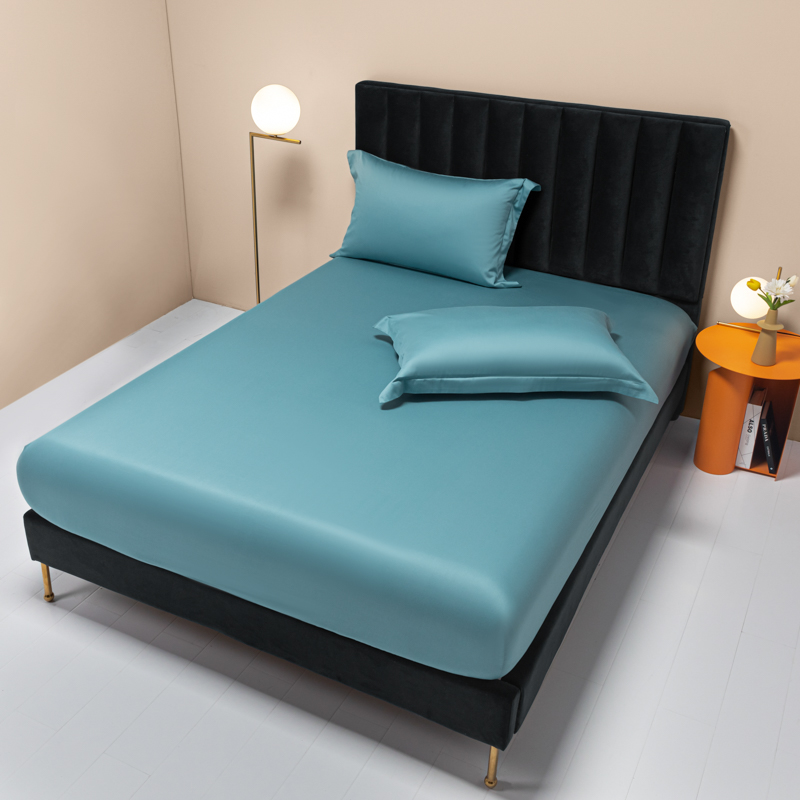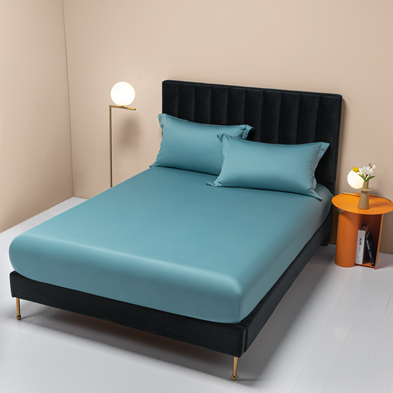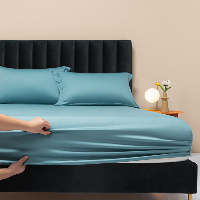 秀色家纺 2025新款A类50支贡缎双股长绒棉单品床笠雾霾蓝