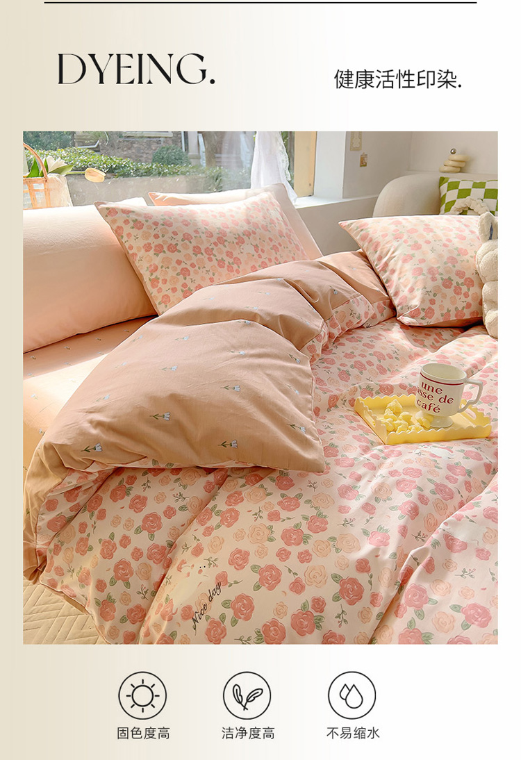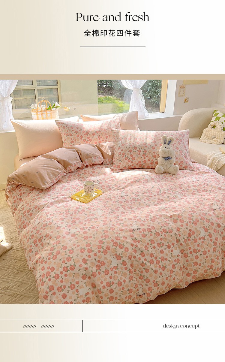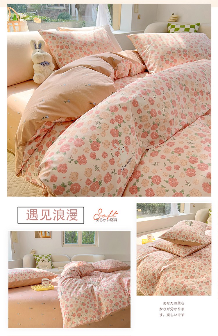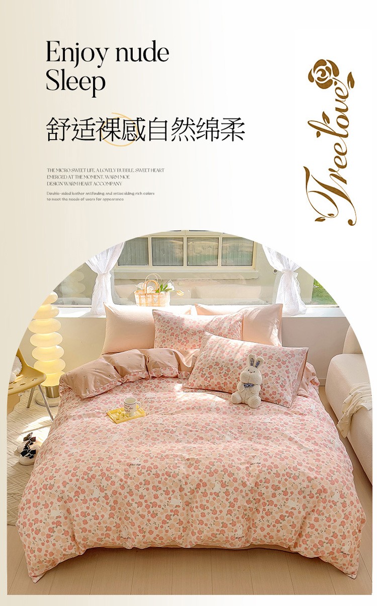 (总)田野 2022新款水洗棉小清新小碎花全棉四件套,花丛,花涧,绿婉,曼舞,桃夭,甜馨草莓,兔兔,银杏