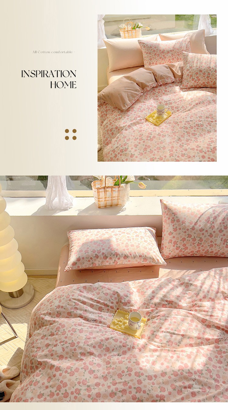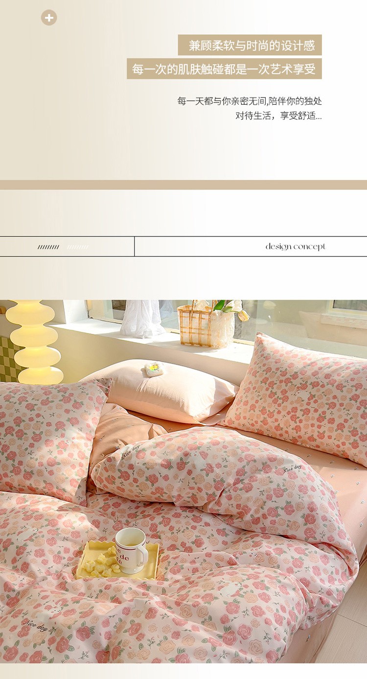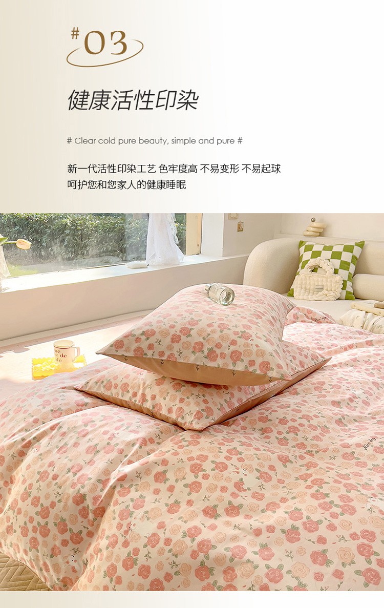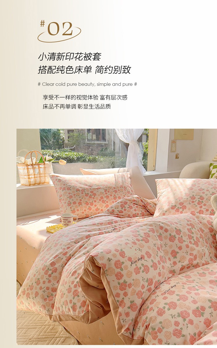 (总)田野 2022新款水洗棉小清新小碎花全棉四件套,花丛,花涧,绿婉,曼舞,桃夭,甜馨草莓,兔兔,银杏