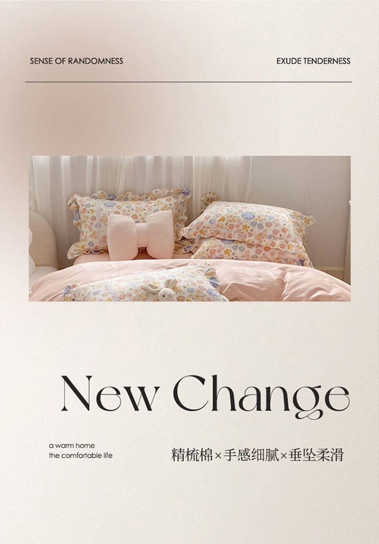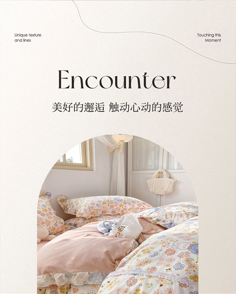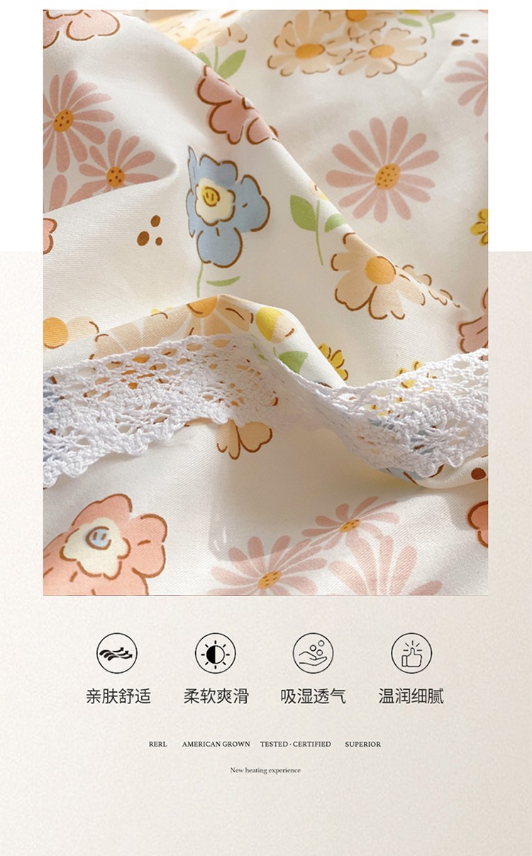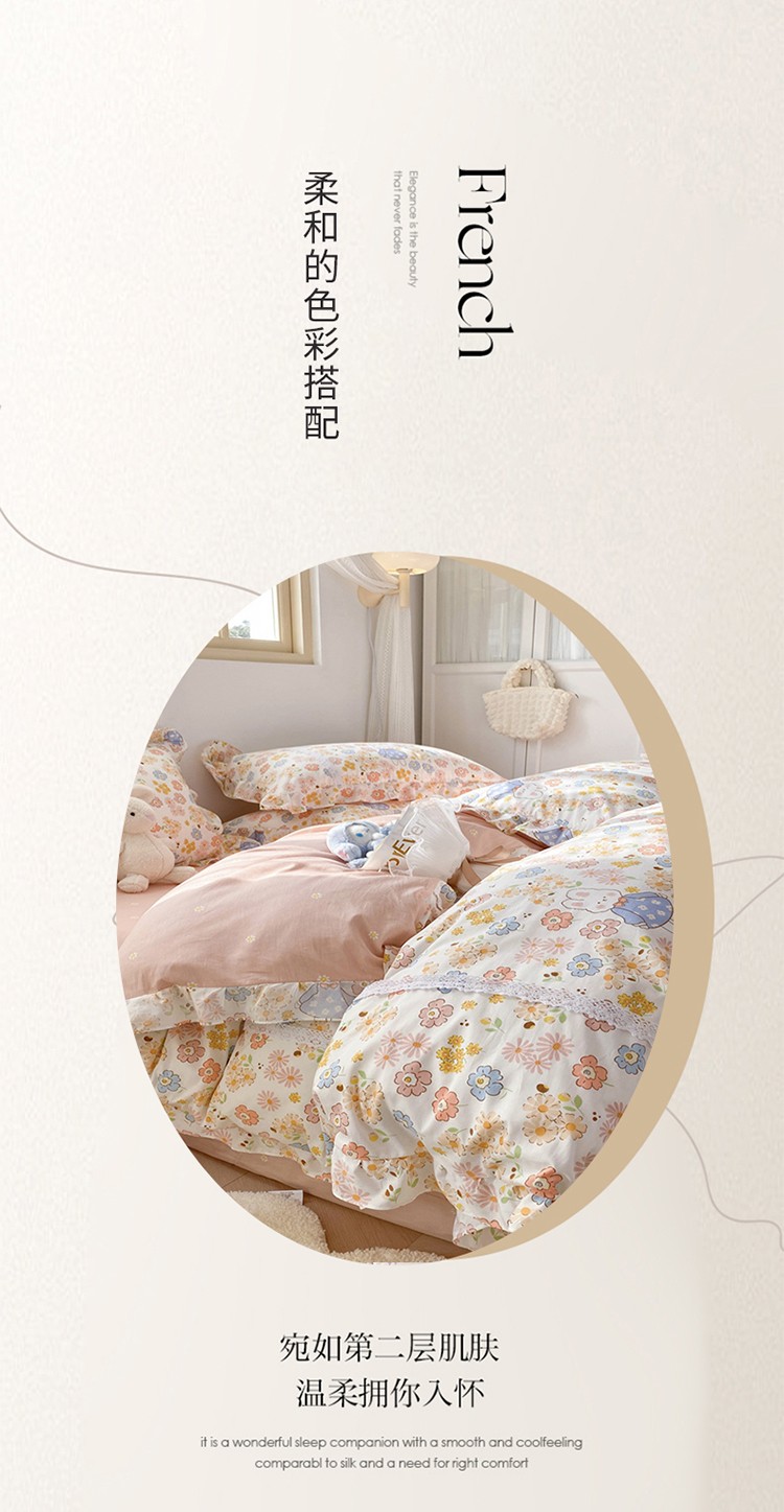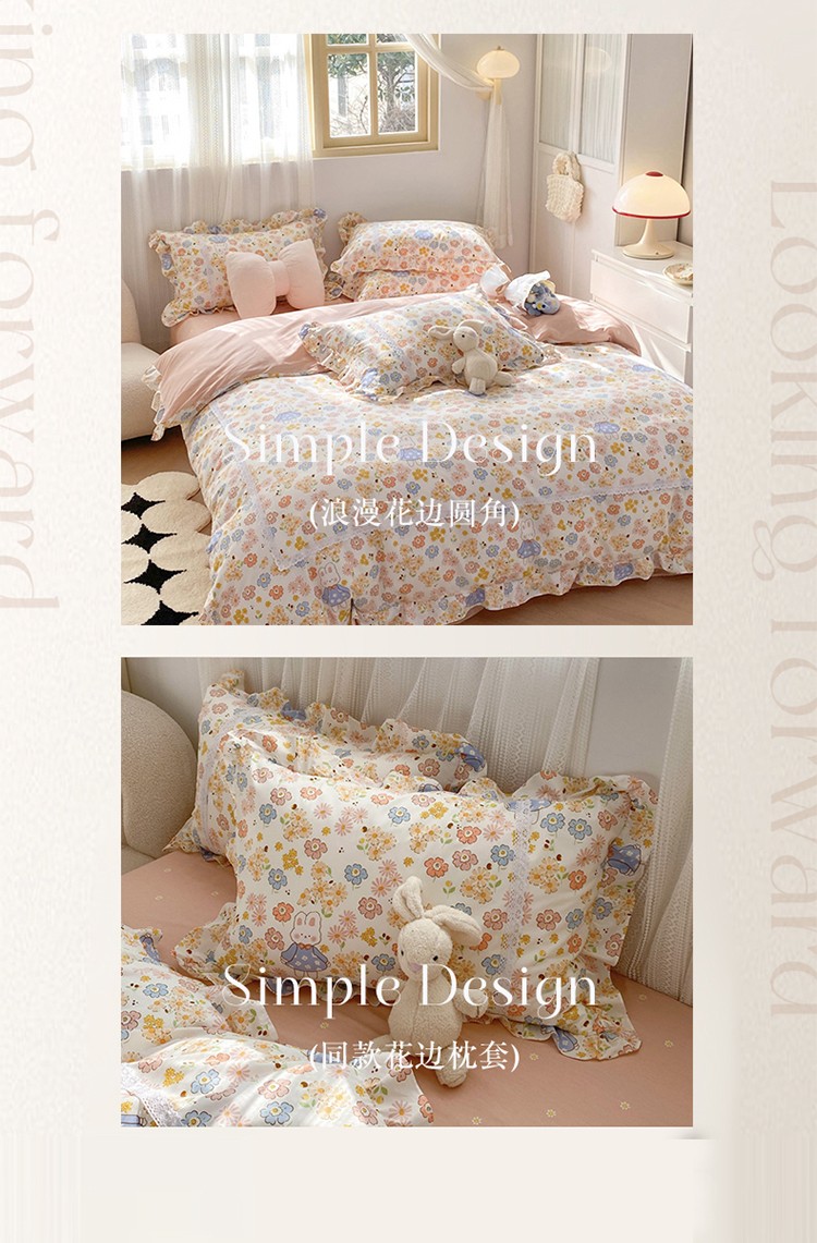 眠屿 2023春夏新款全棉蕾丝对角花边四件套 花仙兔