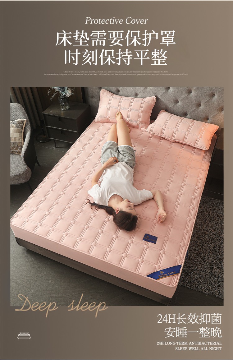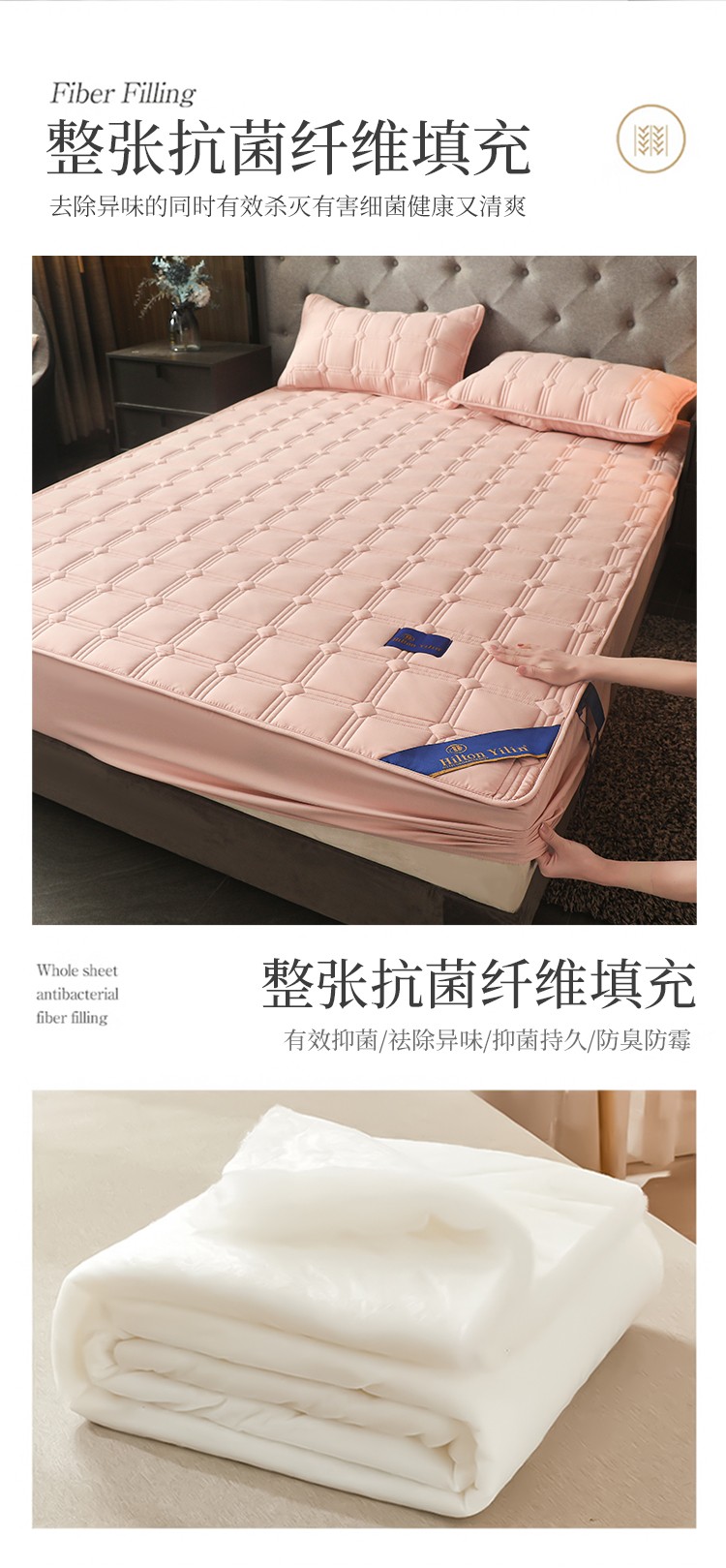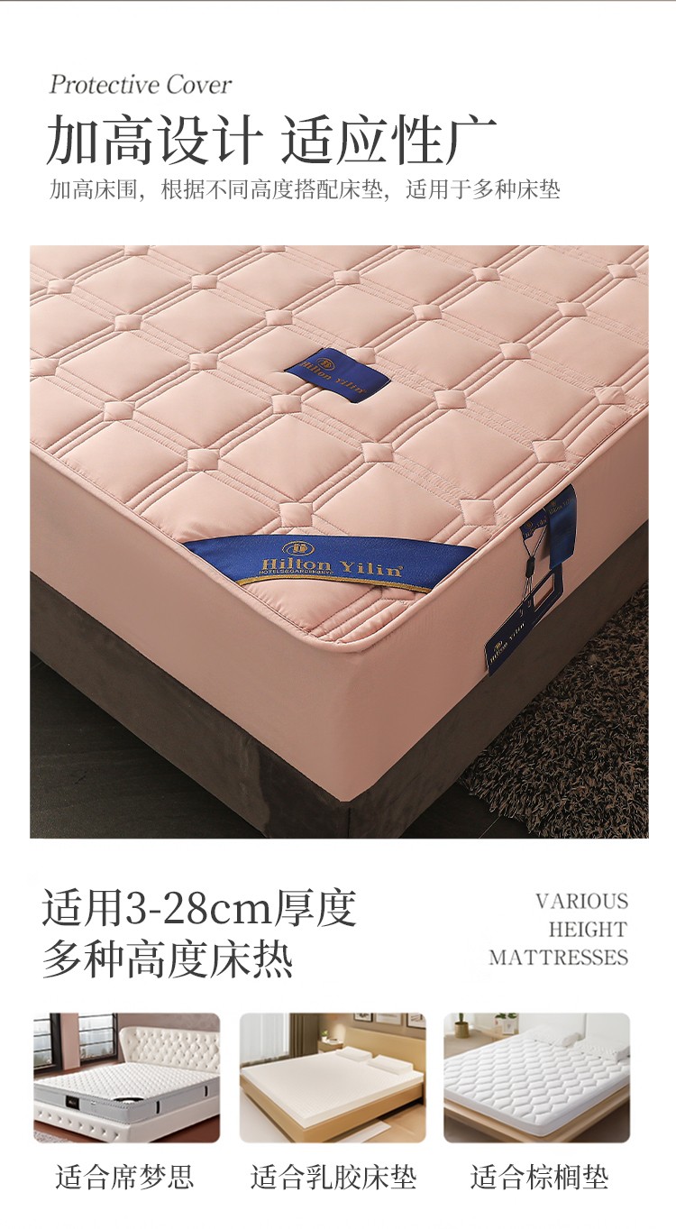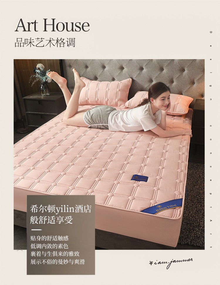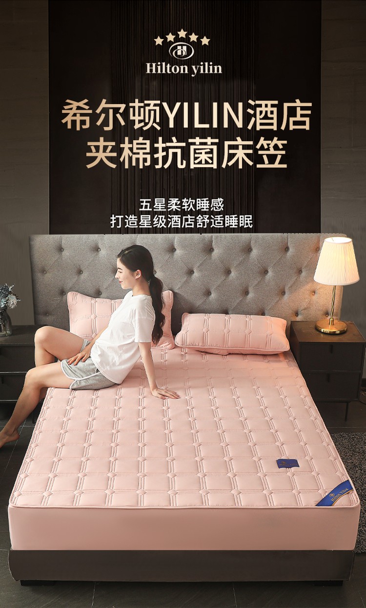 给笠 2024新款希尔顿原棉抗菌夹棉床笠-雅格 雅格-淡粉