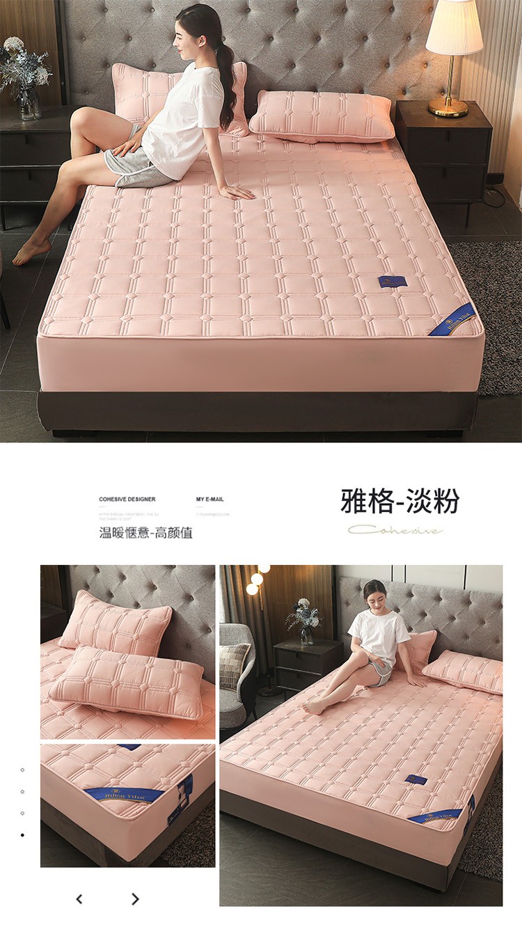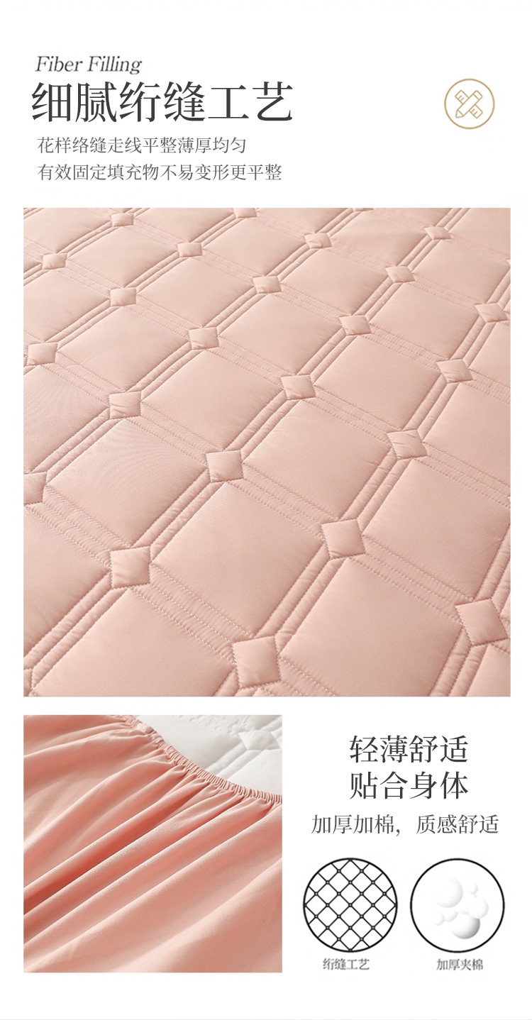 商品名称:给笠 2024新款希尔顿原棉抗菌夹棉床笠-雅格 雅格-淡粉