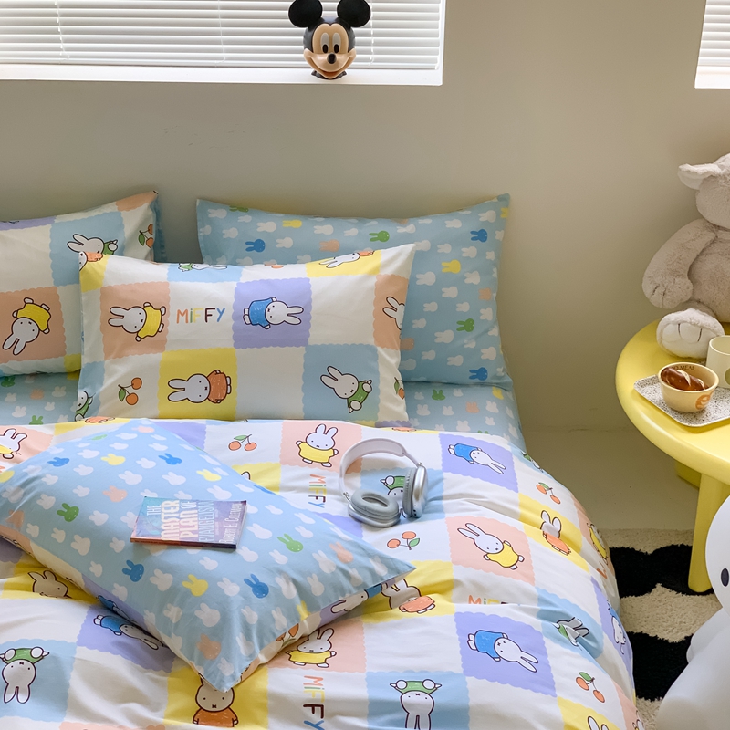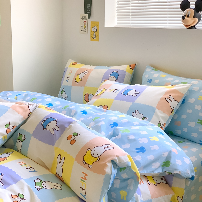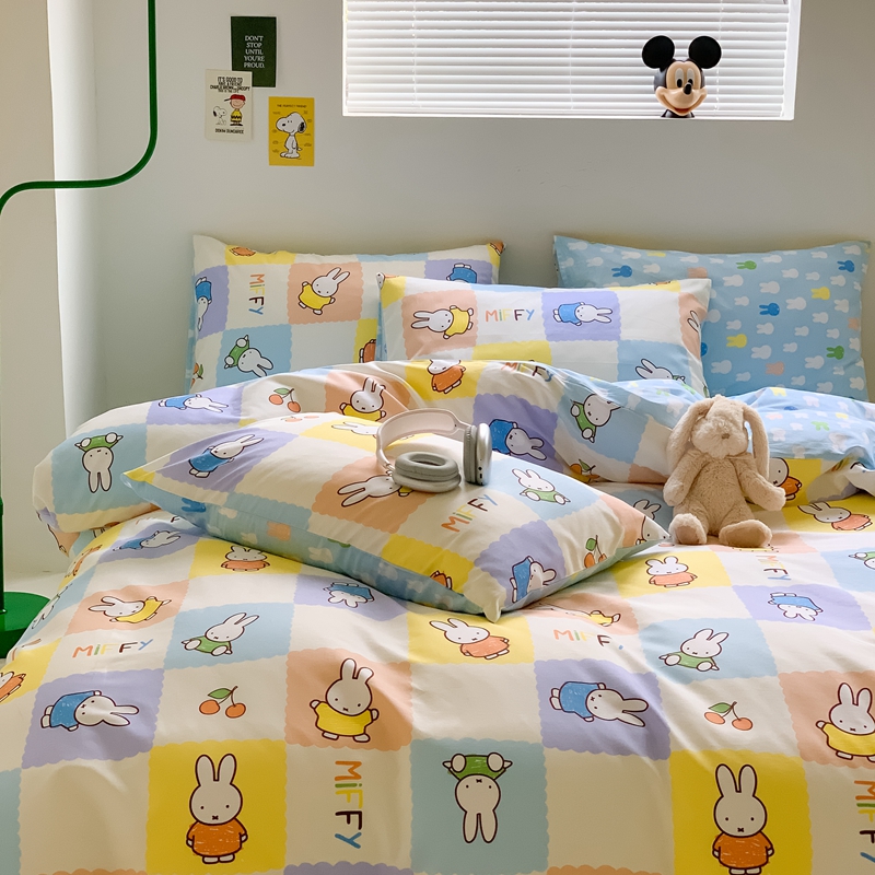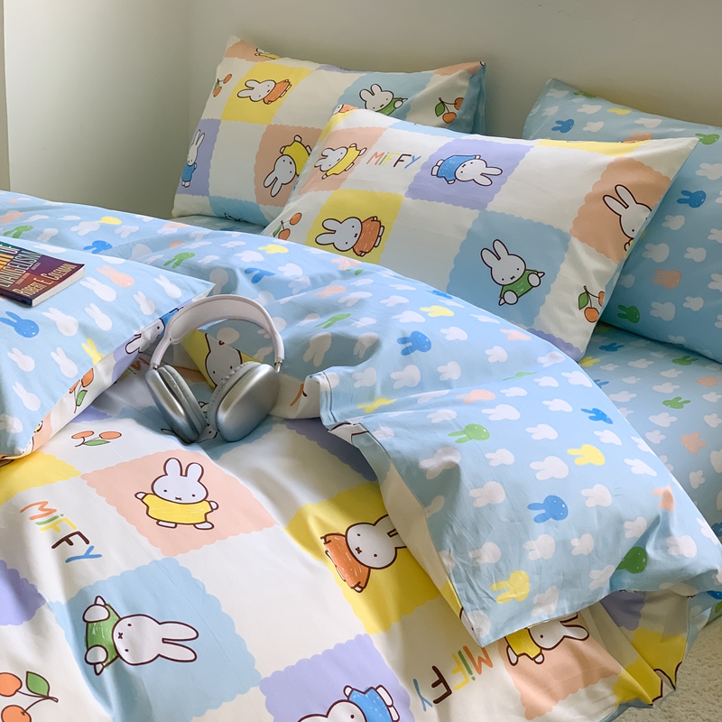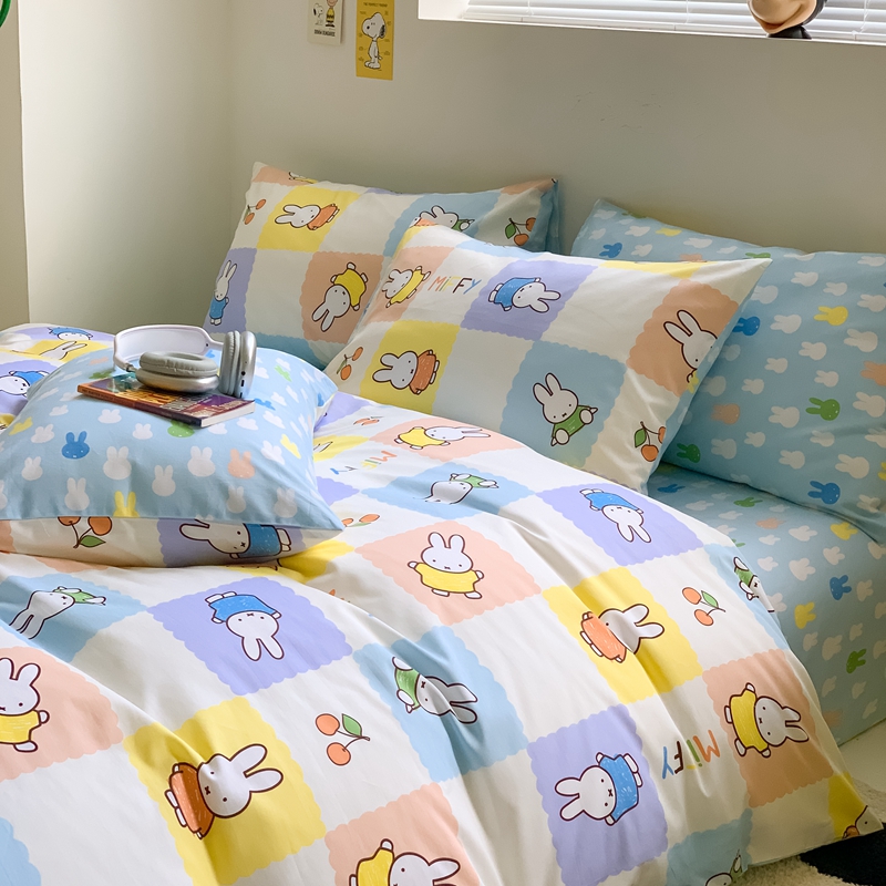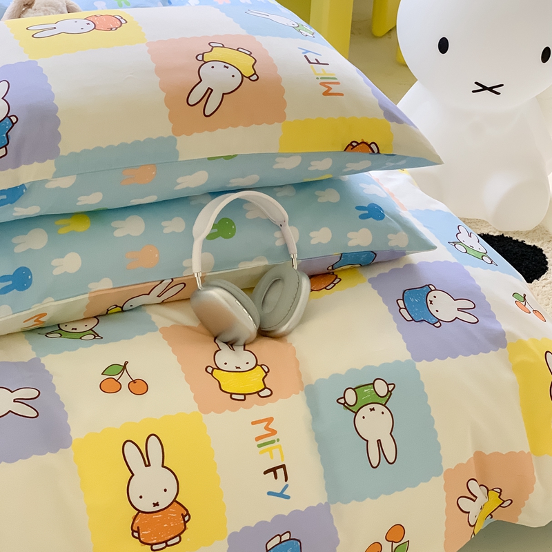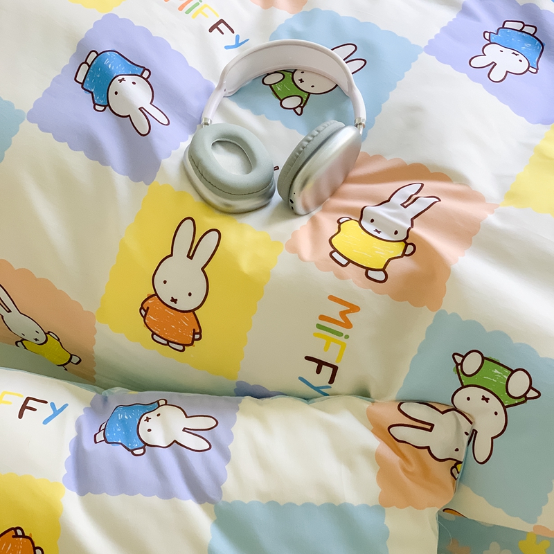 商品名称:顾里家居 2023新款40支13372全棉米菲兔正版授权四件套 方块米菲
