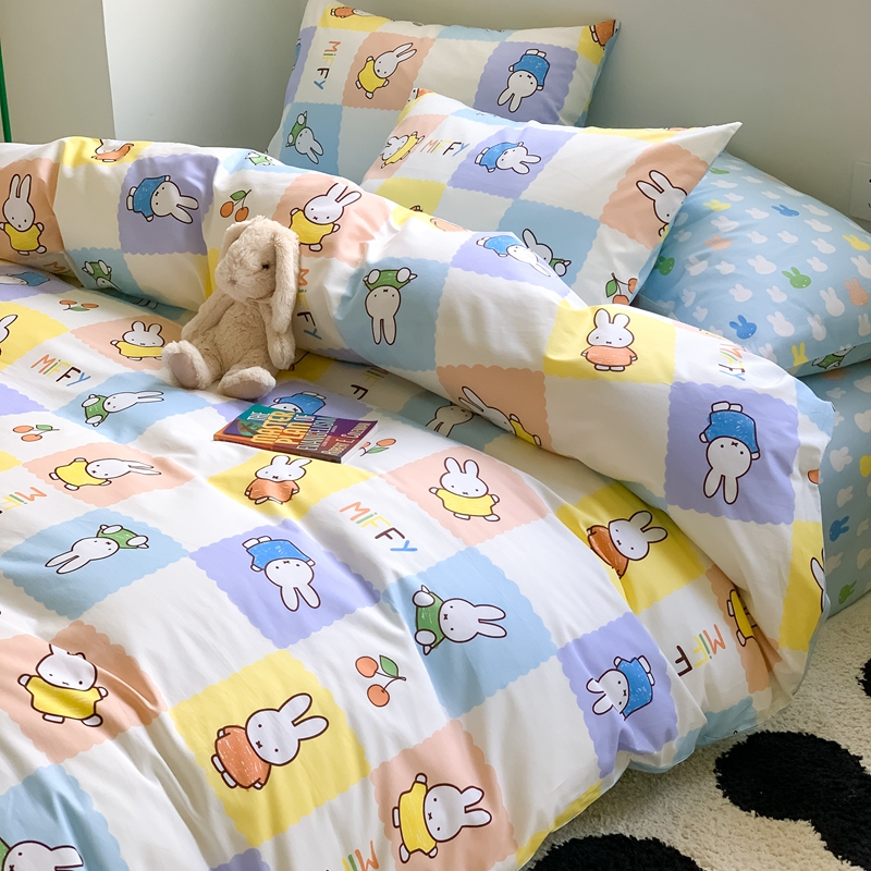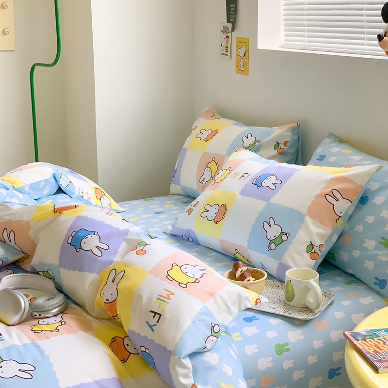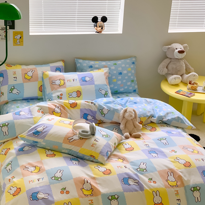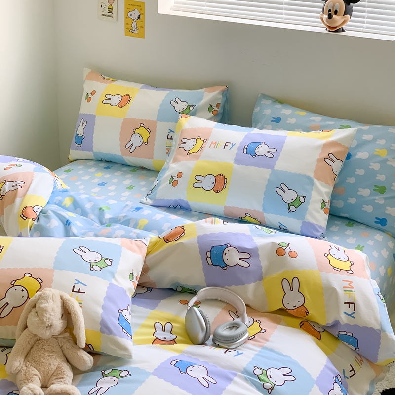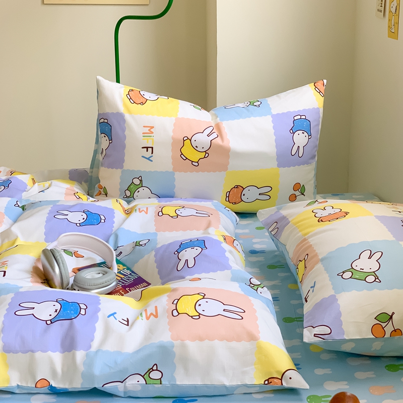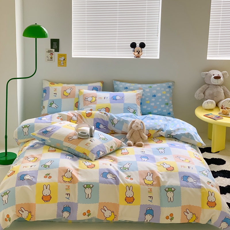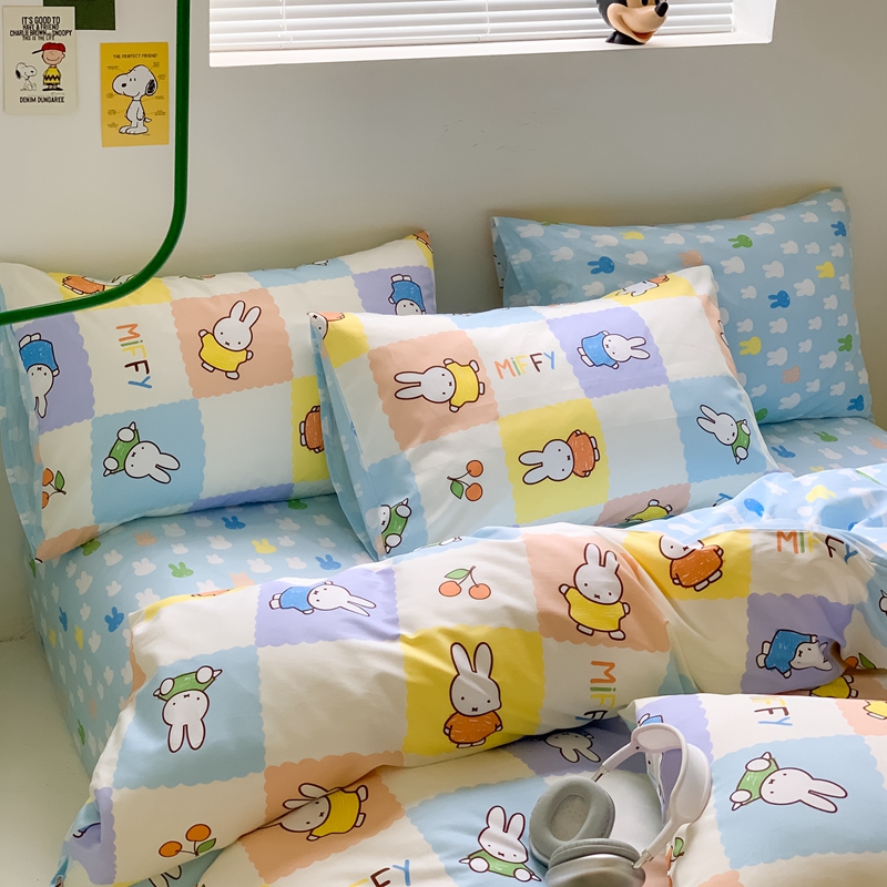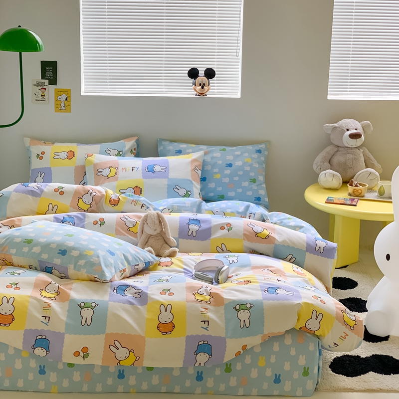 商品名称:顾里家居 2023新款40支13372全棉米菲兔正版授权四件套 方块米菲