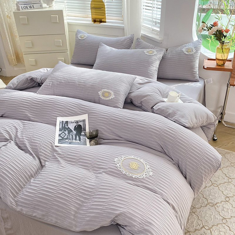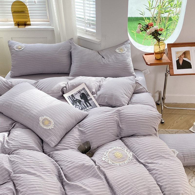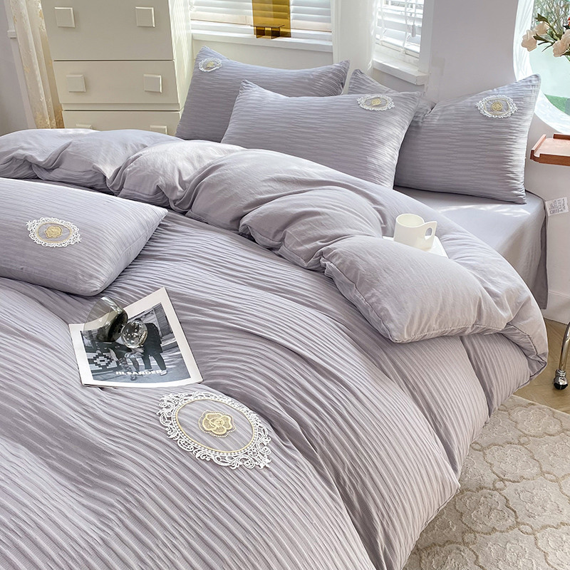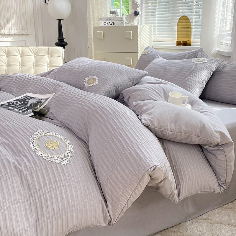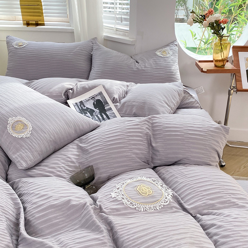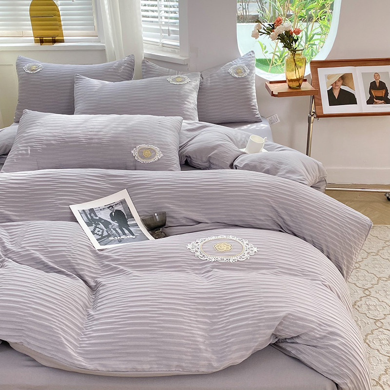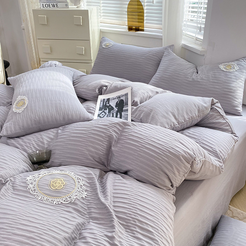 当前位置: 91家纺网 > 商品网购 > 床品套件 > 四件套 > 全棉普通四件套 > 韩约 2023新款 韩约泡泡纱仙叶系列四件套 仙叶简约款(绅士灰)