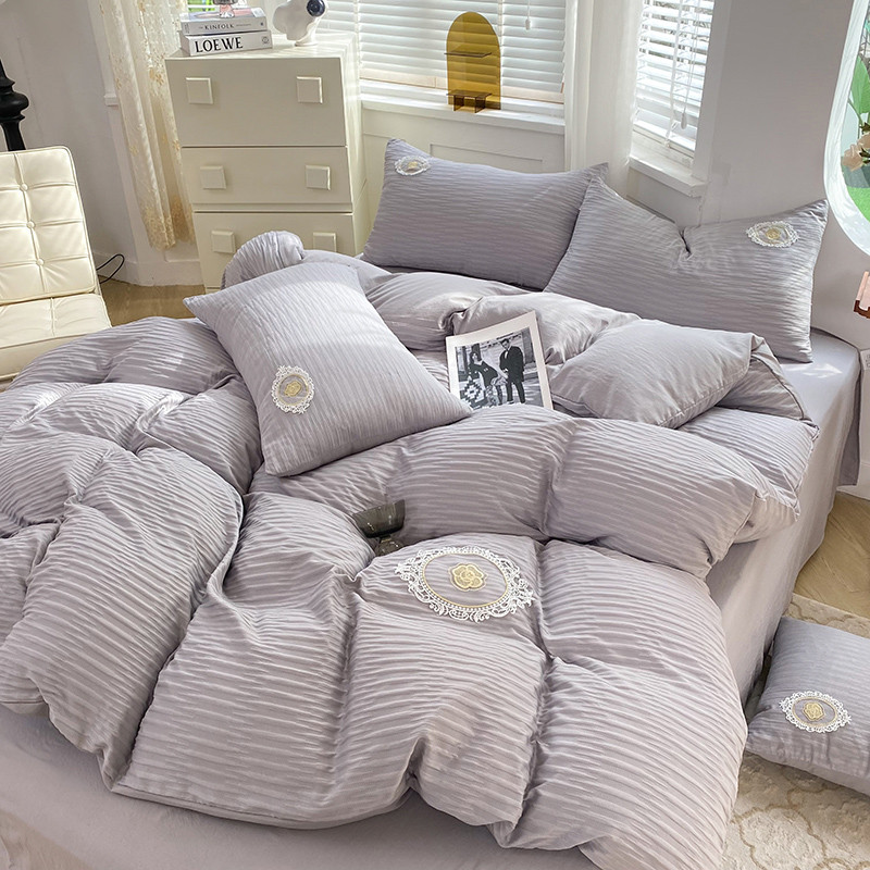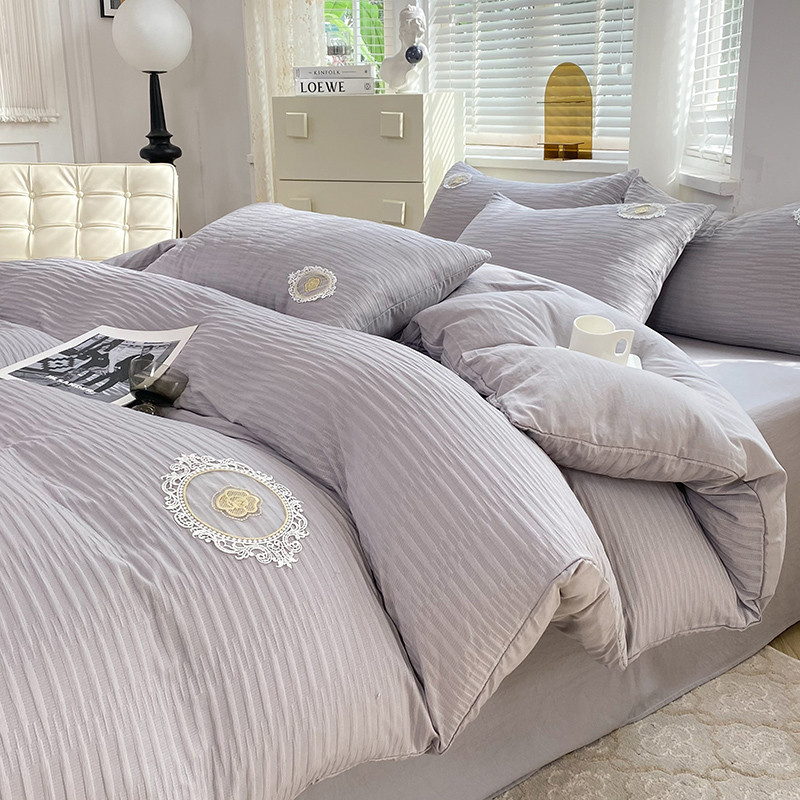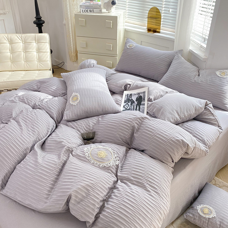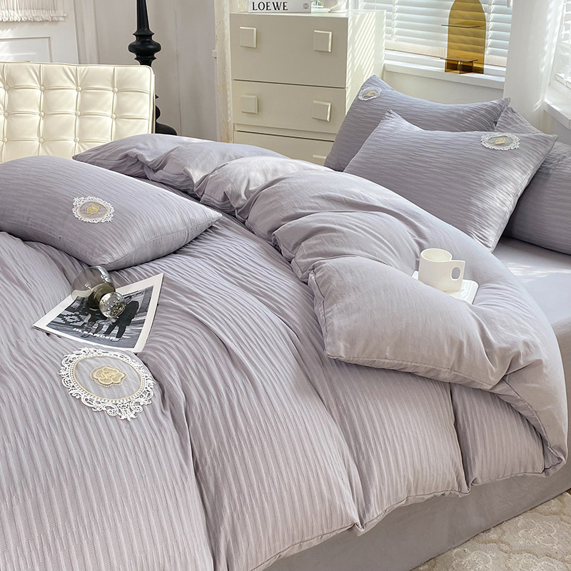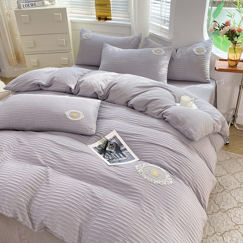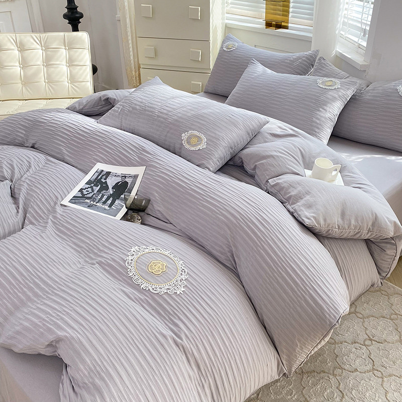 当前位置: 91家纺网 > 商品网购 > 床品套件 > 四件套 > 全棉普通四件套 > 韩约 2023新款 韩约泡泡纱仙叶系列四件套 仙叶简约款(绅士灰)