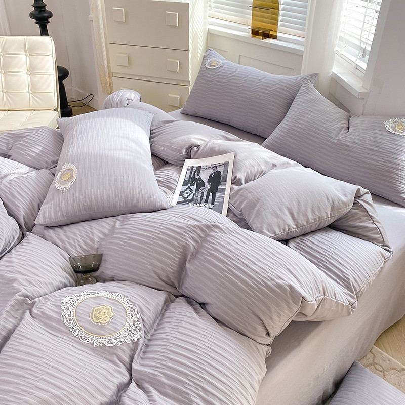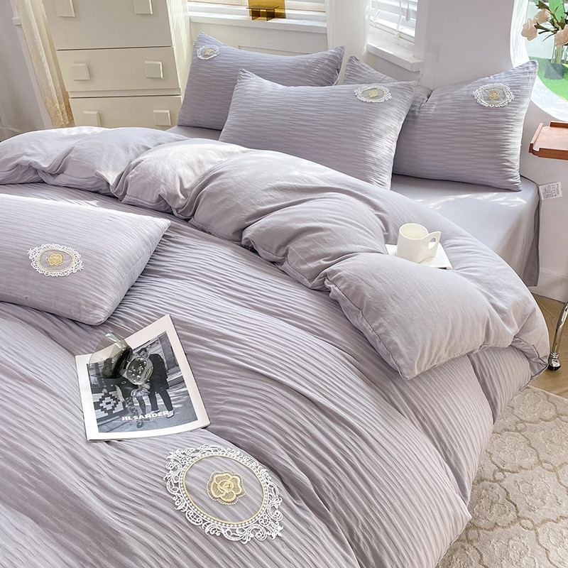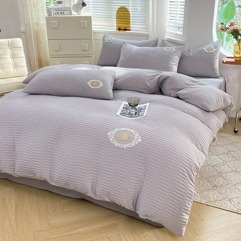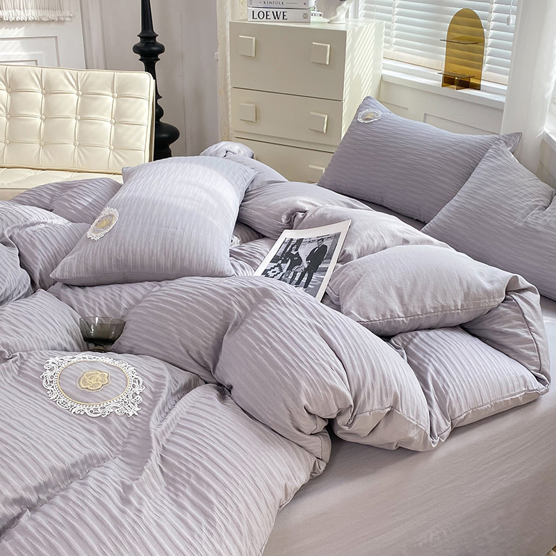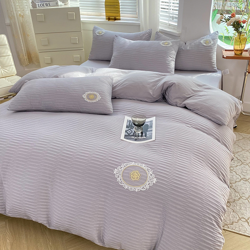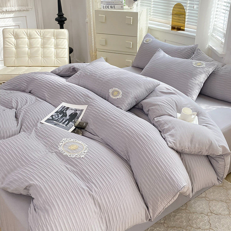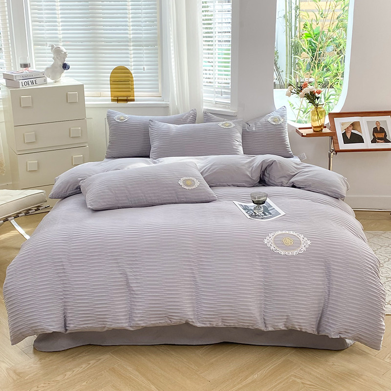 当前位置: 91家纺网 > 商品网购 > 床品套件 > 四件套 > 全棉普通四件套 > 韩约 2023新款 韩约泡泡纱仙叶系列四件套 仙叶简约款(绅士灰)