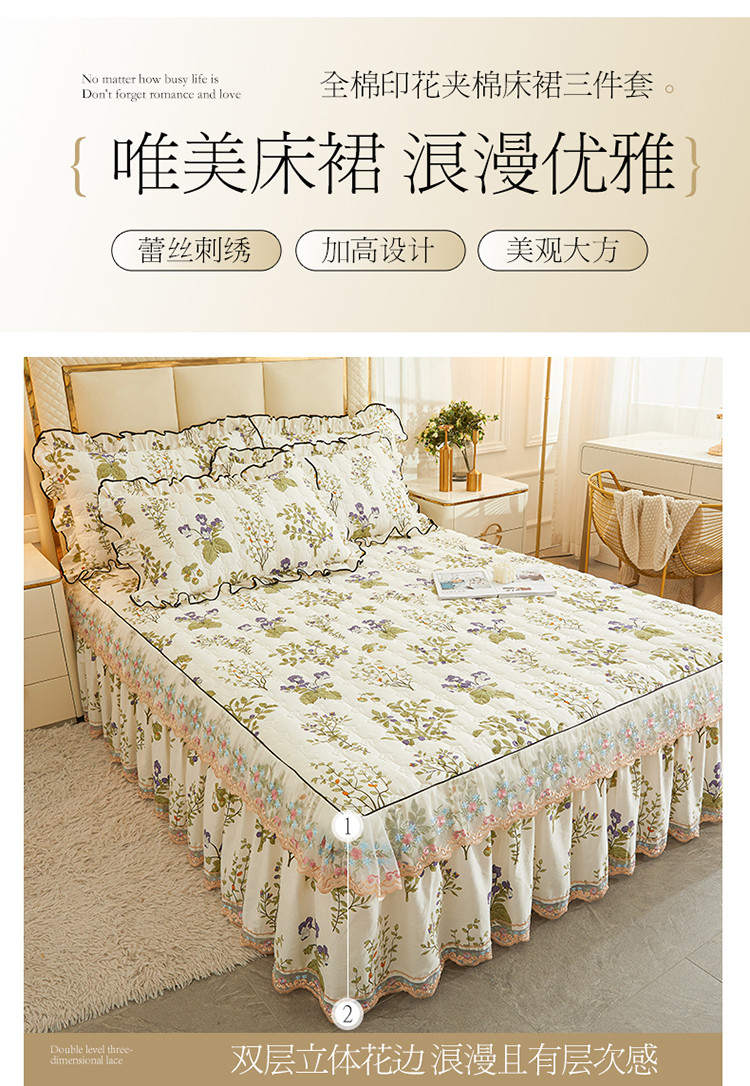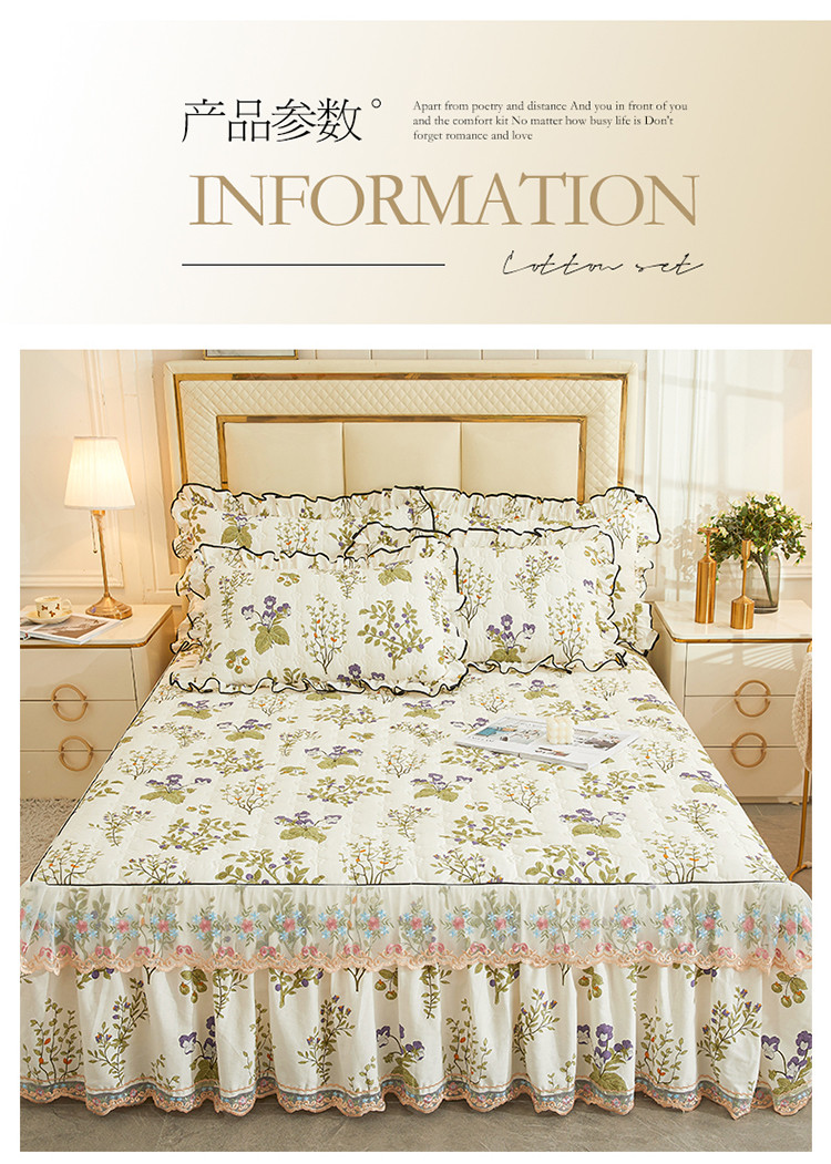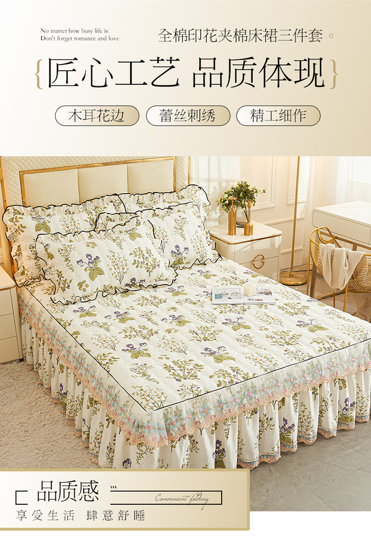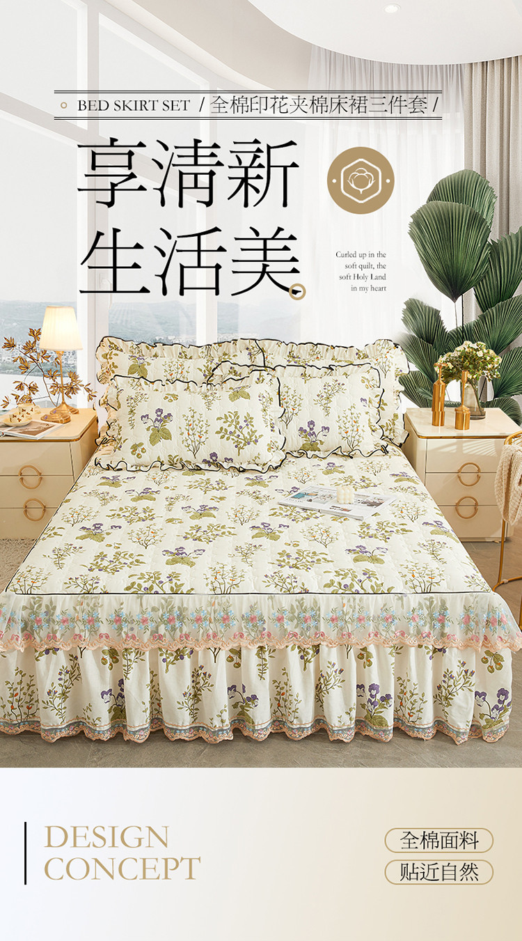 (总)宜凡家纺 2025新款全棉数码印花床裙三件套系列一,静若幽兰,浮云织梦,梦幻花园,陌上花开