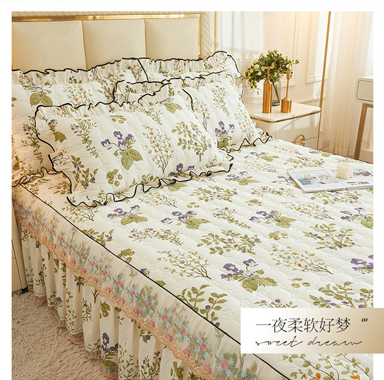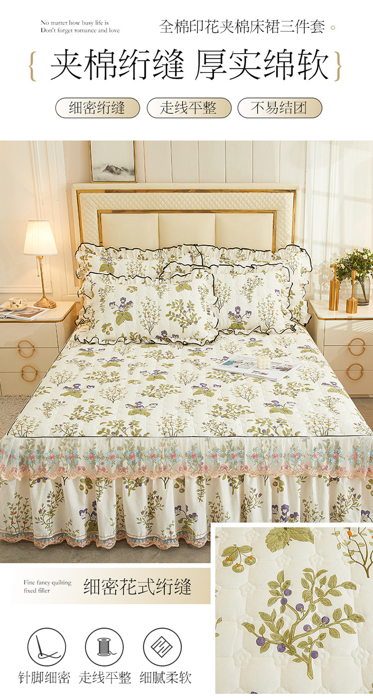 宜凡 2023新款四季款全棉夹棉床裙三件套 丰收果实