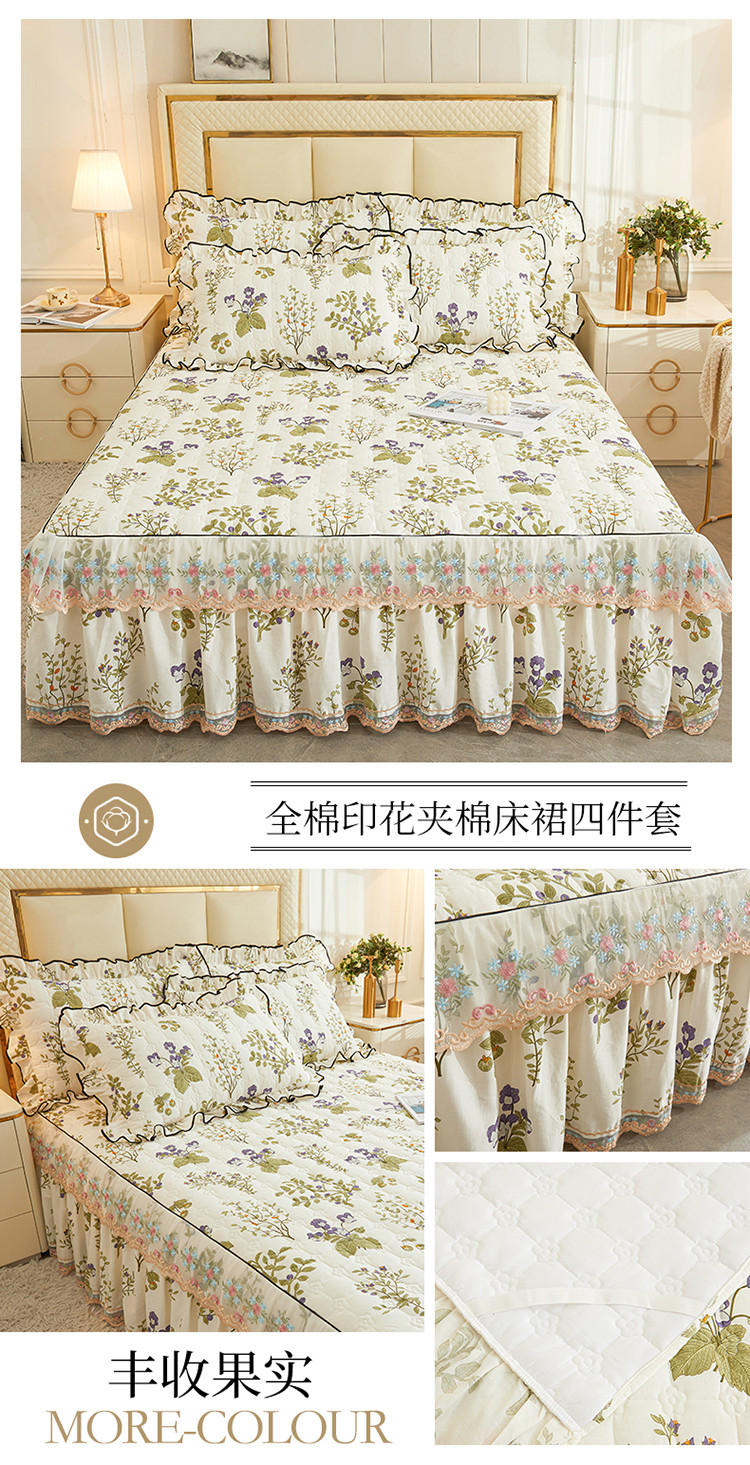 商品名称:宜凡 2023新款四季款全棉夹棉床裙三件套 丰收果实