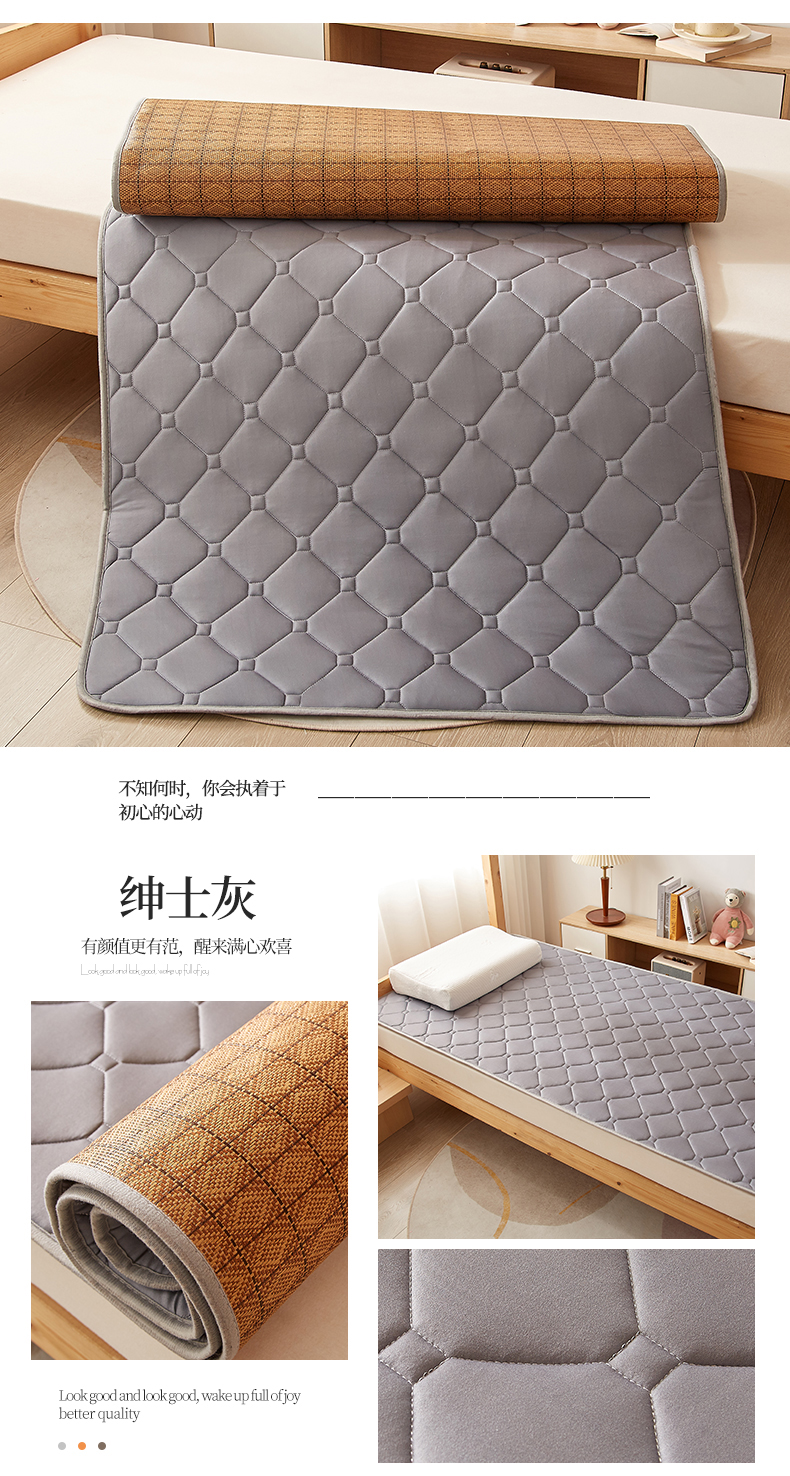 商品名称:花言狐语 2025新款AB双面可用藤席夹棉床褥地垫单人款 绅士灰